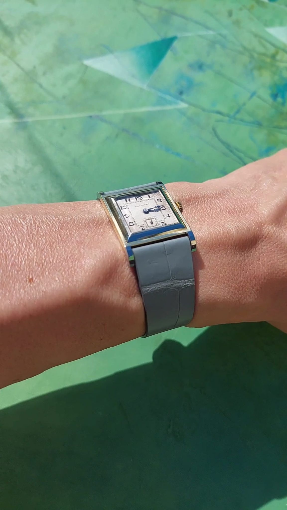 Yes, indeed it is 100y old, made in 1925: ultra-thin, matching numbers of case & movement, faceted lugs on a 18K solid gold case (whitegold with yellowgold accents), flawless crystal and beautiful aged dial with a railroad minute-track and Breguet-numerals under blued hands.