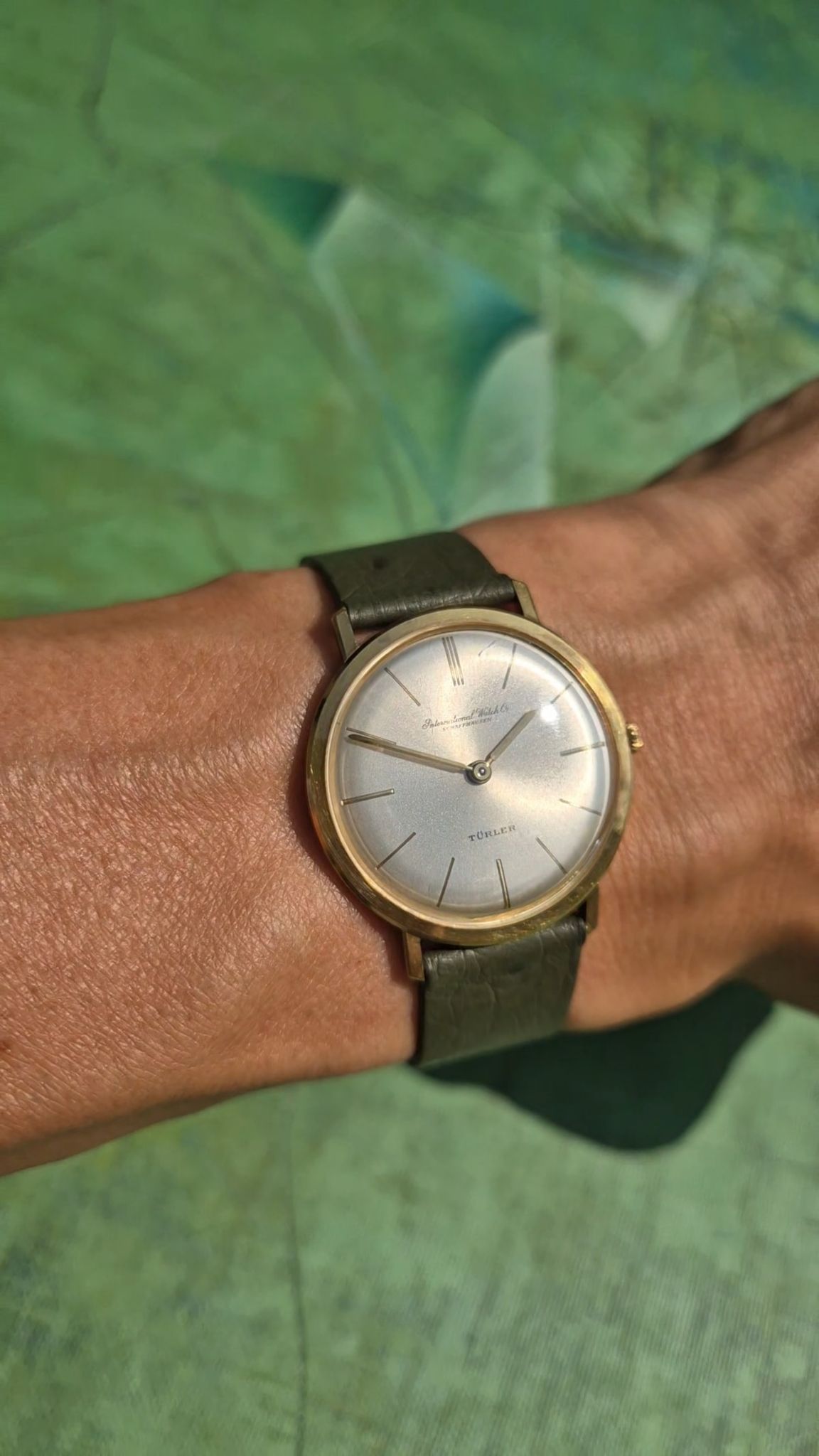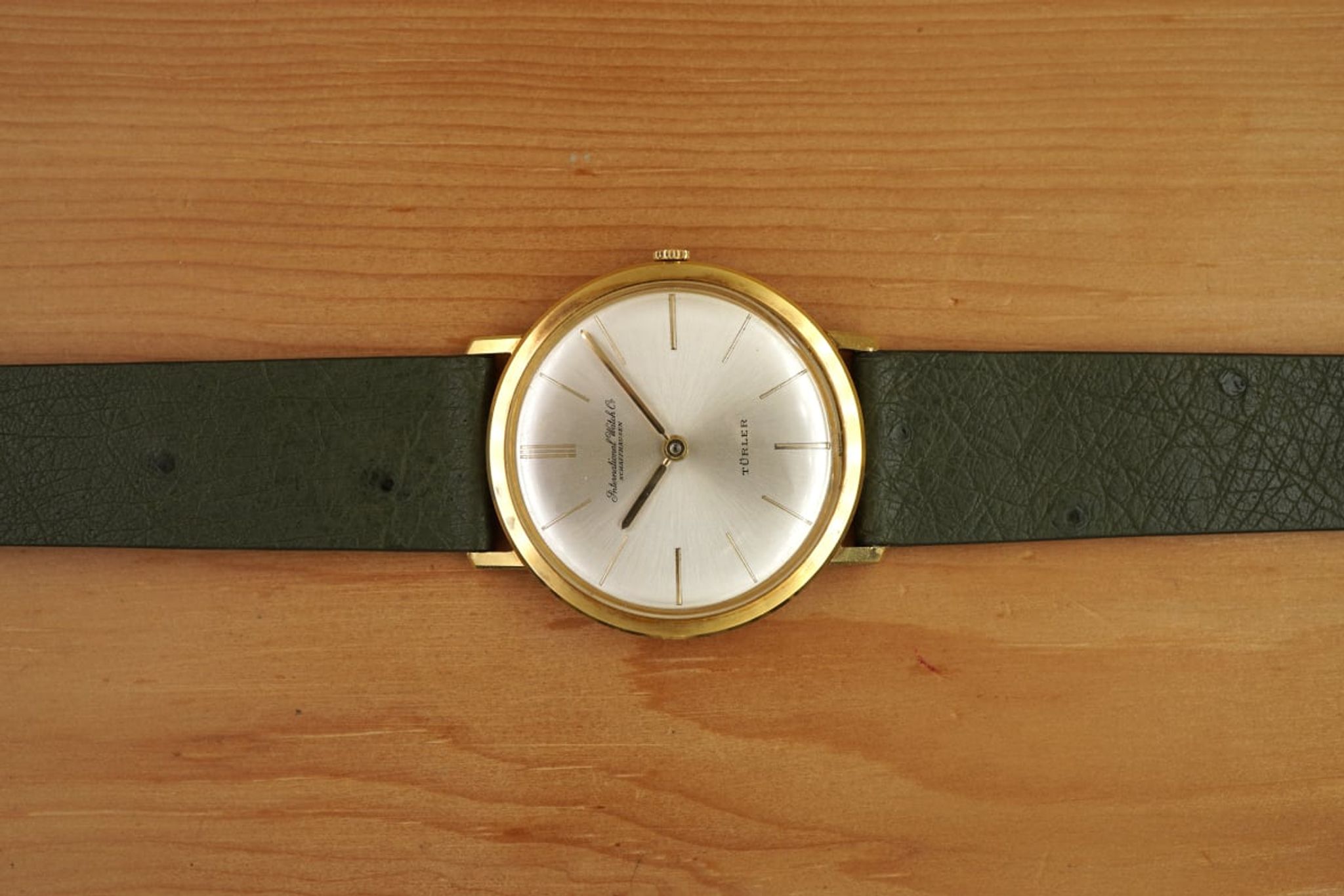 Sold by the Zurich-based jeweler Turler, as indicated by the doublesignature on the dial, which is special in any way: champagne sunburst with engraved indexes guarantee a maximum response to incoming (sun-) light.
