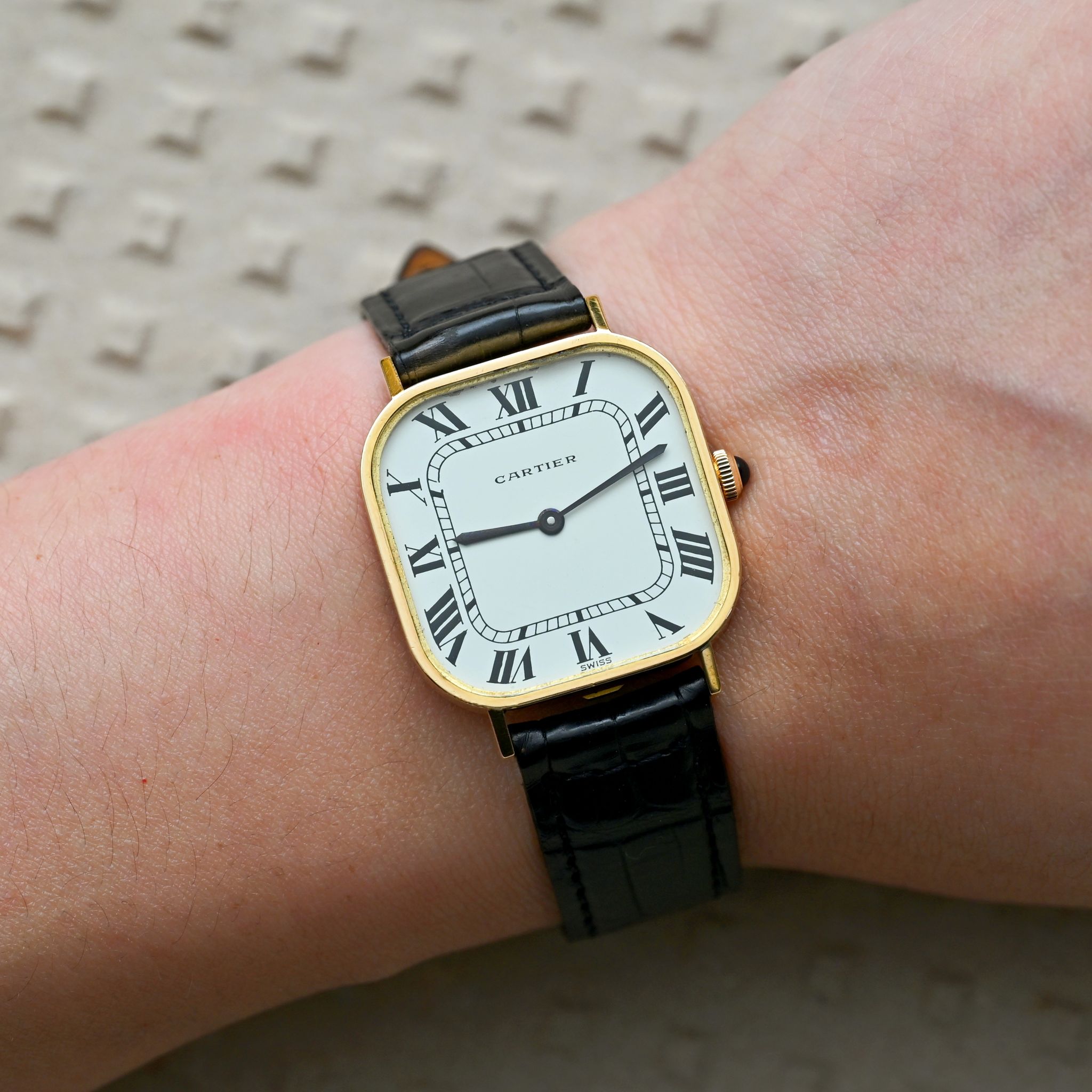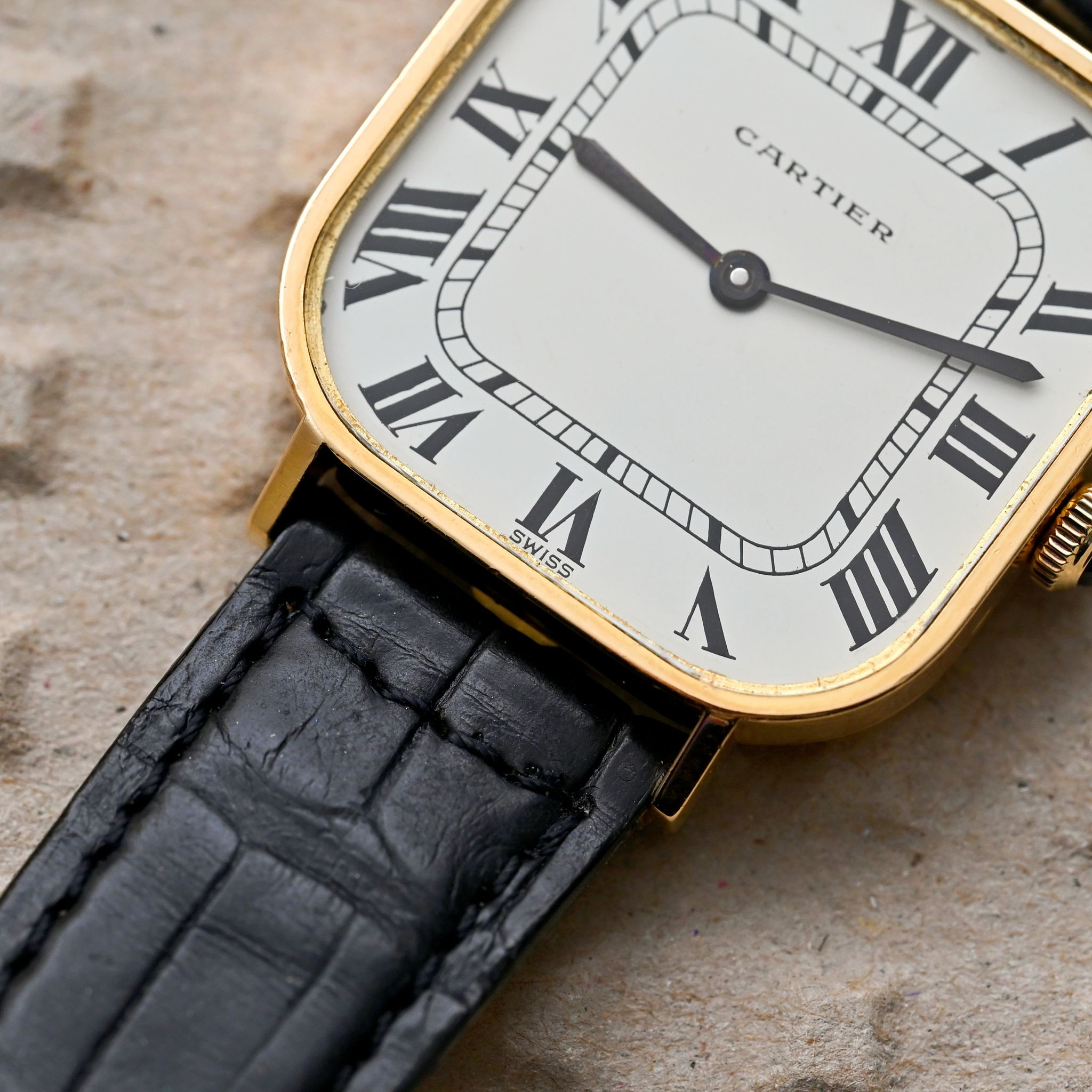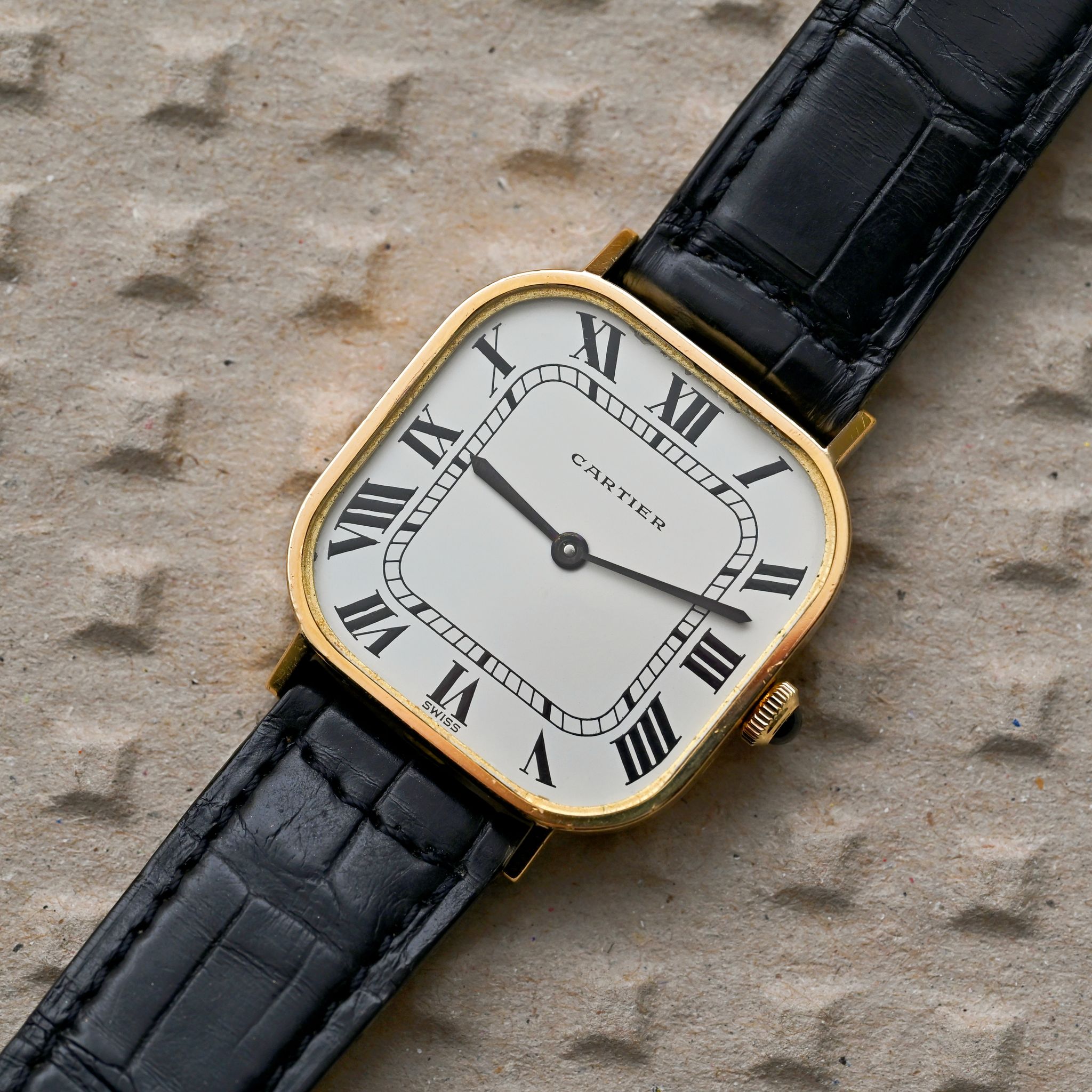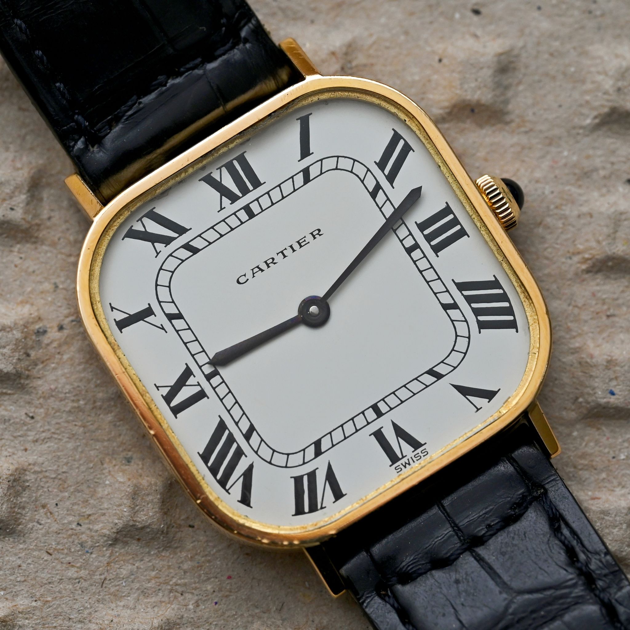 Cartier - Rare Vintage Cartier 18K Yellow SHARE Gold Jumbo Cushion Case Swiss Dial Manual Wind