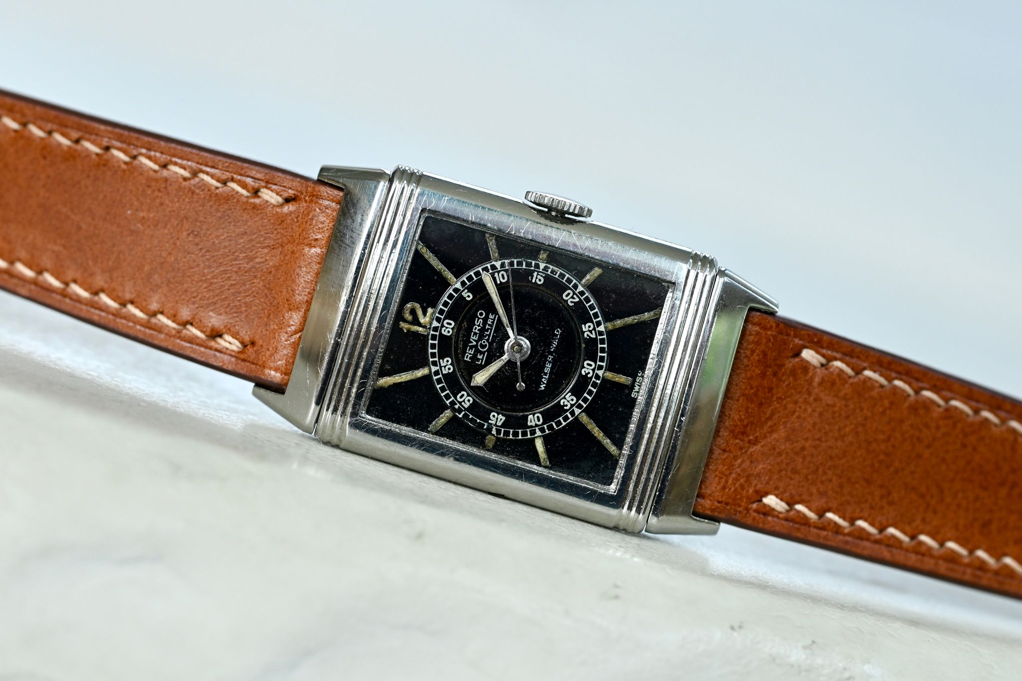 A rare all original LeCoultre Reverso dating to the 1930s retailed by Walser Wald of Buenos Aires. Featuring a stainless steel case with all matching serial numbers, manually wound JLC movement and untouched double signed luminous dial. These watches are hard to come by in all original, all matching condition especially with retailer signatures.