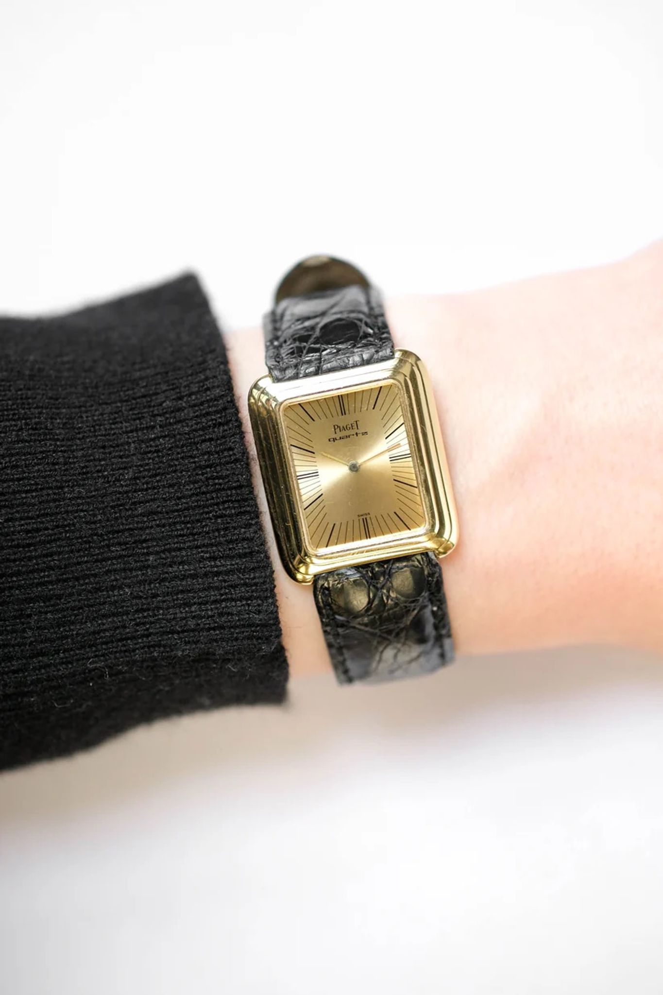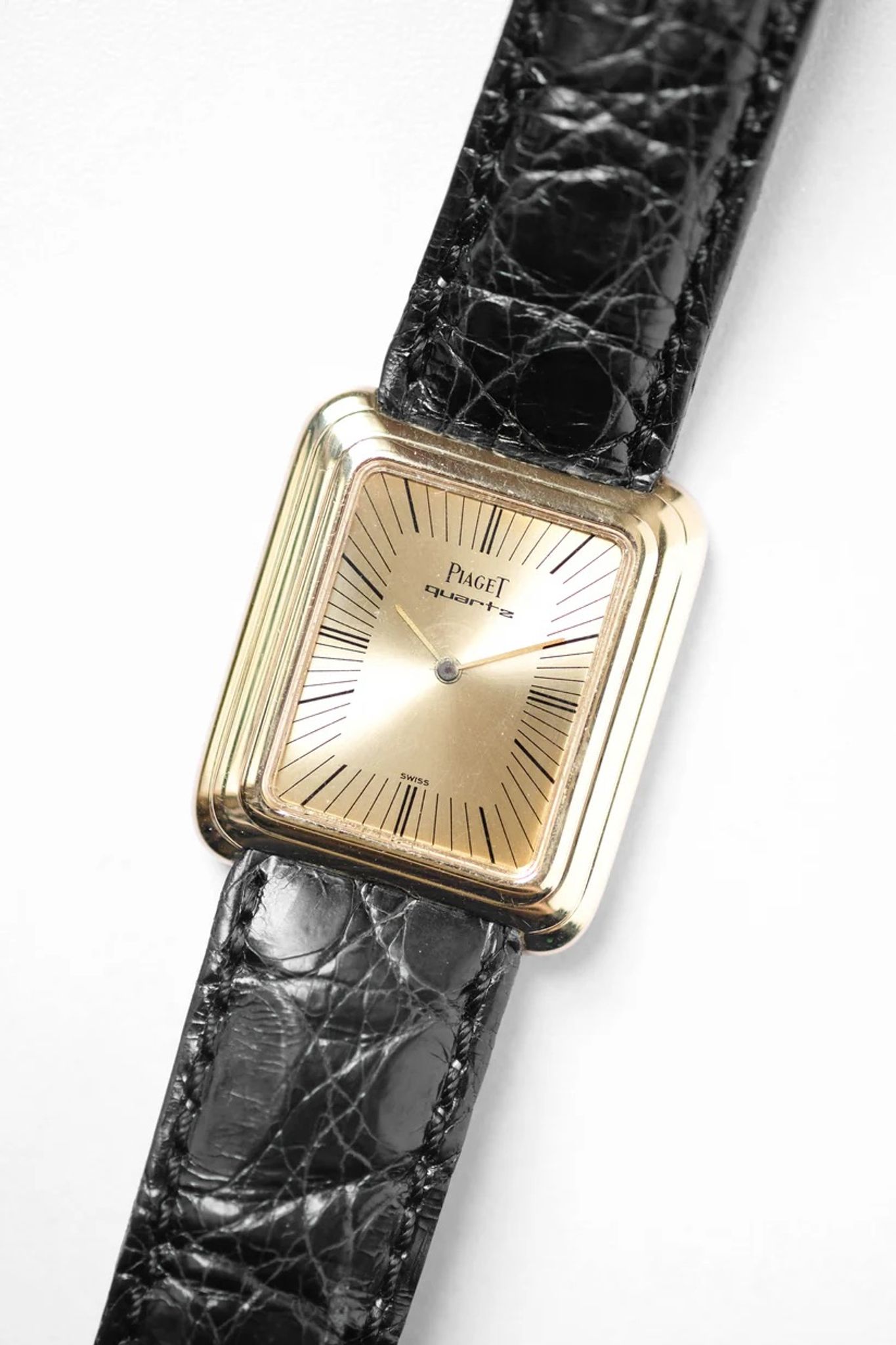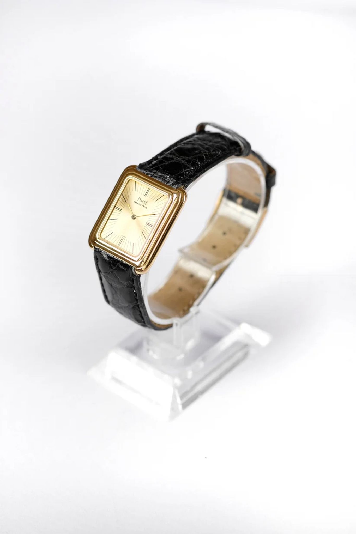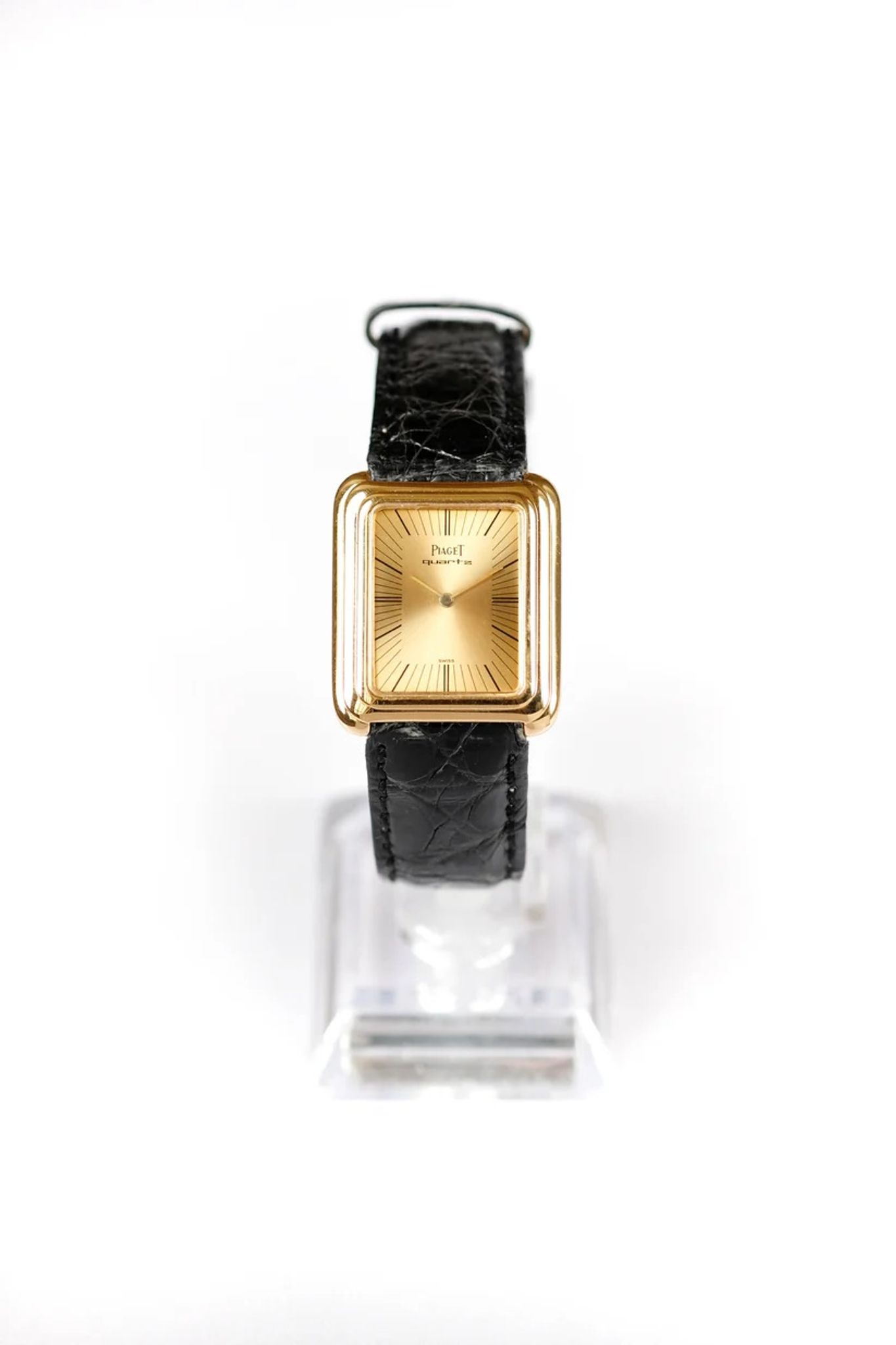 A gold case with triple gadroons, enhanced by an also gold dial whose hours are indicated by stick indexes. Nothing disturbs the harmony of the case, not even the winder, hidden on the back. A model which could appear precious, in particular by the golden reflections offered by the dial but which, once on the wrist, appears quite sporty. Perhaps by its dimensions and its fairly flat case which sits on the wrist. Despite everything, and this is why we love Piaget, this watch retains its elegance.