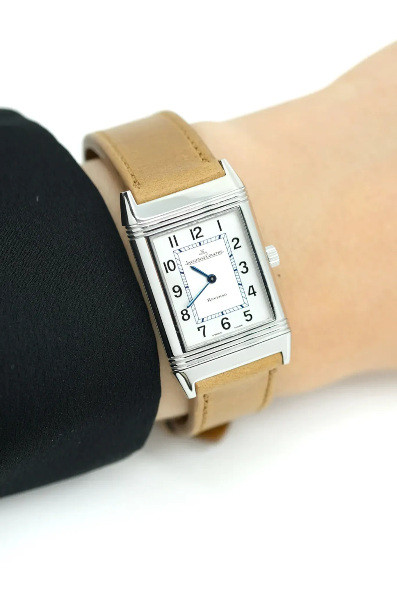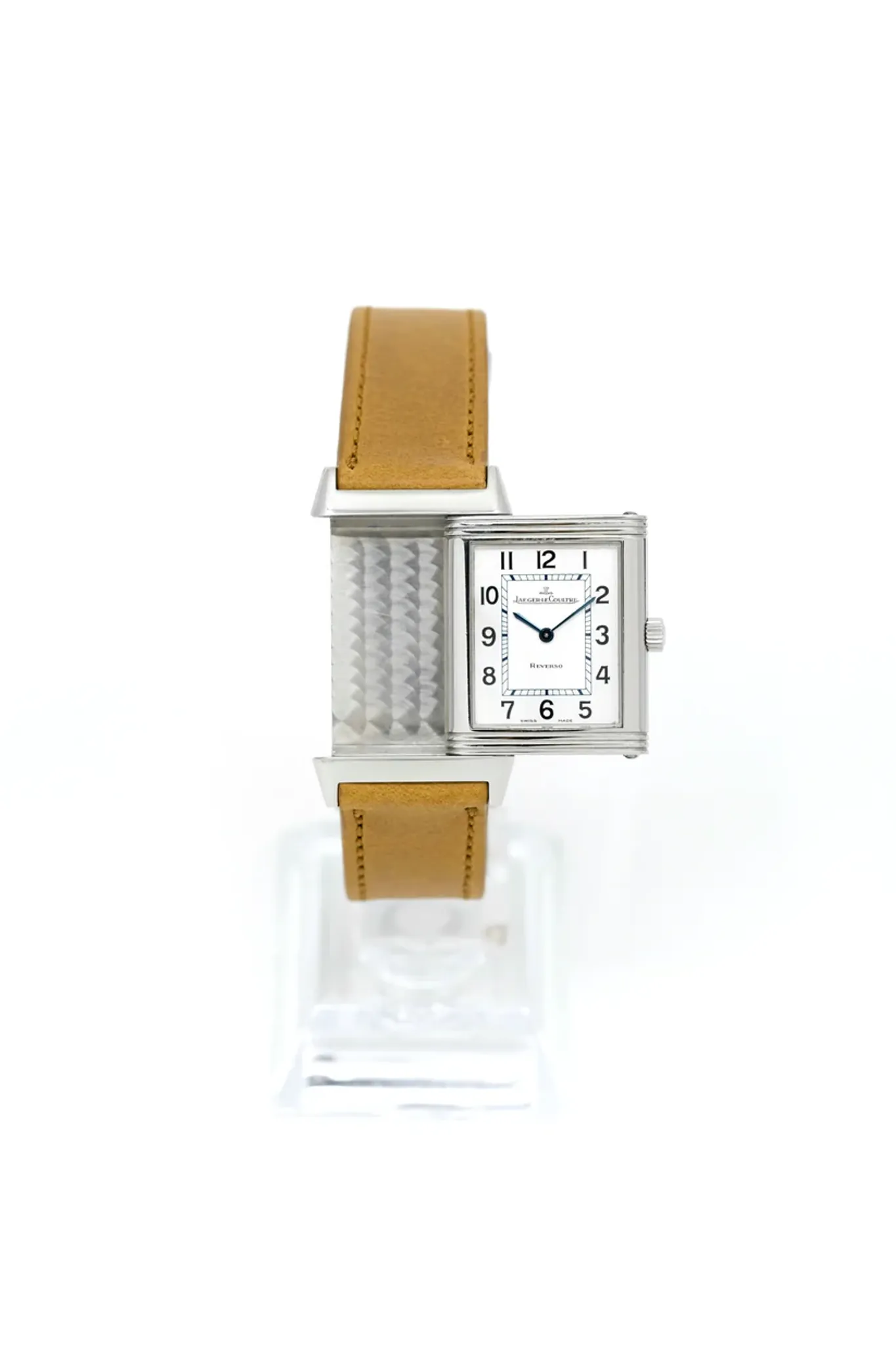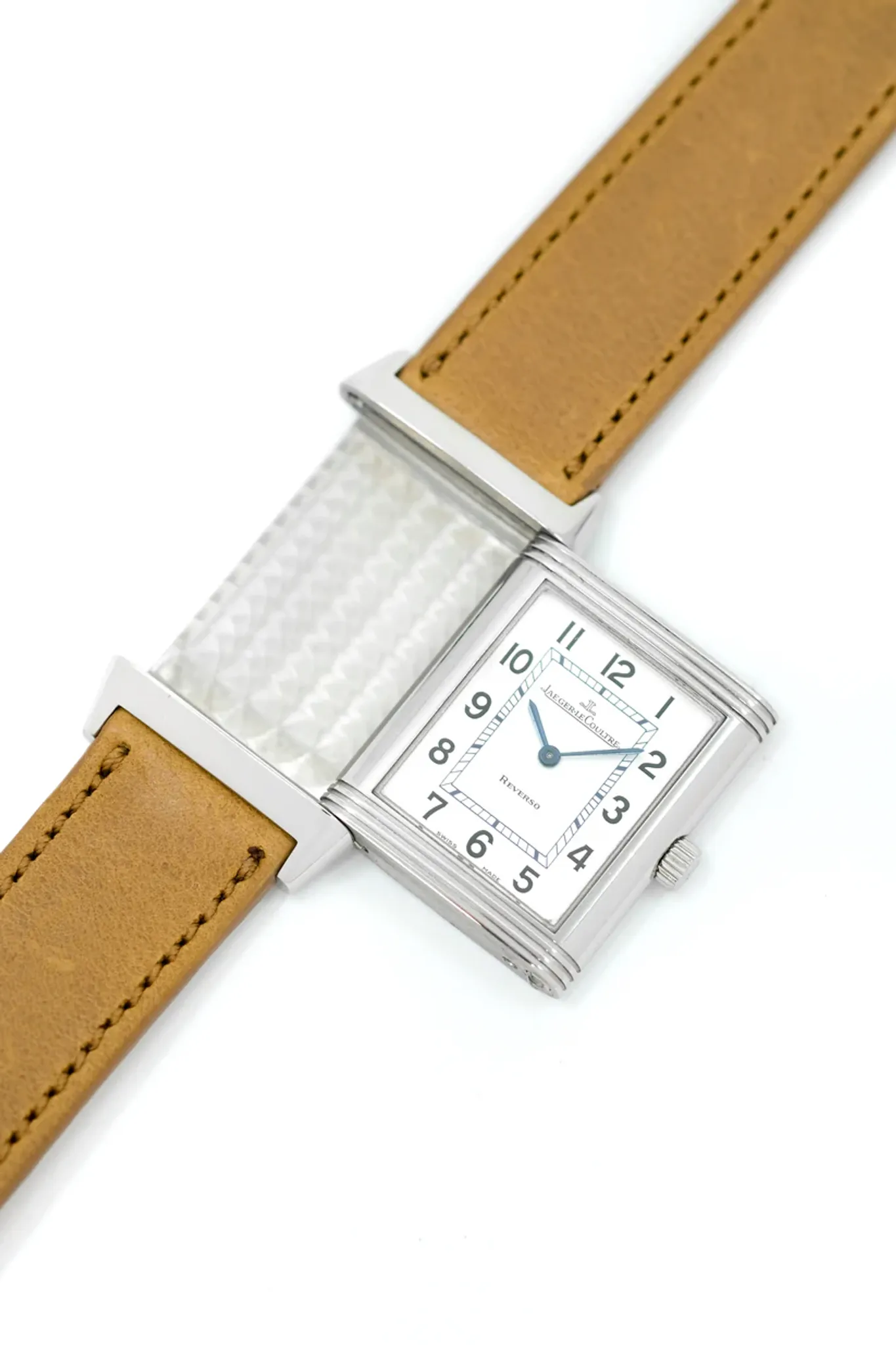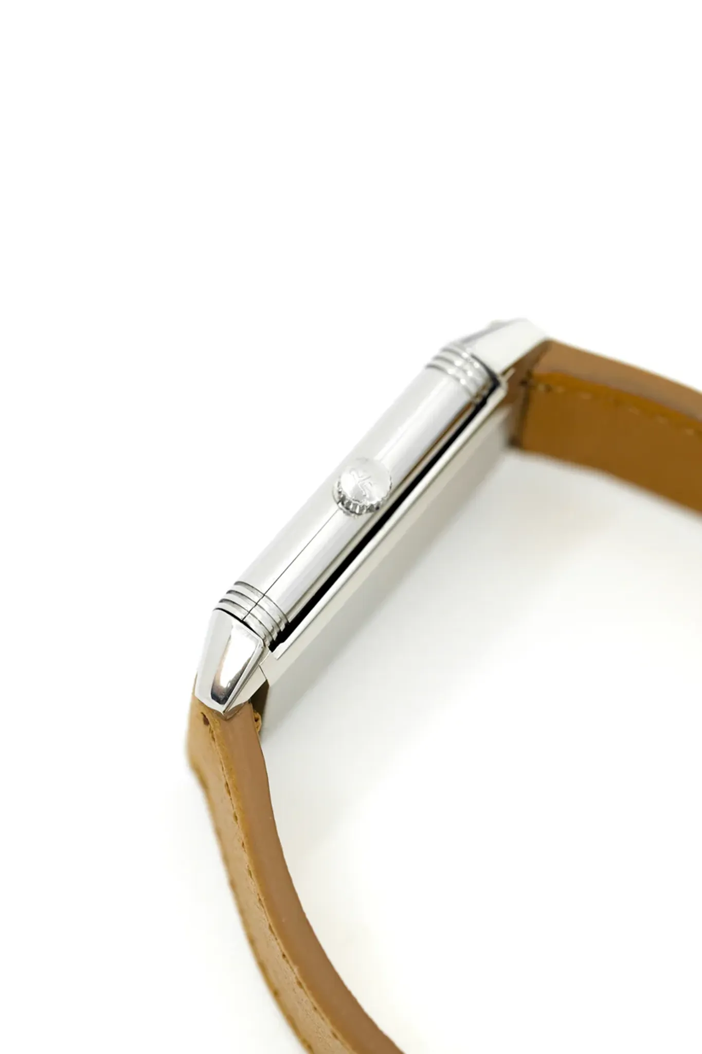 This is the traditional version of the Jaeger-LeCoultre Reverso, a very elegant urban model with its elongated dial, extremely comfortable on the wrist, especially due to its shape but also thanks to its signed steel folding clasp. All steel, this Reverso goes with everything. This is perhaps the most discreet and unisex version. With a slightly pearly white dial, it will go with any strap color.