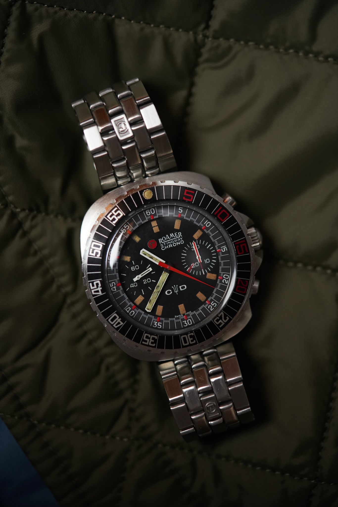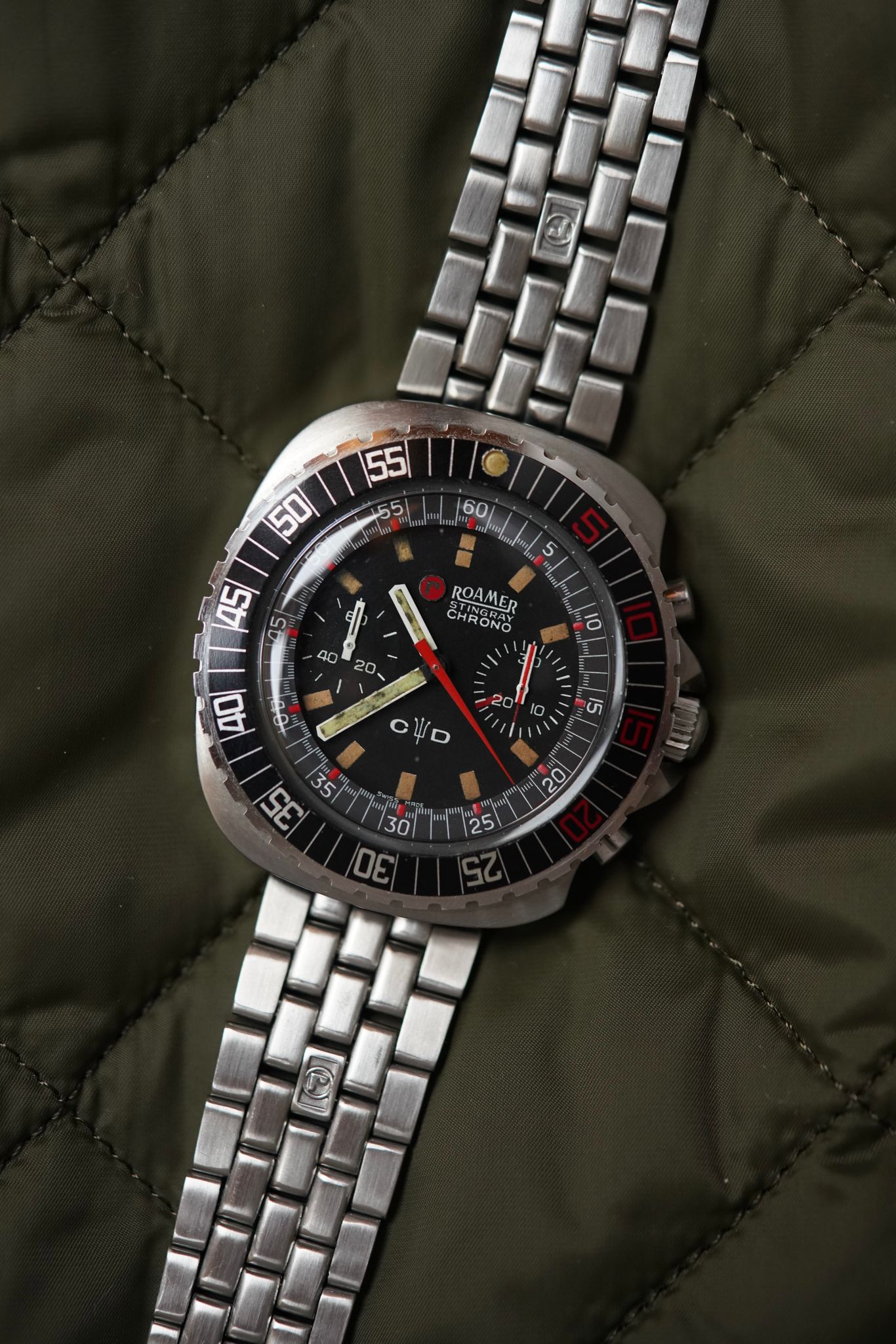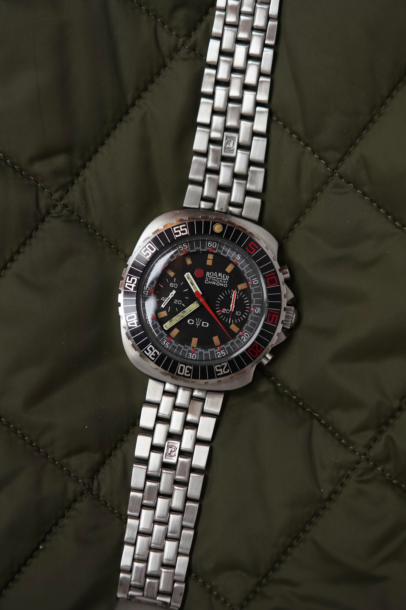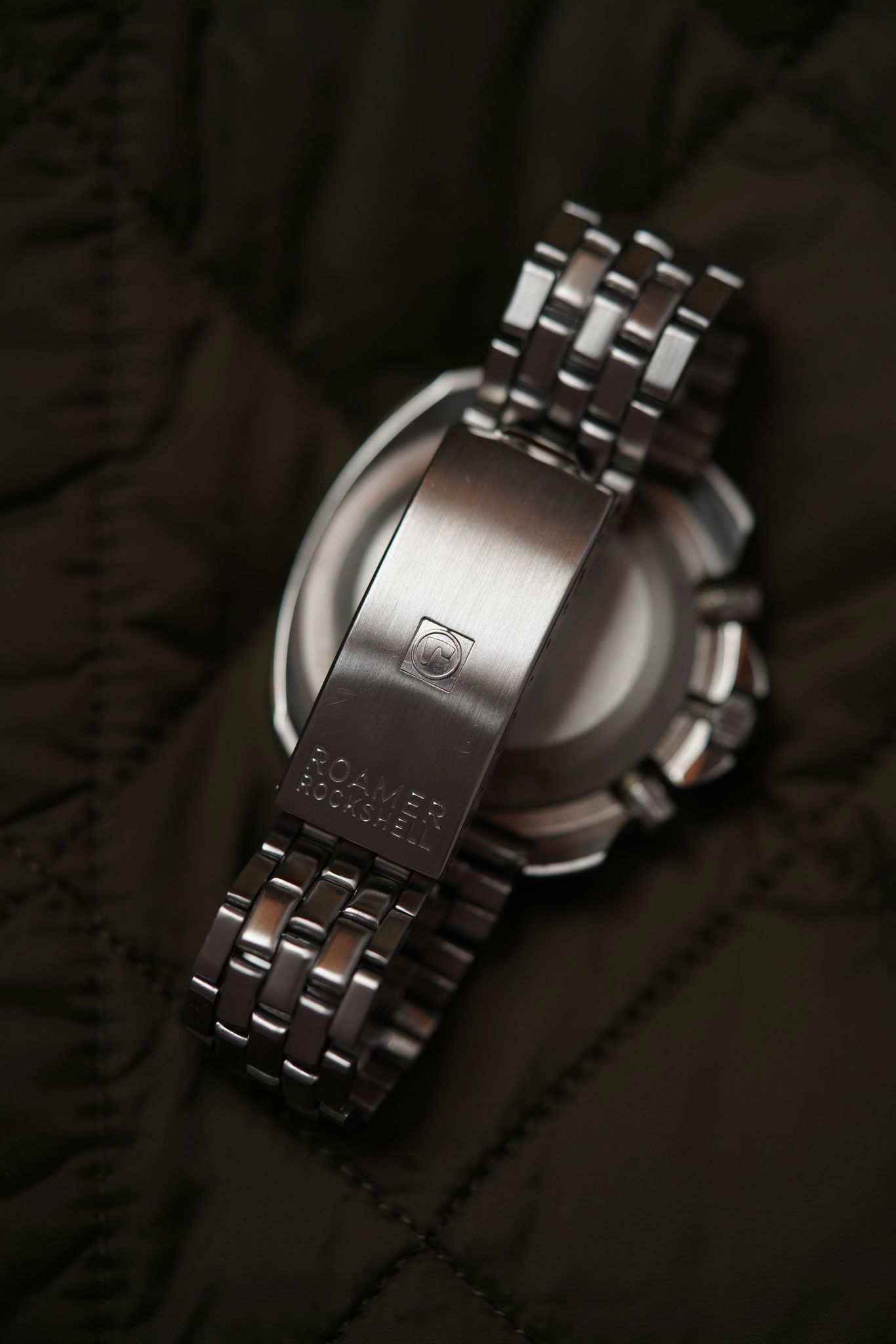 From an oversized, 43mm case, to a unique dial layout, to an original and signed Gay Freres bracelet, this Roamer Stingray Chronograph does tick a lot of boxes.