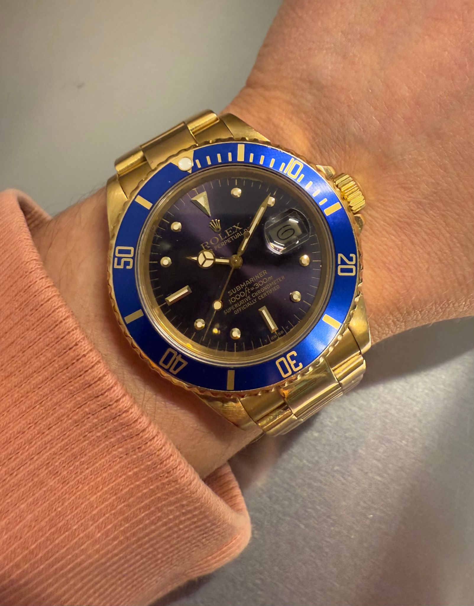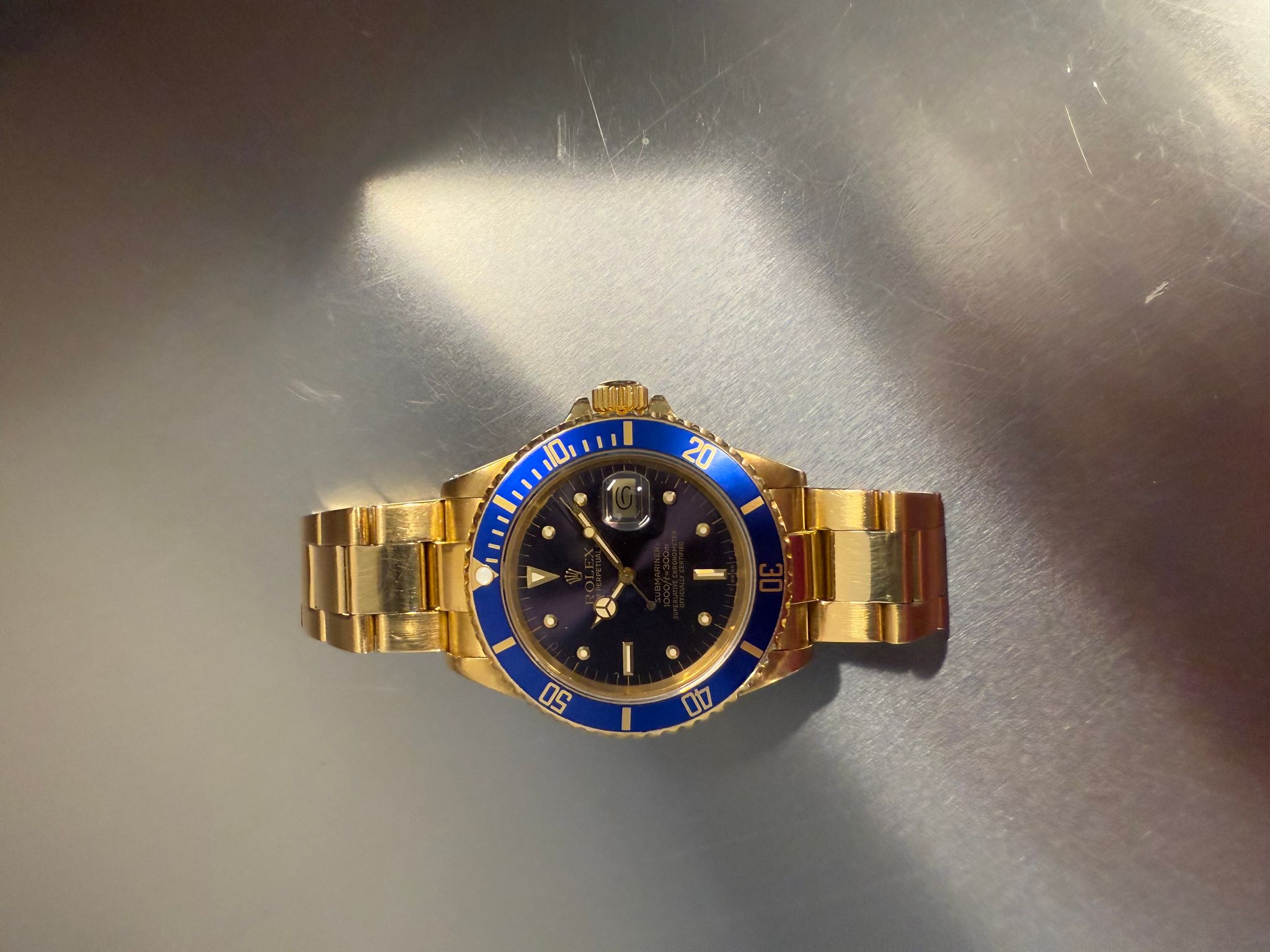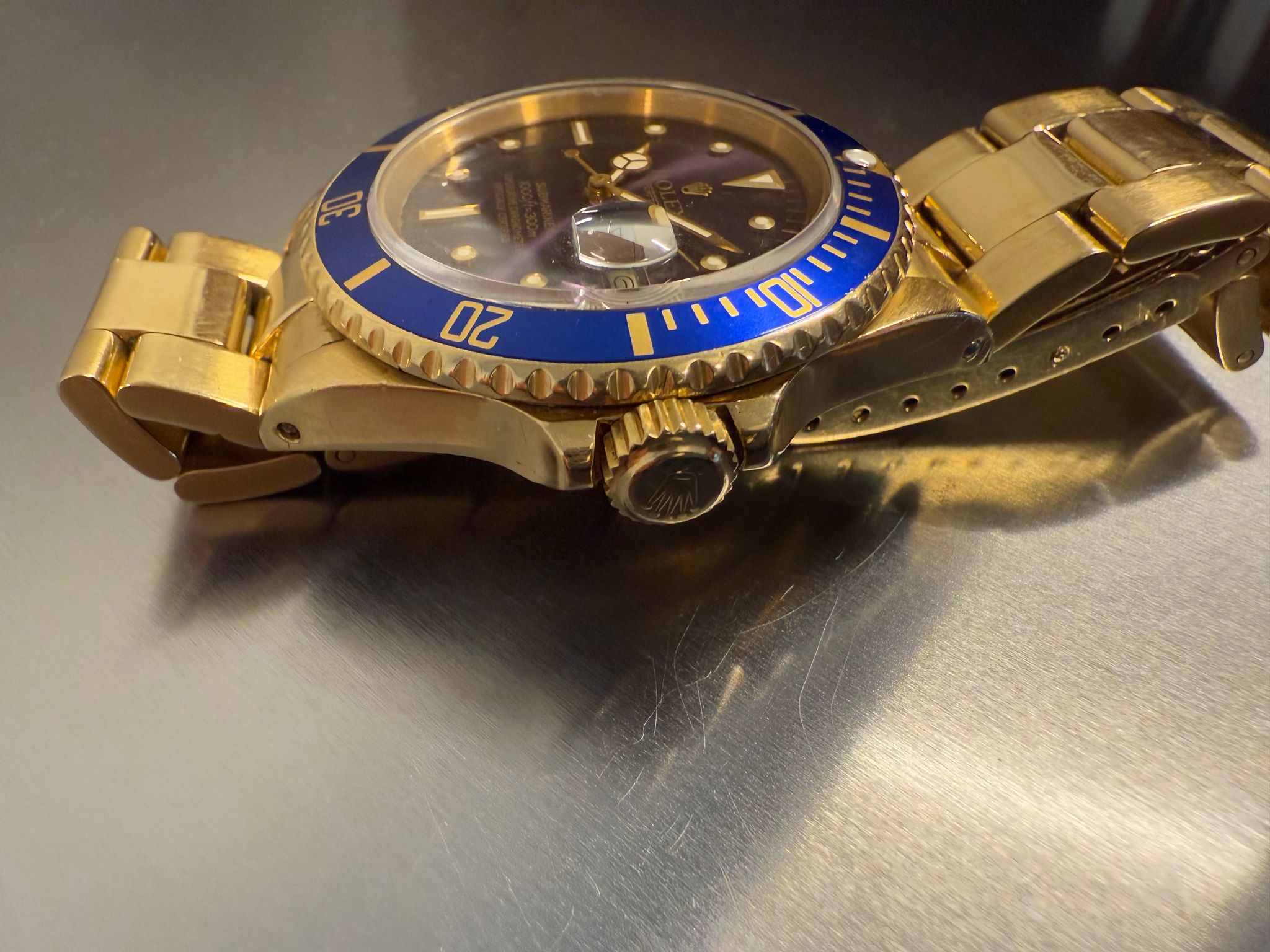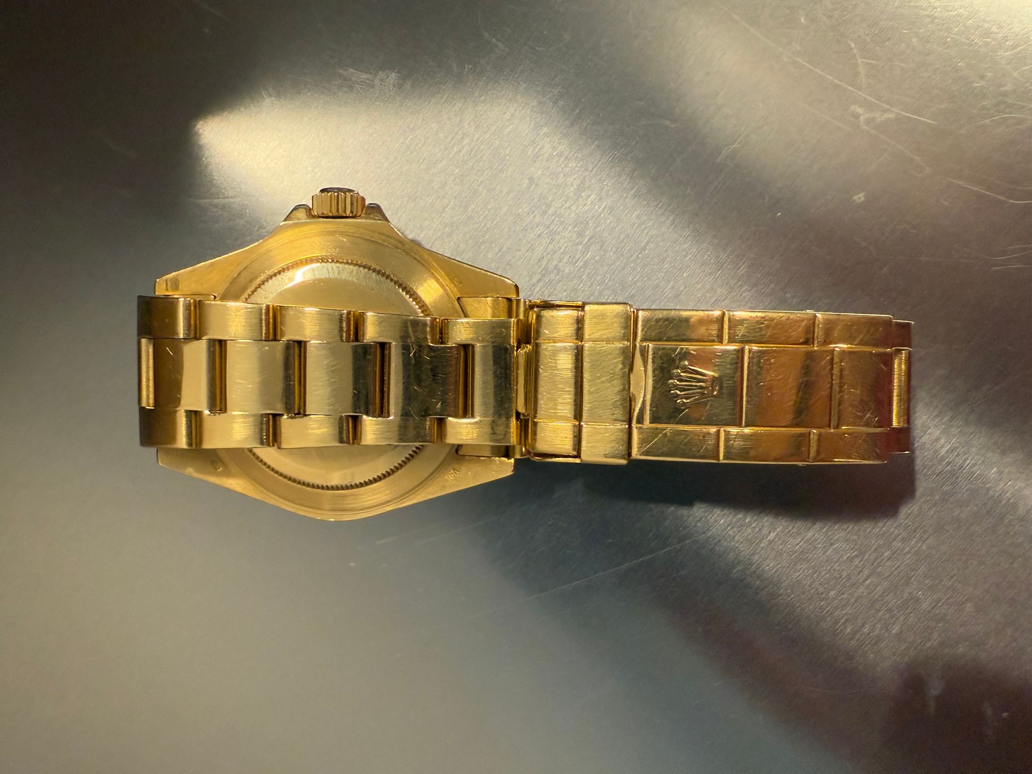 Up for sale is a striking and unique Rolex 18K Yellow Gold Oyster Perpetual Submariner.