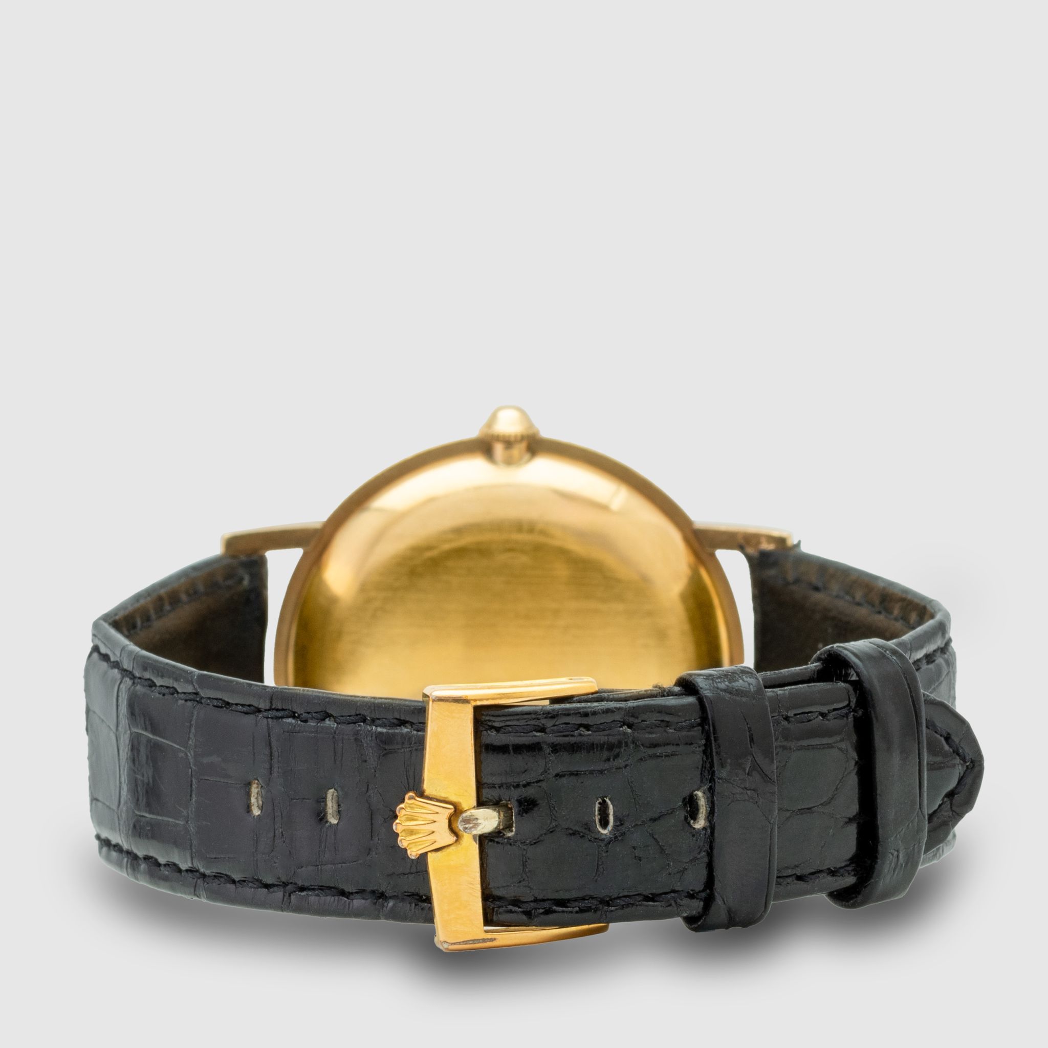 Bracelet/Strap: Original Rolex Croco strap with gold plated Rolex pin buckle.