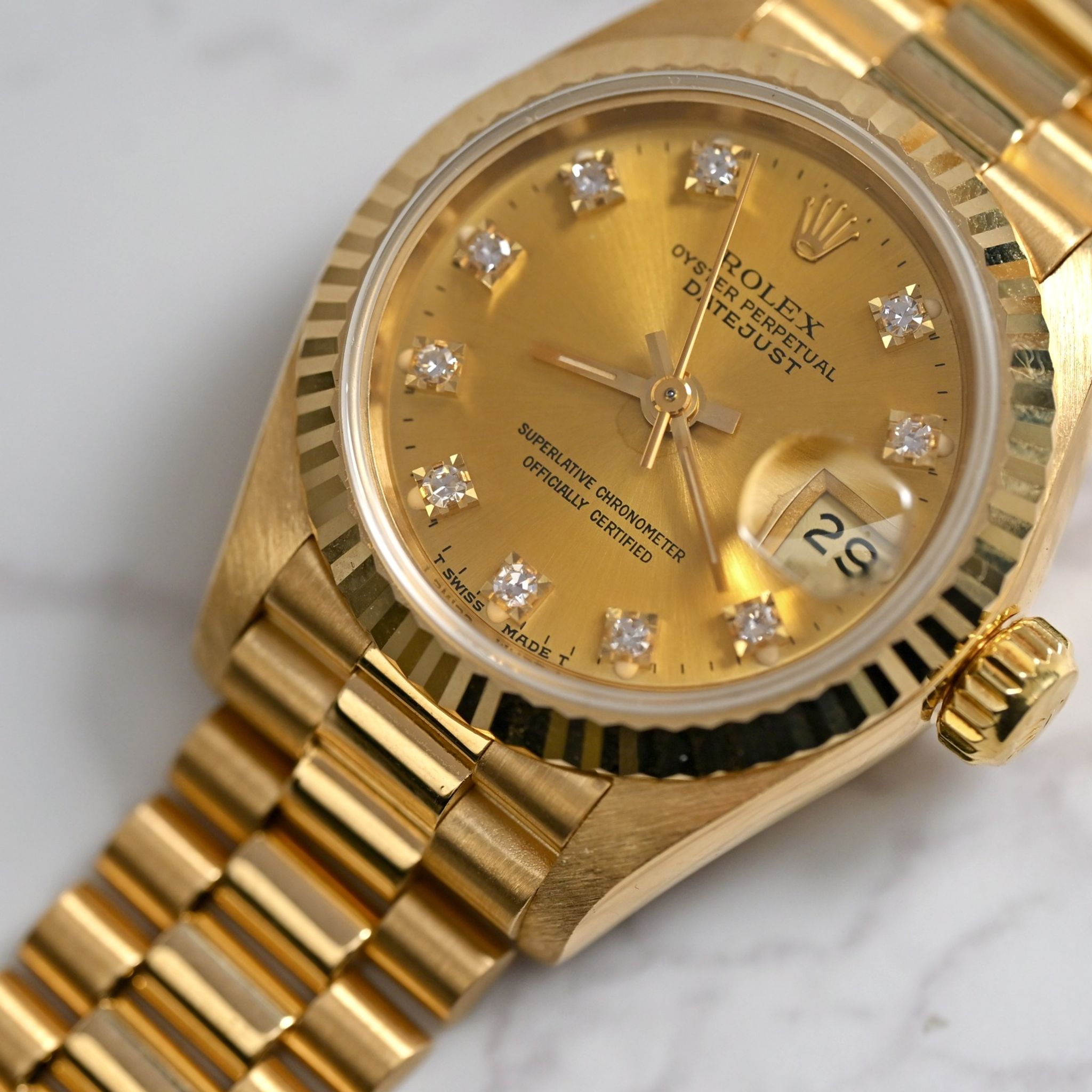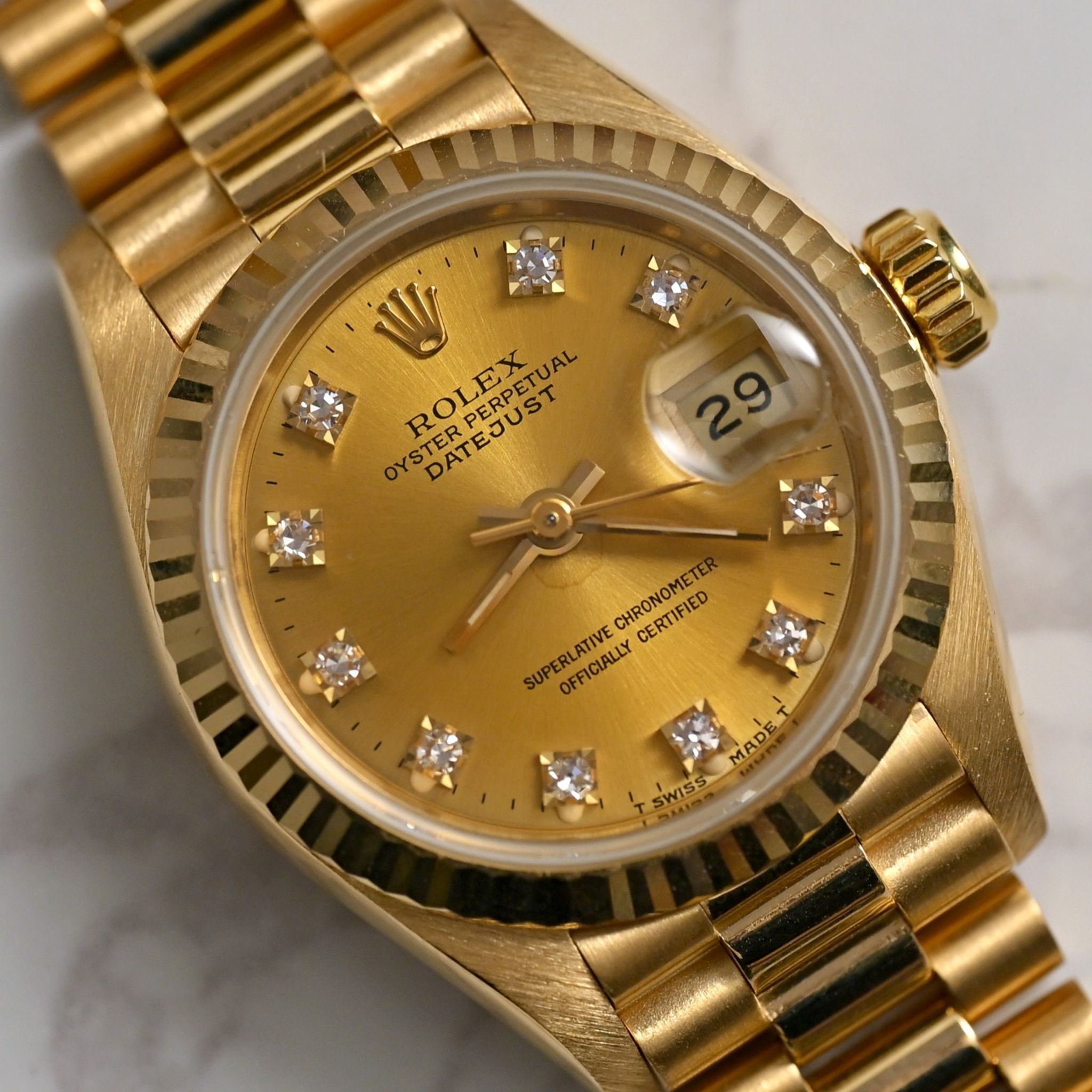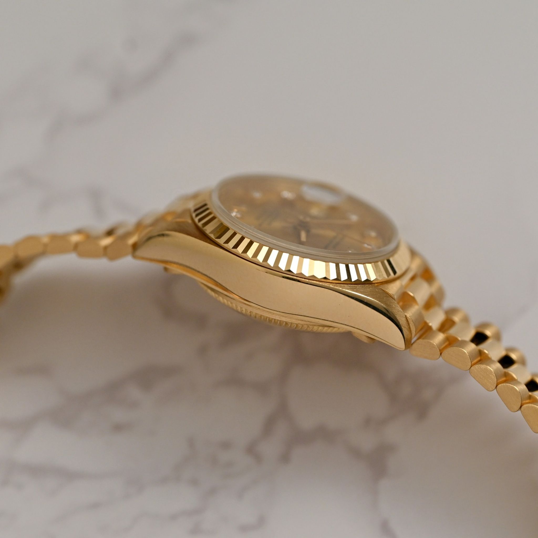 Rolex - Rolex 18K YG Lady Datejust Gold Dial Diamond Indexes 69178 w/Paper