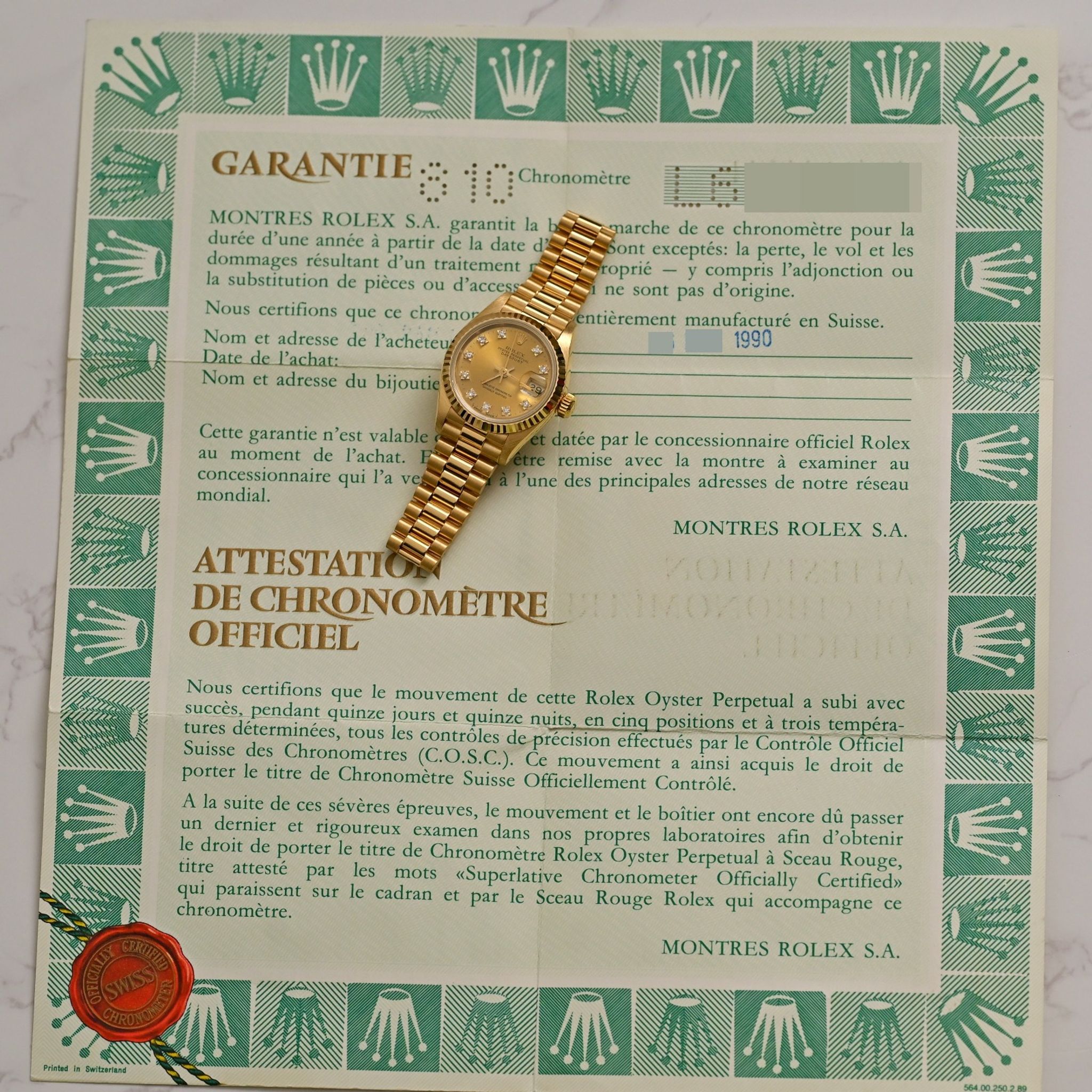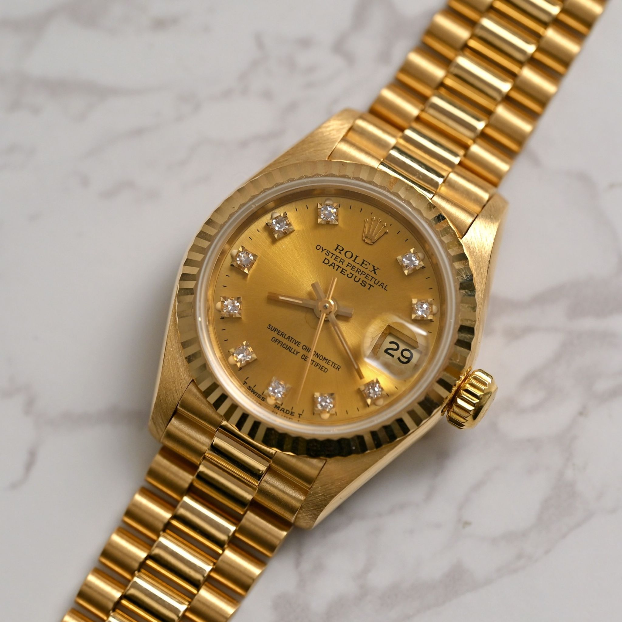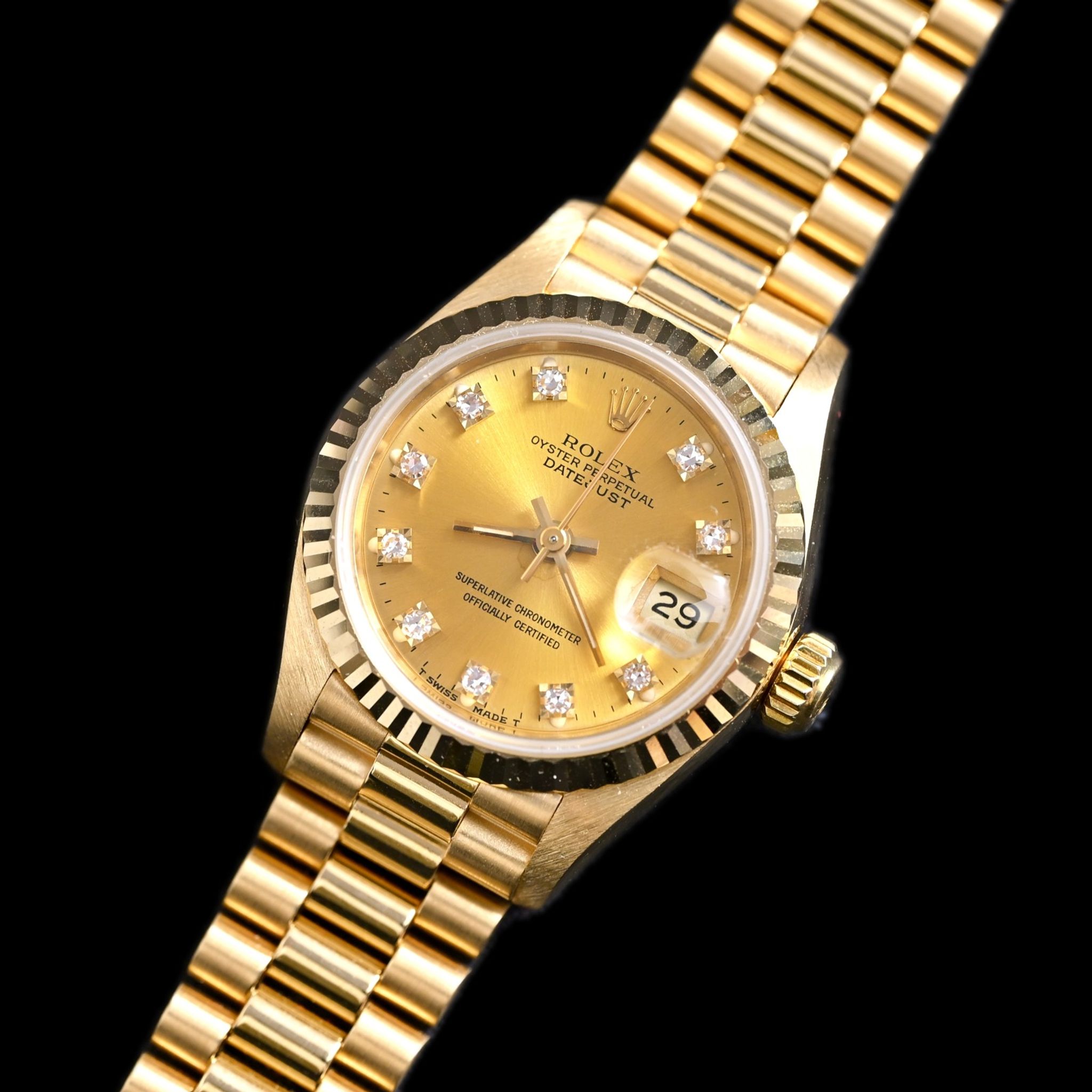 Rolex - Rolex 18K YG Lady Datejust Gold Dial Diamond Indexes 69178 w/Paper
