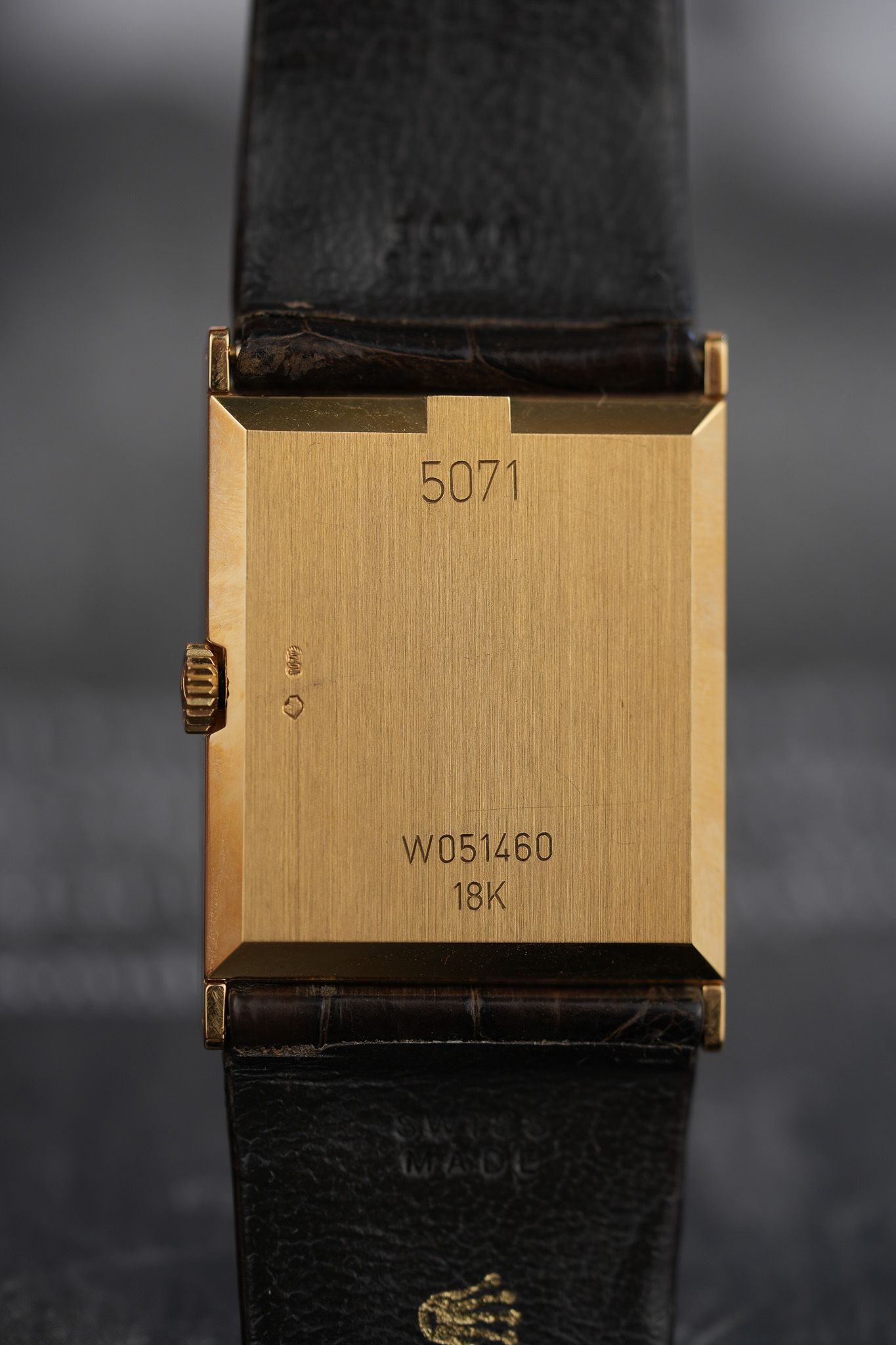 And despite the 25mm width on paper, the 22mm strap gives the whole thing far more presence than expected. It wears confidently, never disappearing under the cuff like you might assume. The watch is also unusually well-preserved—case lines remain razor-sharp, the gold surfaces clean and the serial engraving on the caseback is so deep it might as well have been etched yesterday.