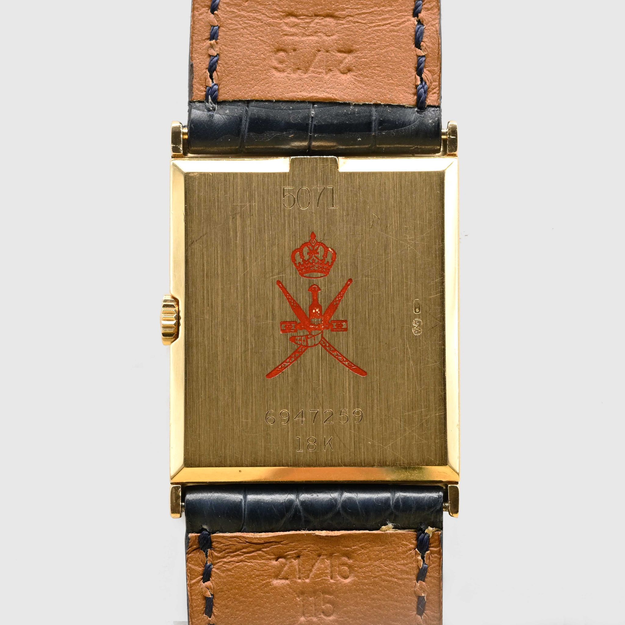 In exceptional condition, this watch is further distinguished by the Khanjar logo on its case back, engraved and painted in red enamel, marking it as a special commission by the Sultanate of Oman.