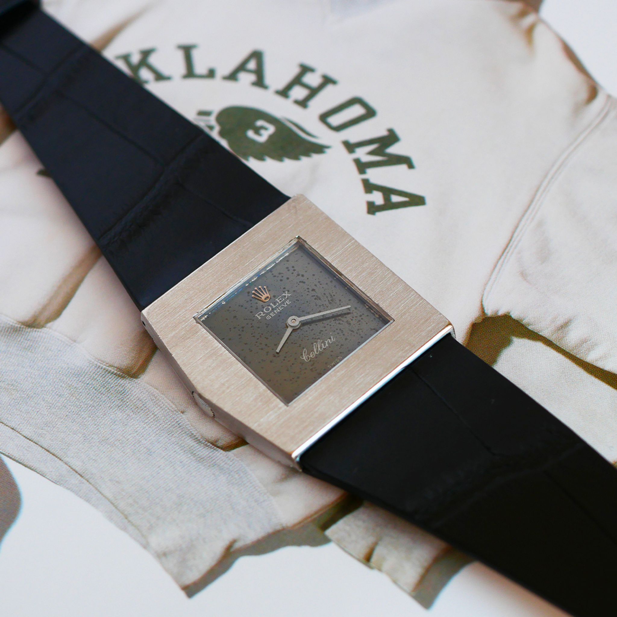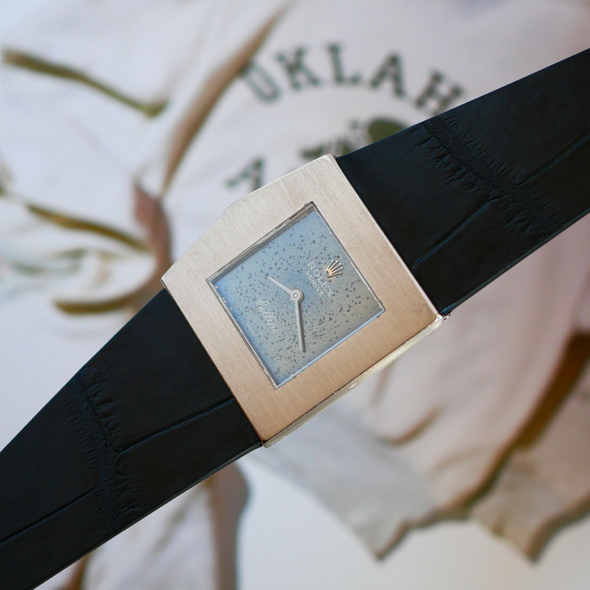 The little sister of the King Midas, this Cellini Midas is a distillation of the 1970s. Elegant with its uncommon design, its white gold case is in very good condition, and its blue 'stardust' dial adds a unique touch. Depending on the light, the dial shifts between light and dark tones. Its manual mechanical movement runs perfectly. Add this unique watch to your collection !