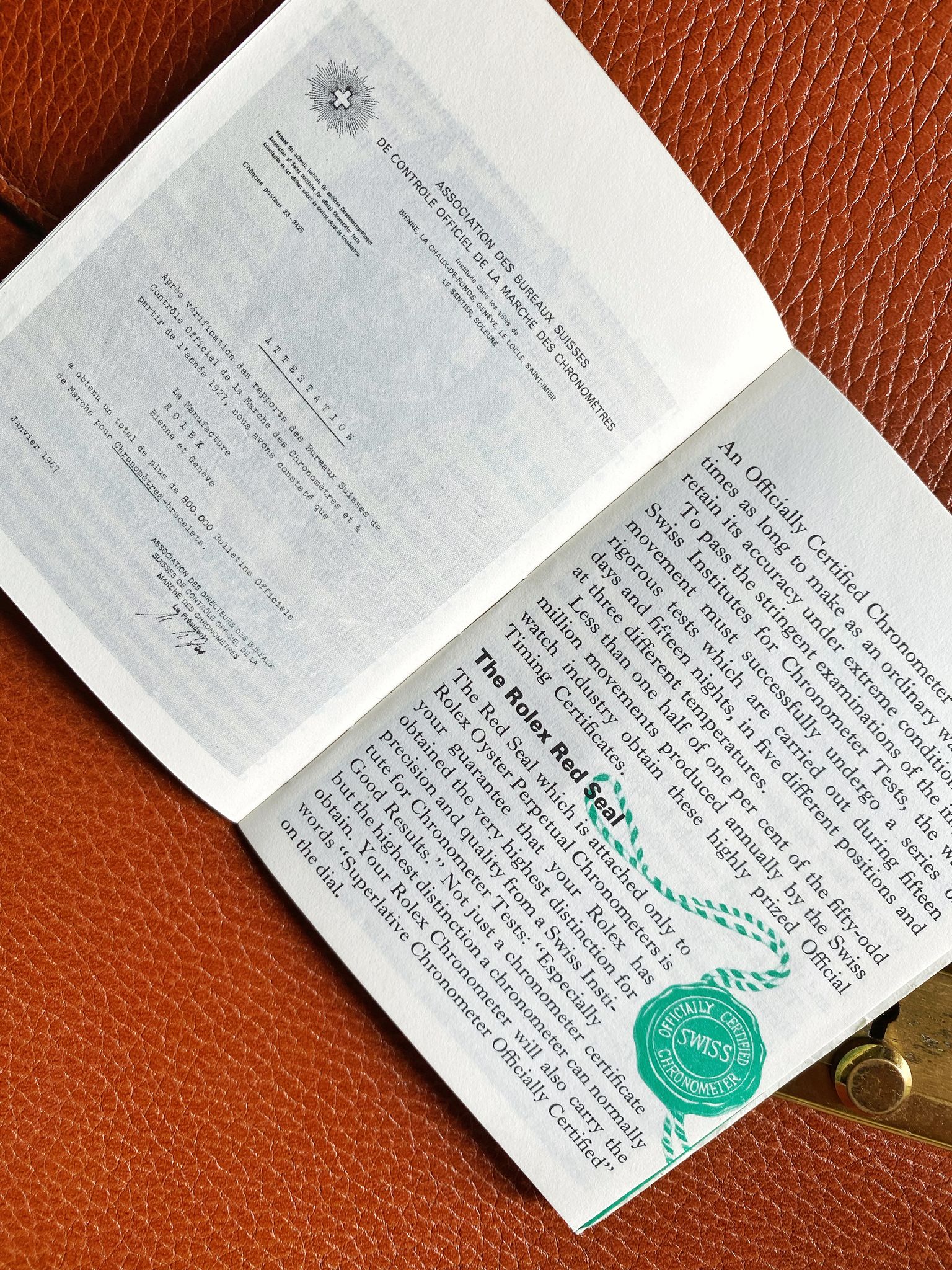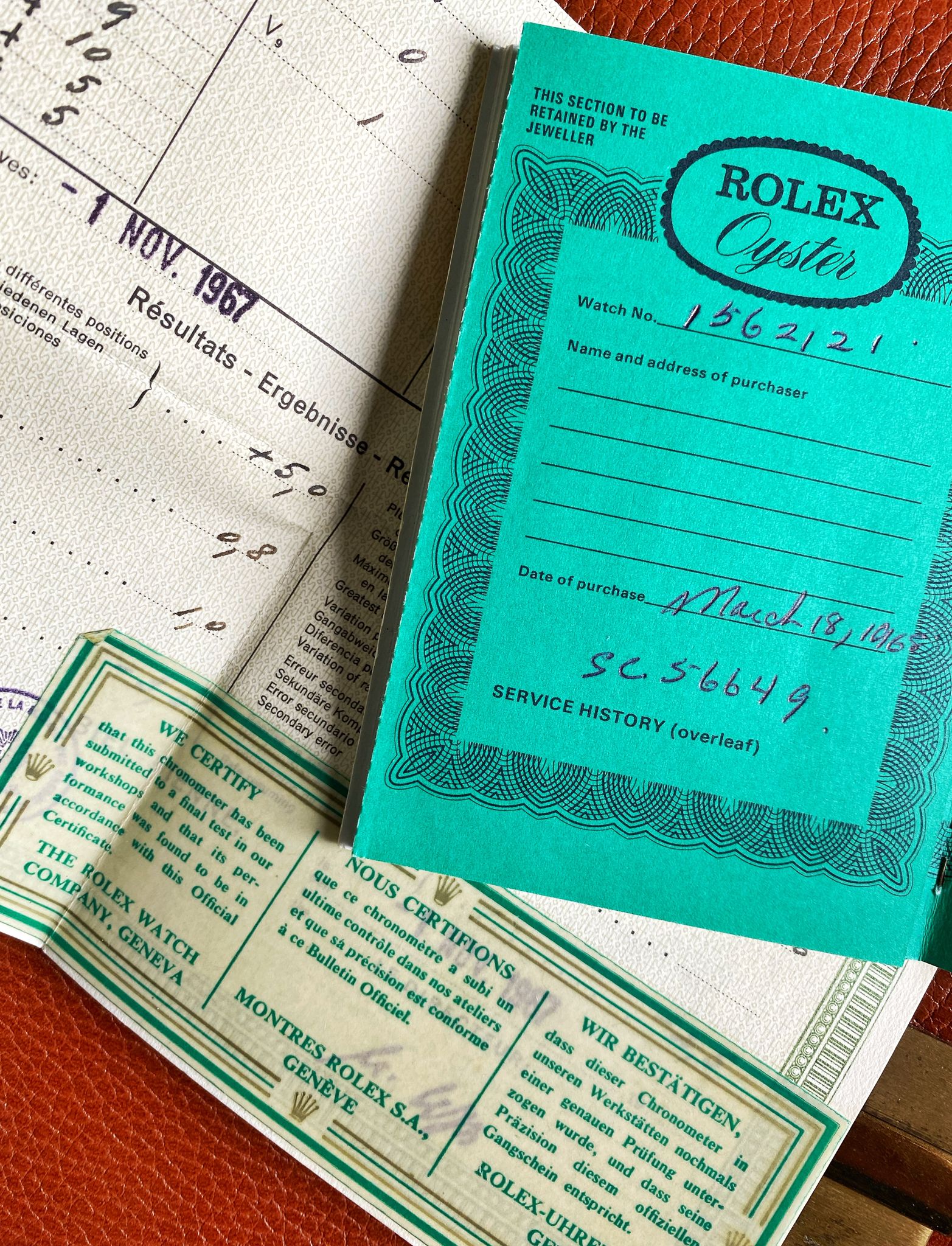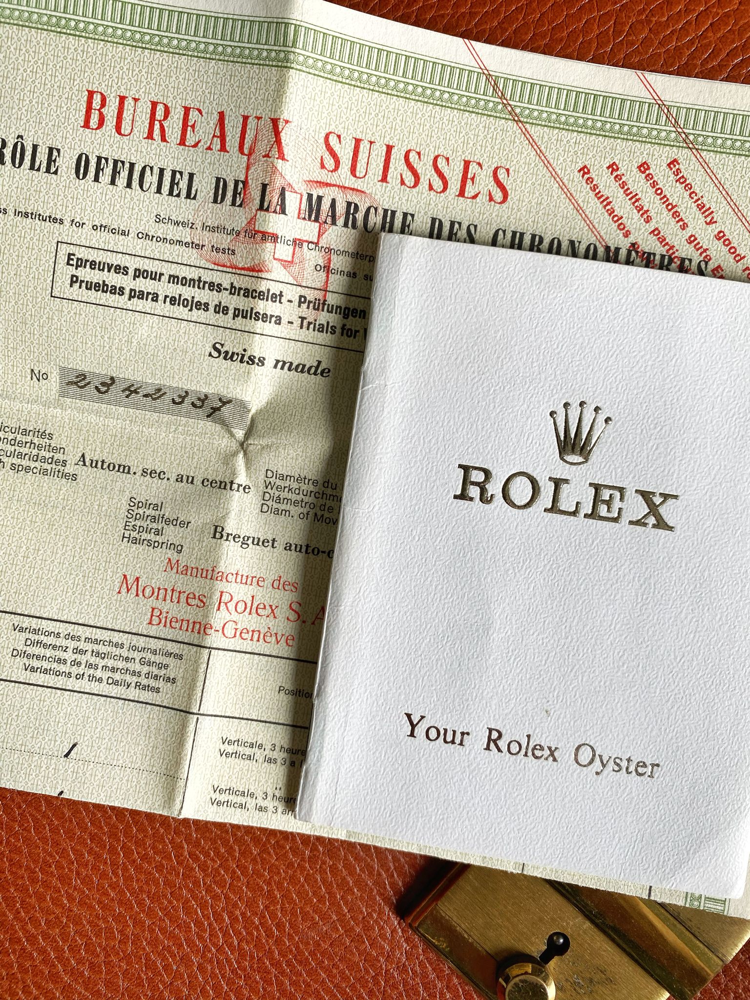Note: Extra long USA Jubilee with some stretch, Chronometer paper and Warranty booklet with 33 pages, one-owner watch as found.