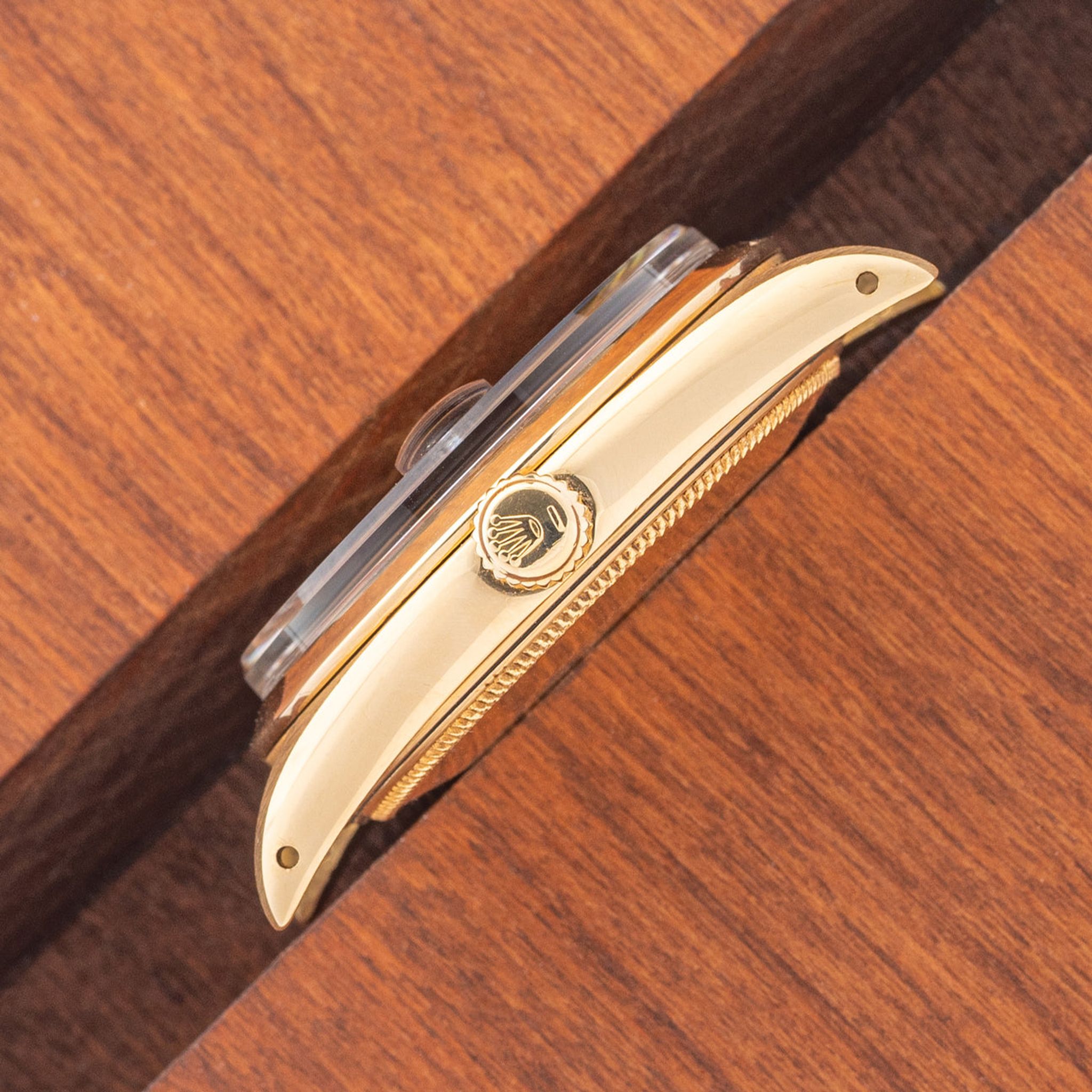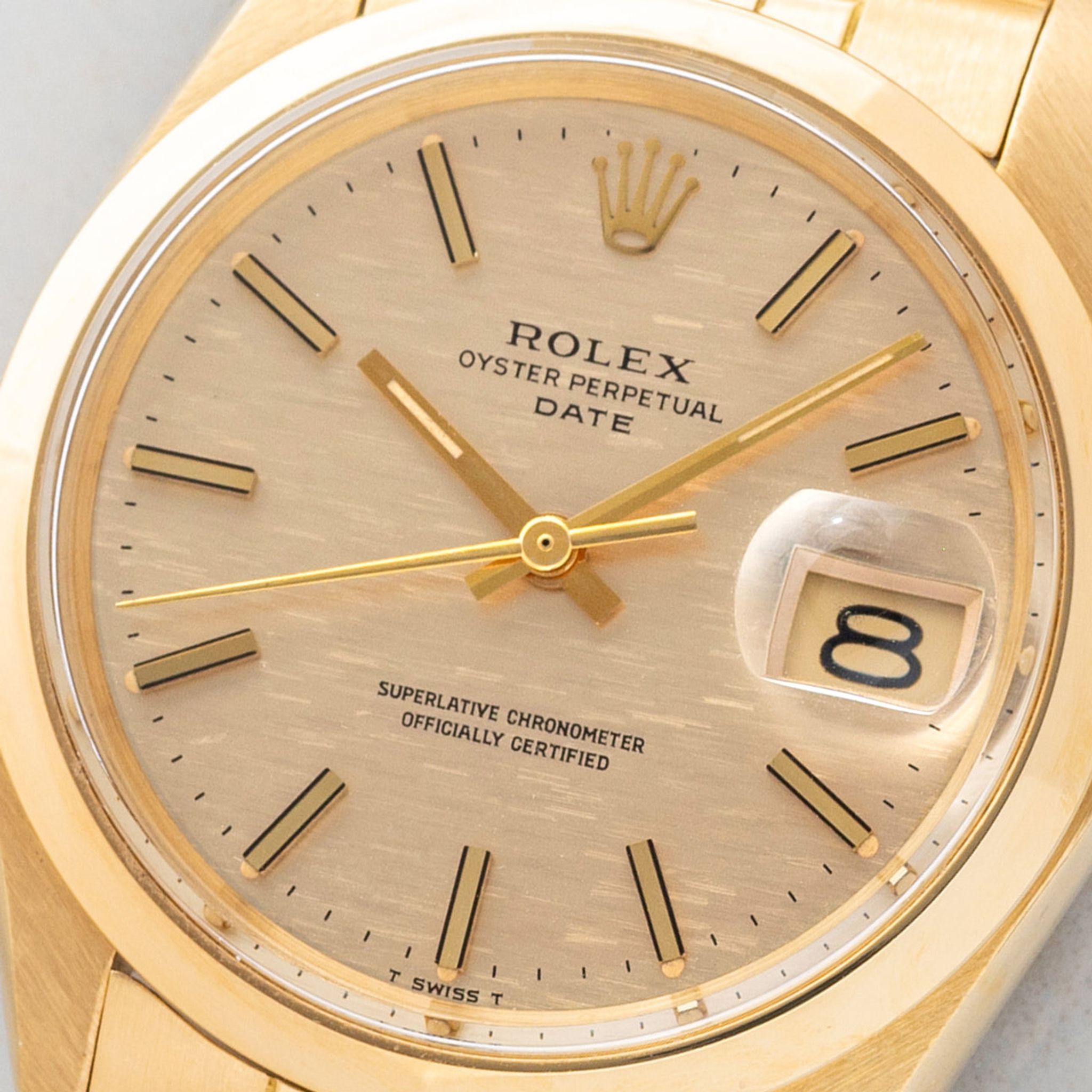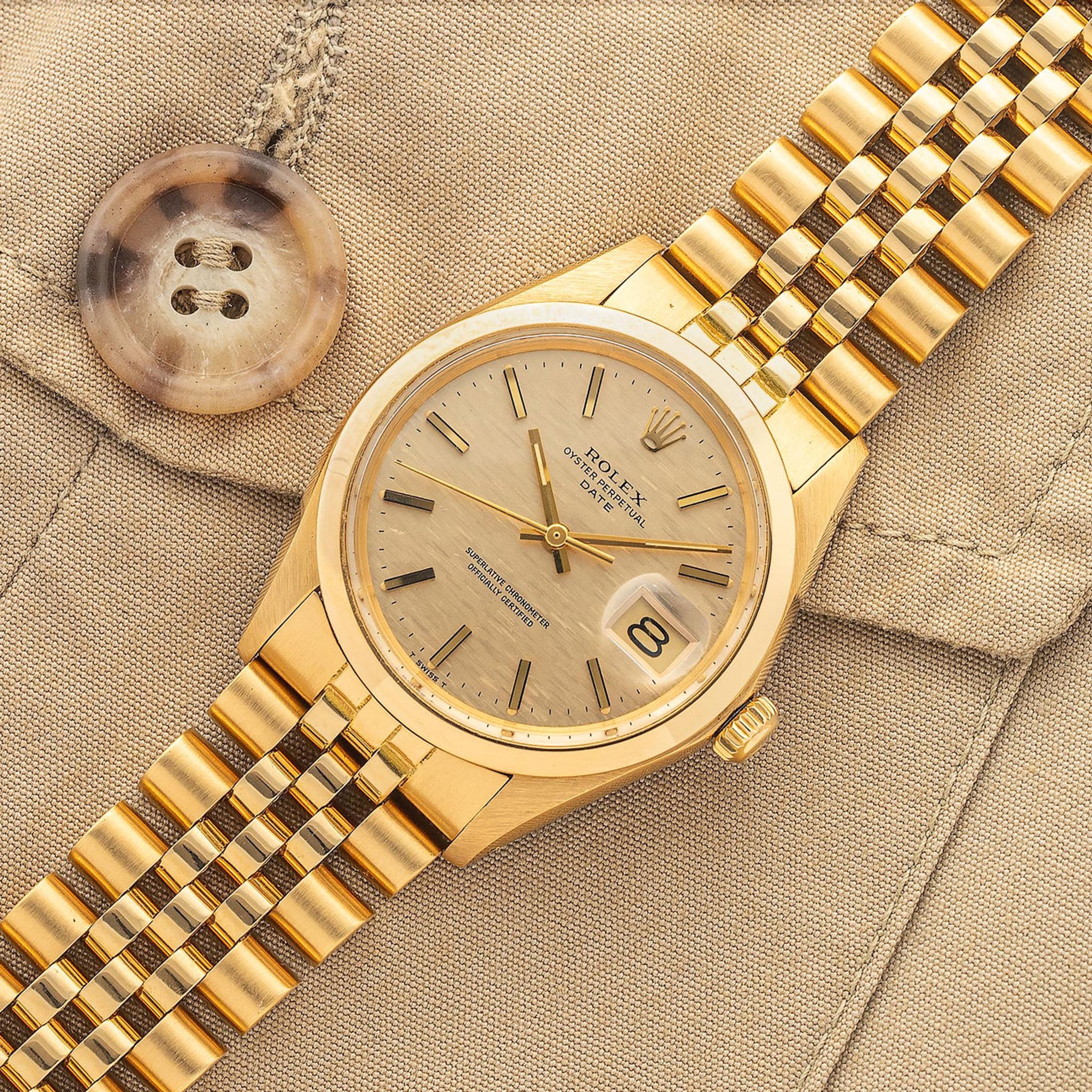 The Rolex Date (34mm) is undoubtedly discussed less than its 36mm siblings; the now iconic Datejust and Day-Date. That doesn't mean the model should be overlooked however and we'd argue that the slightly smaller dimensions feel even more elegant on wrist, especially in yellow gold.