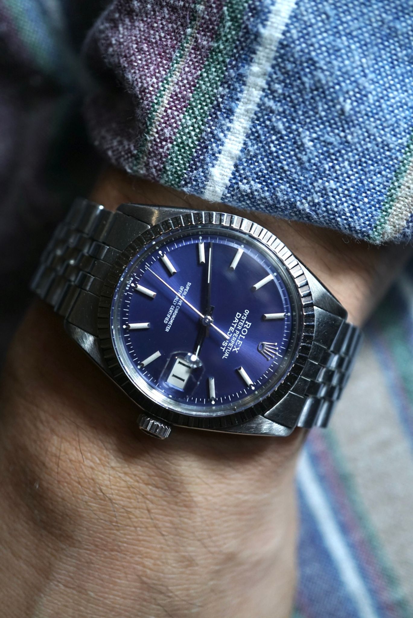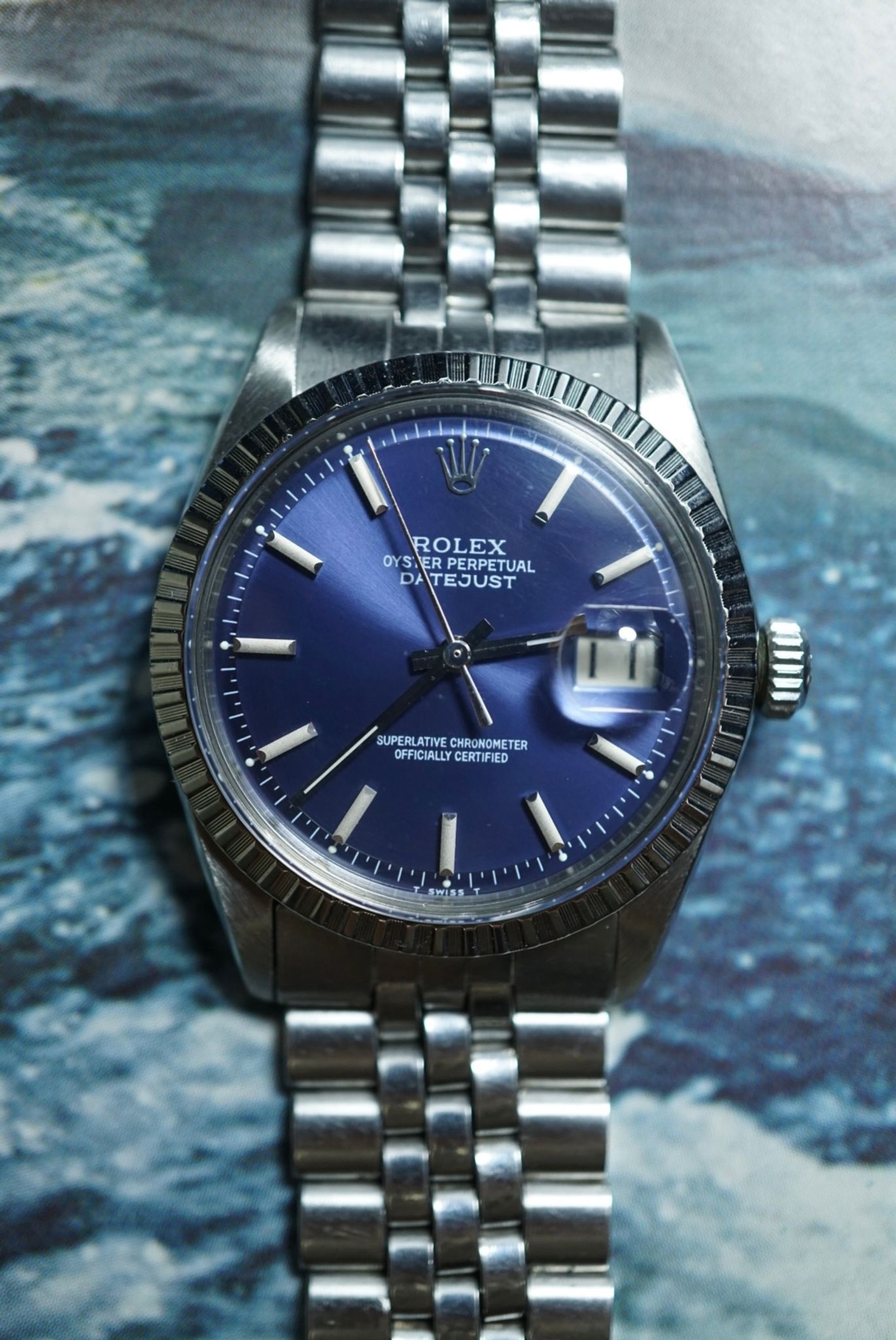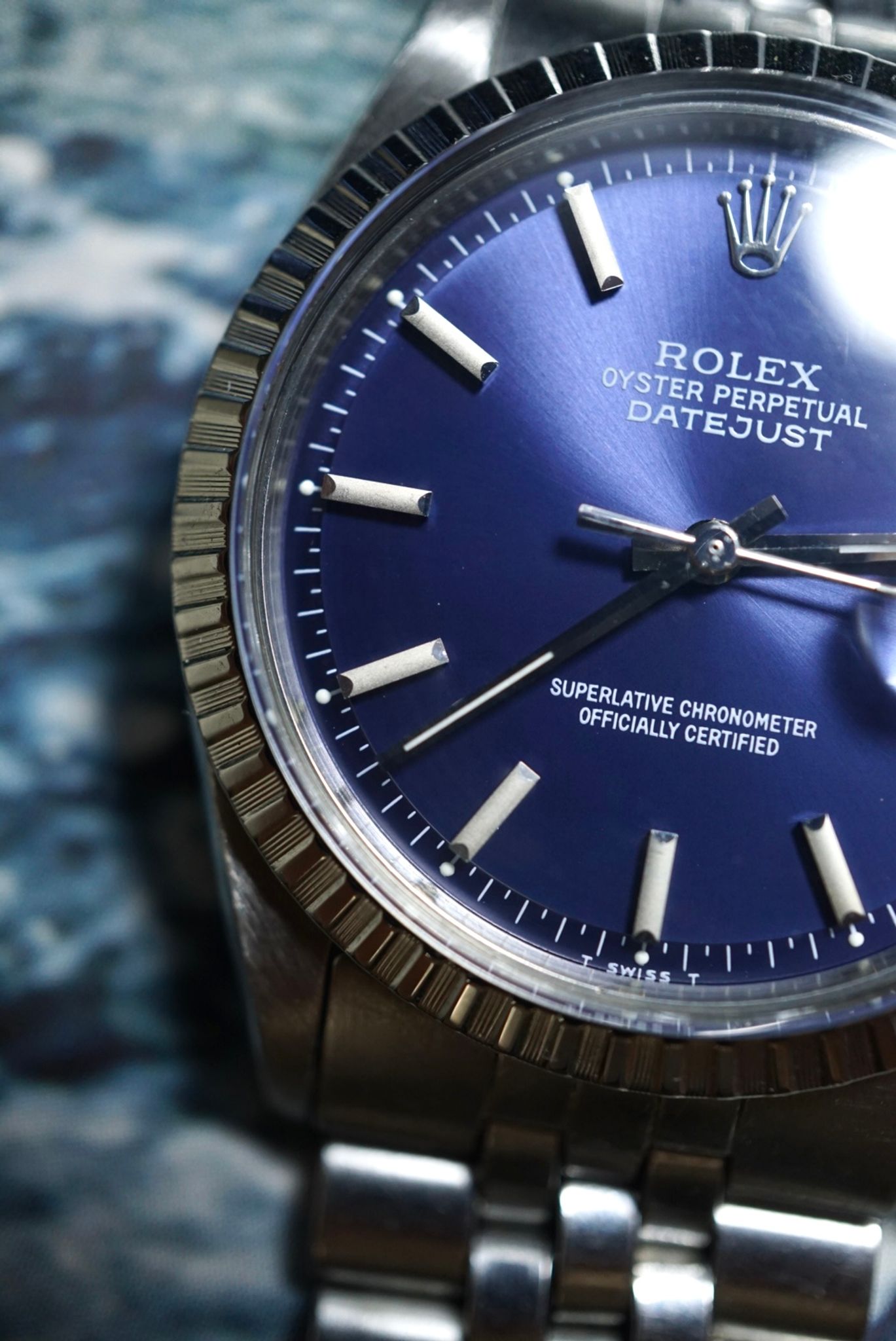 Spectacular Rolex Datejust ref. 1603 with a striking blue sunburst dial, this one dates back to 1970, very nice condition for a 54-year-old watch.