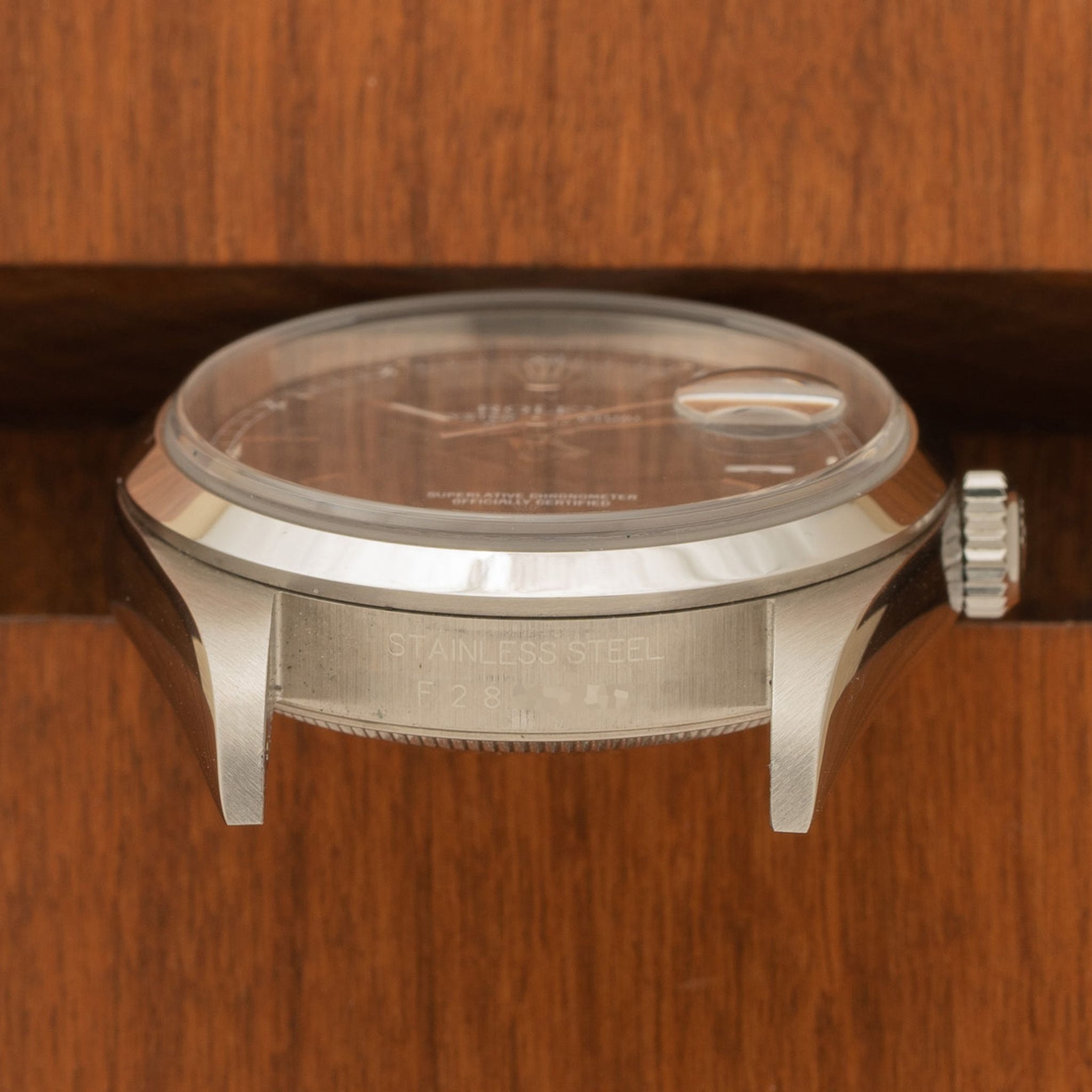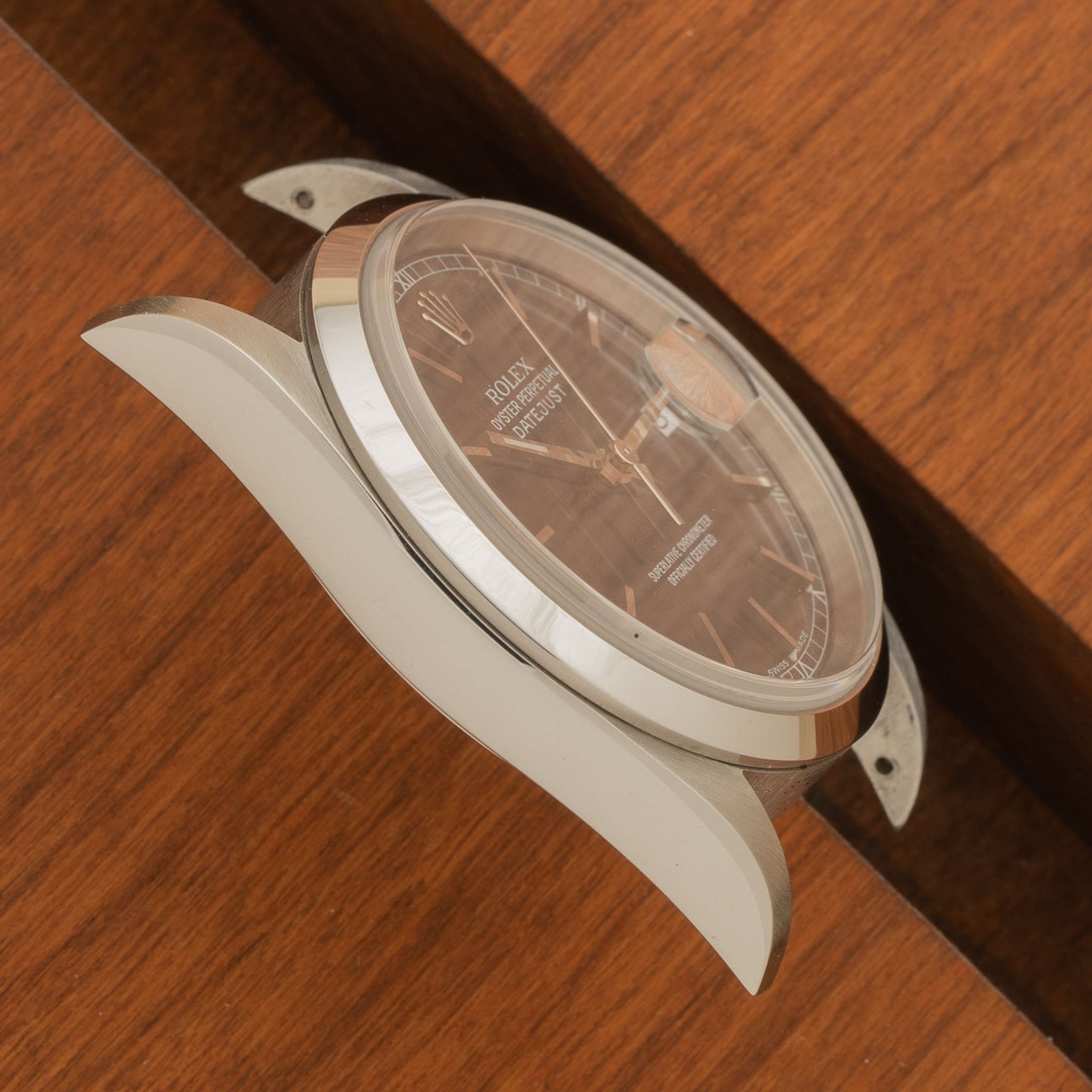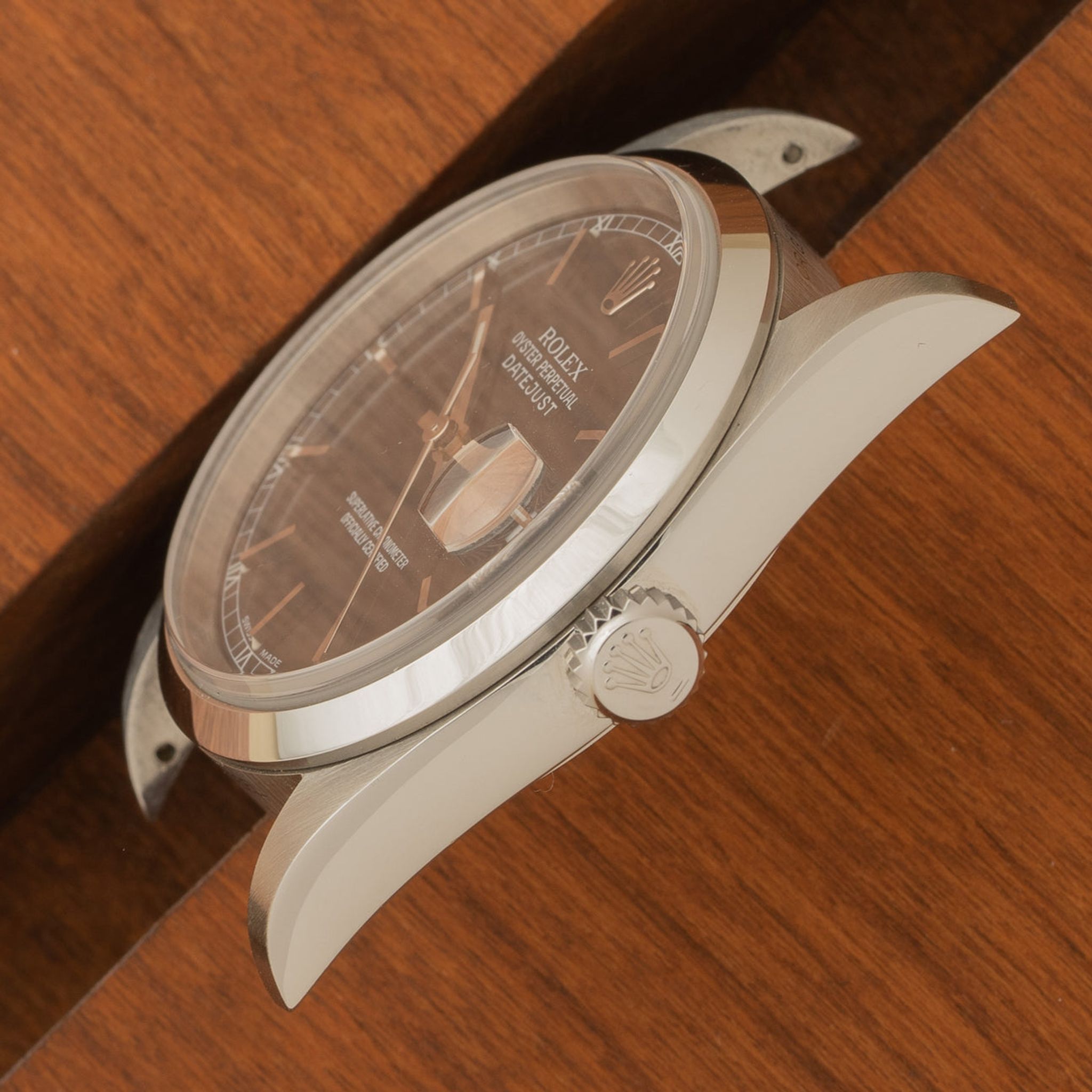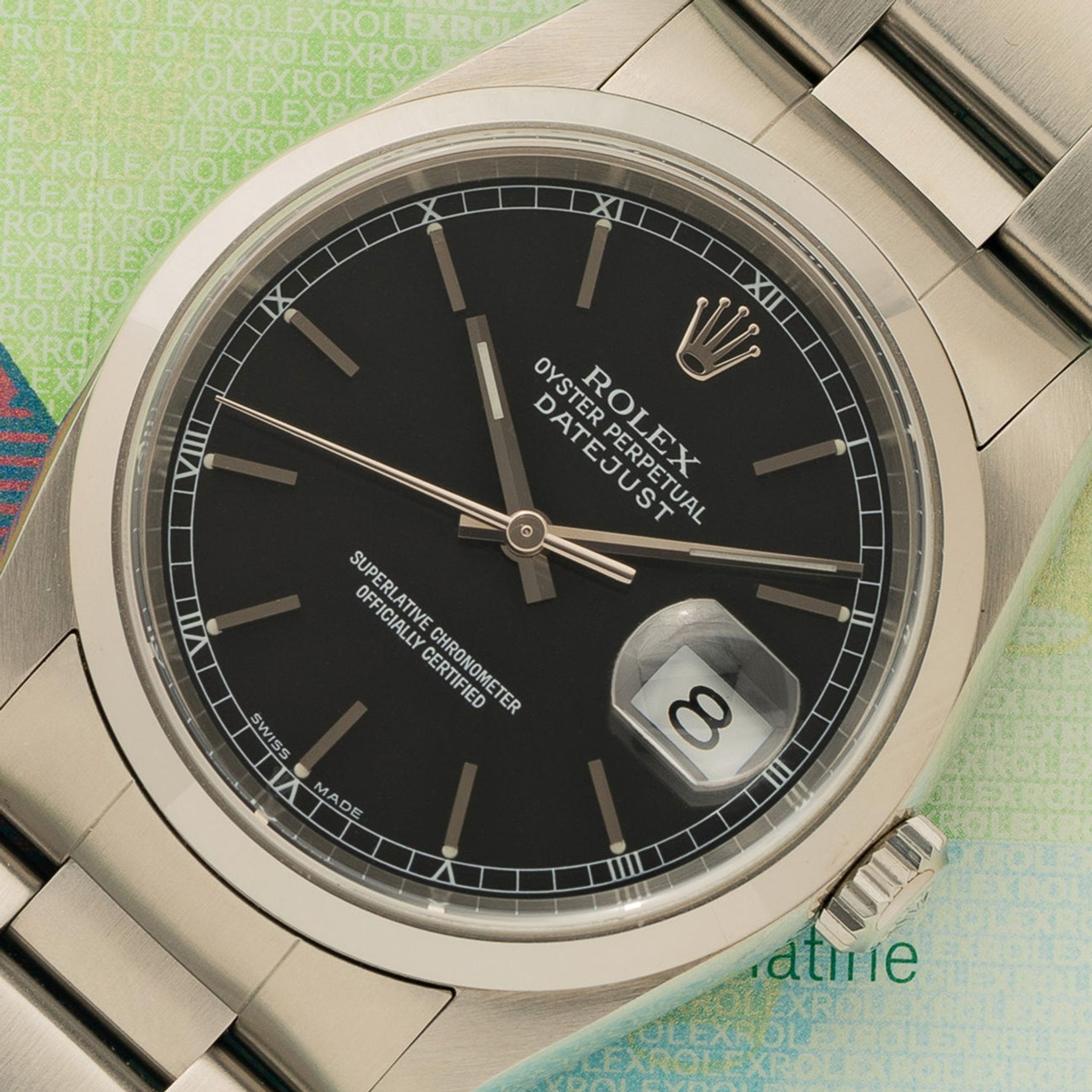 This five digit reference example benefits from the addition of a quickset date feature. The "smooth bezel" Datejust models with oyster bracelet are less common to see and we believe this particular example to be a stand out example, offered in excellent condition with what appears to be an unpolished case and tight bracelet. The "888" papers denote an initial delivery to Hong Kong, one of the global meccas of watch collection. This black dial variant is understated yet elegant and would stand out to collectors of any level.