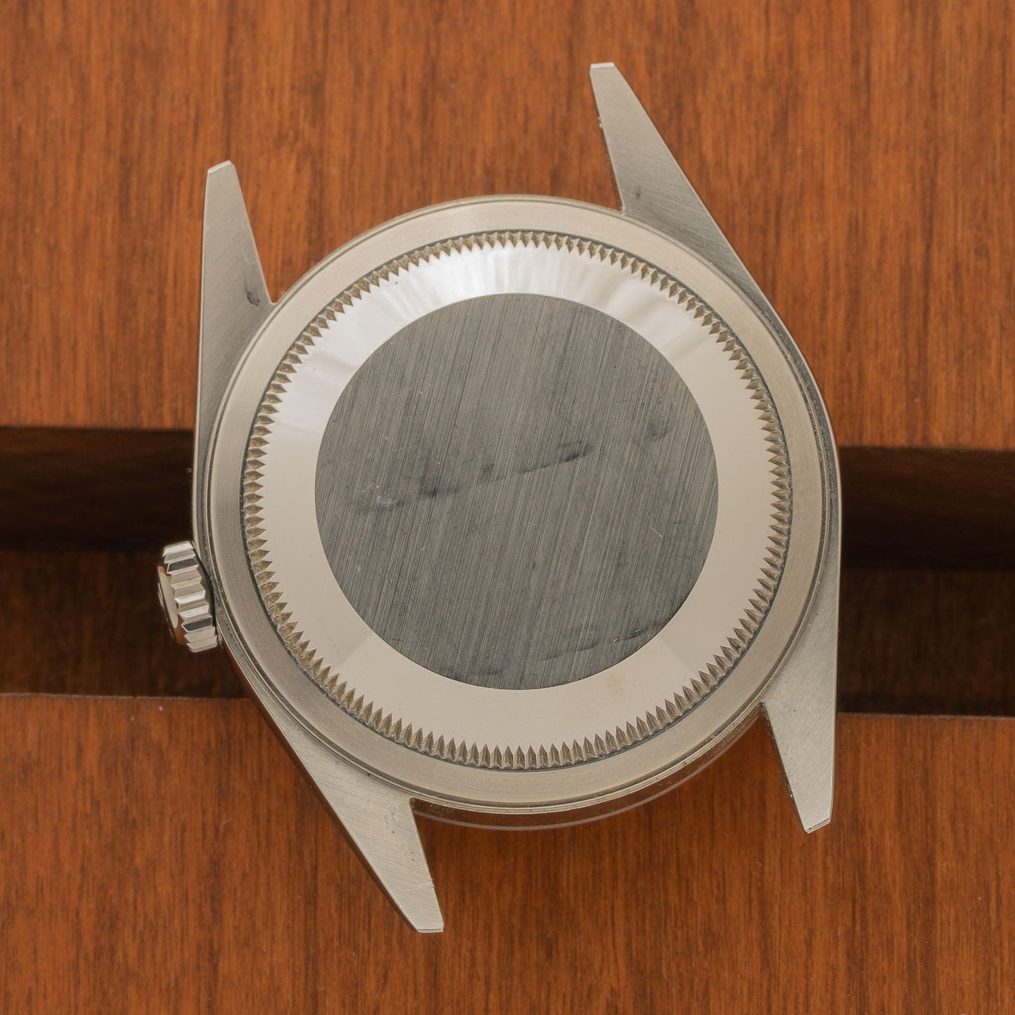 Case: Very sharp and appears unpolished. Light signs of use. Correct signed crown.