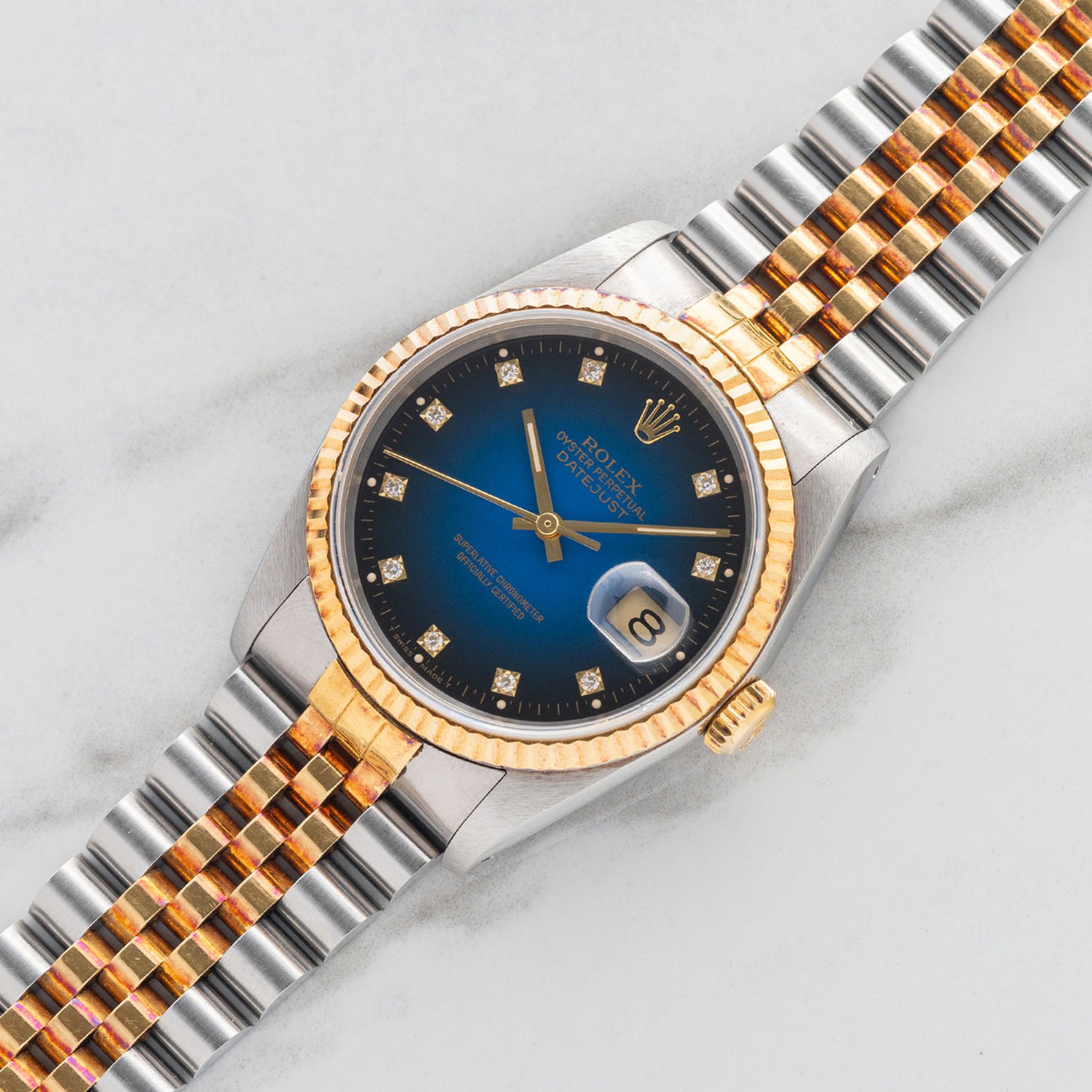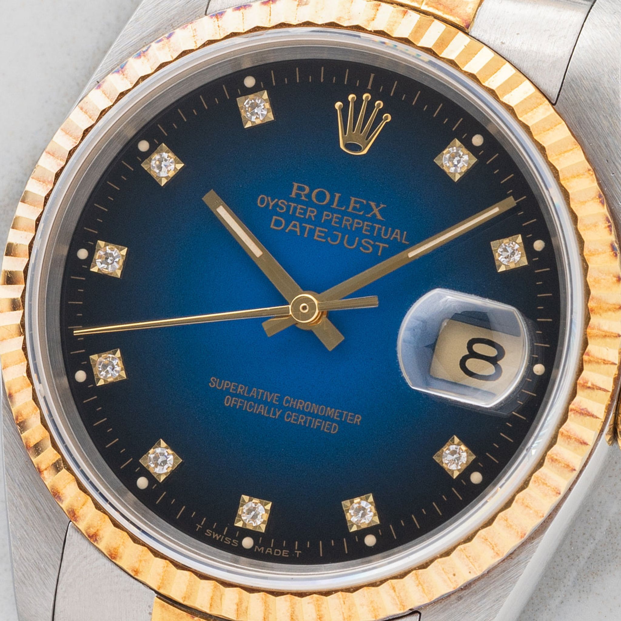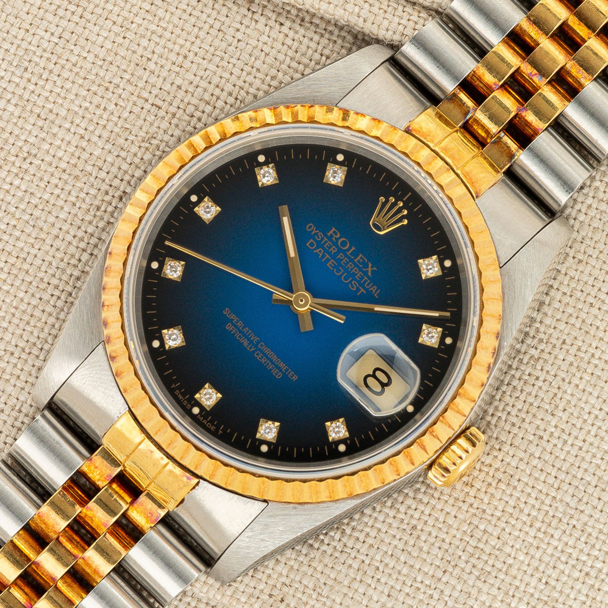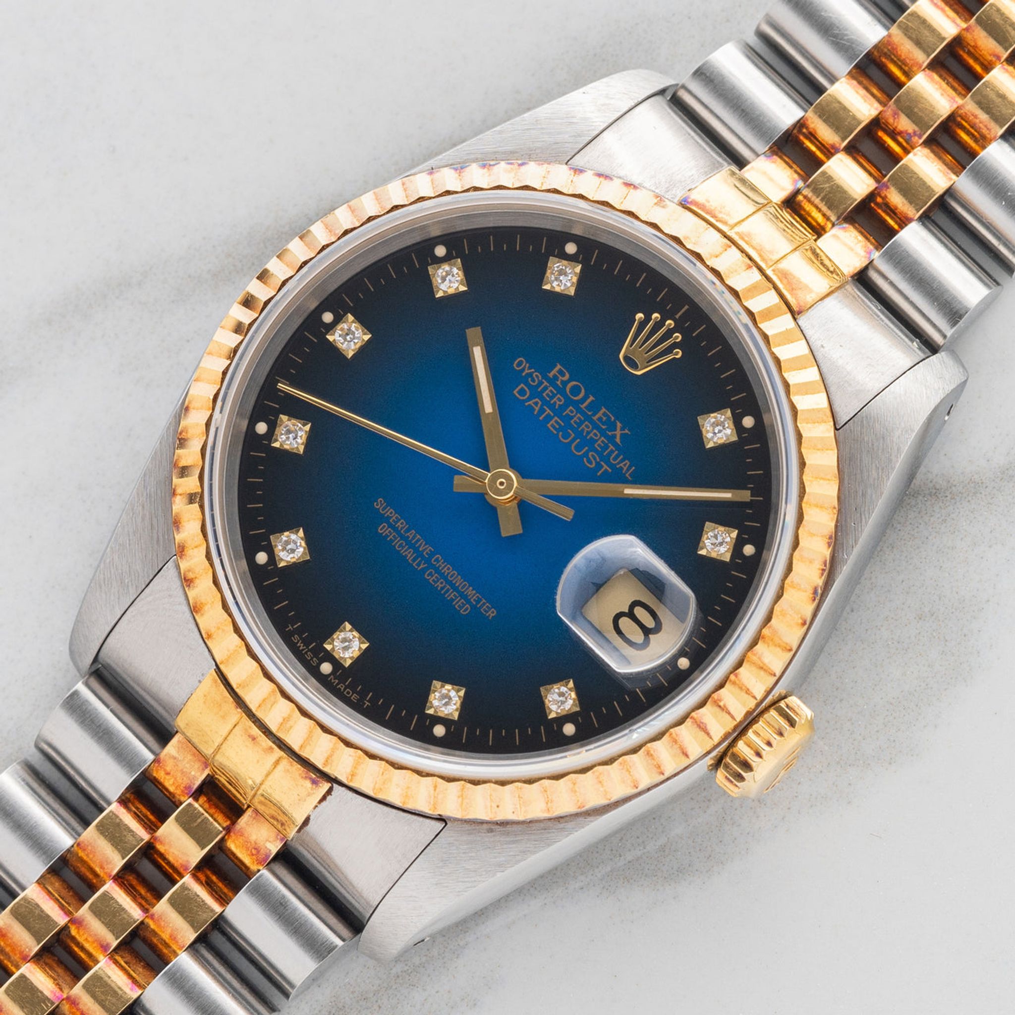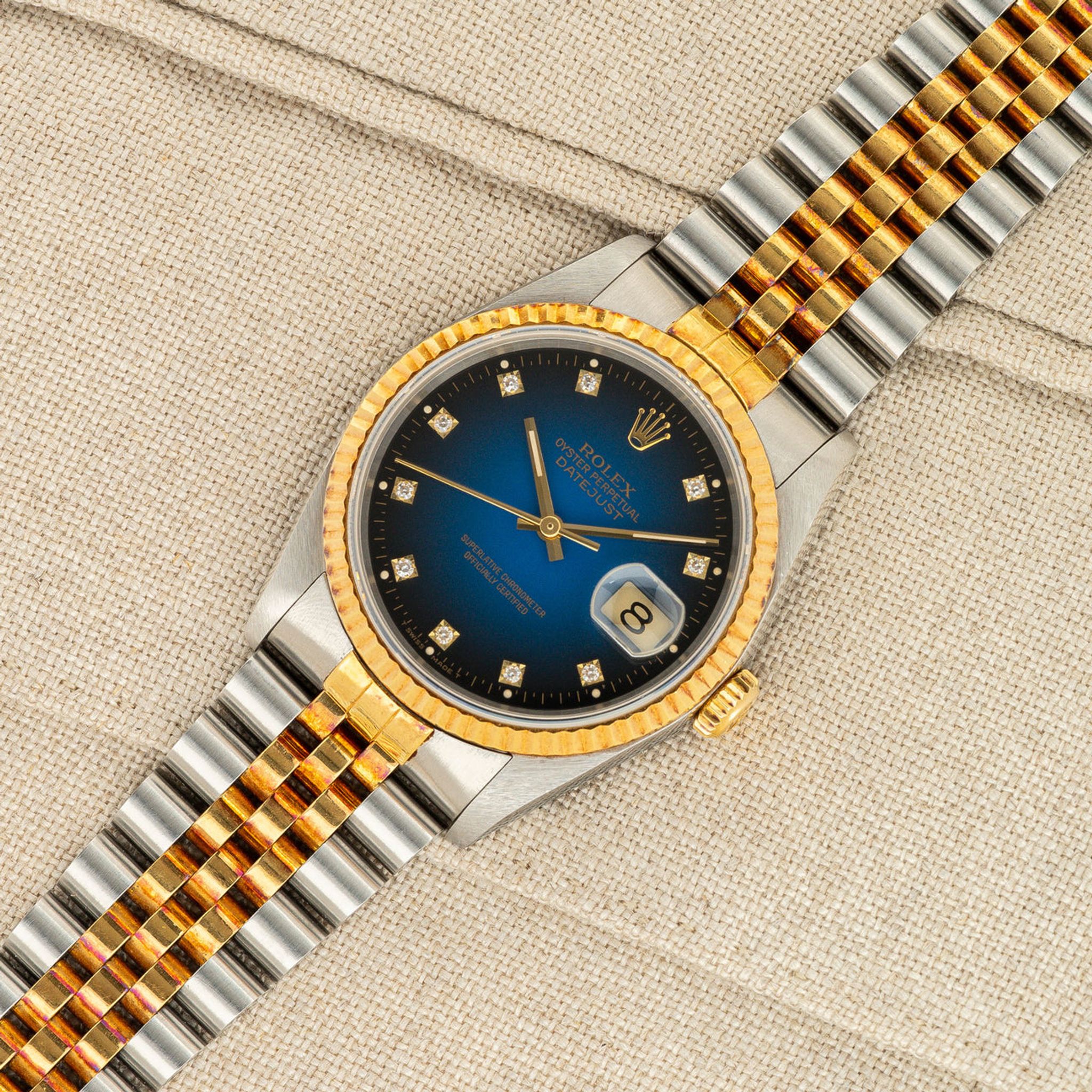 Rolex - Rolex Datejust 16233 w/ Blue Vignette & Diamond Dial - Full Set / Mint