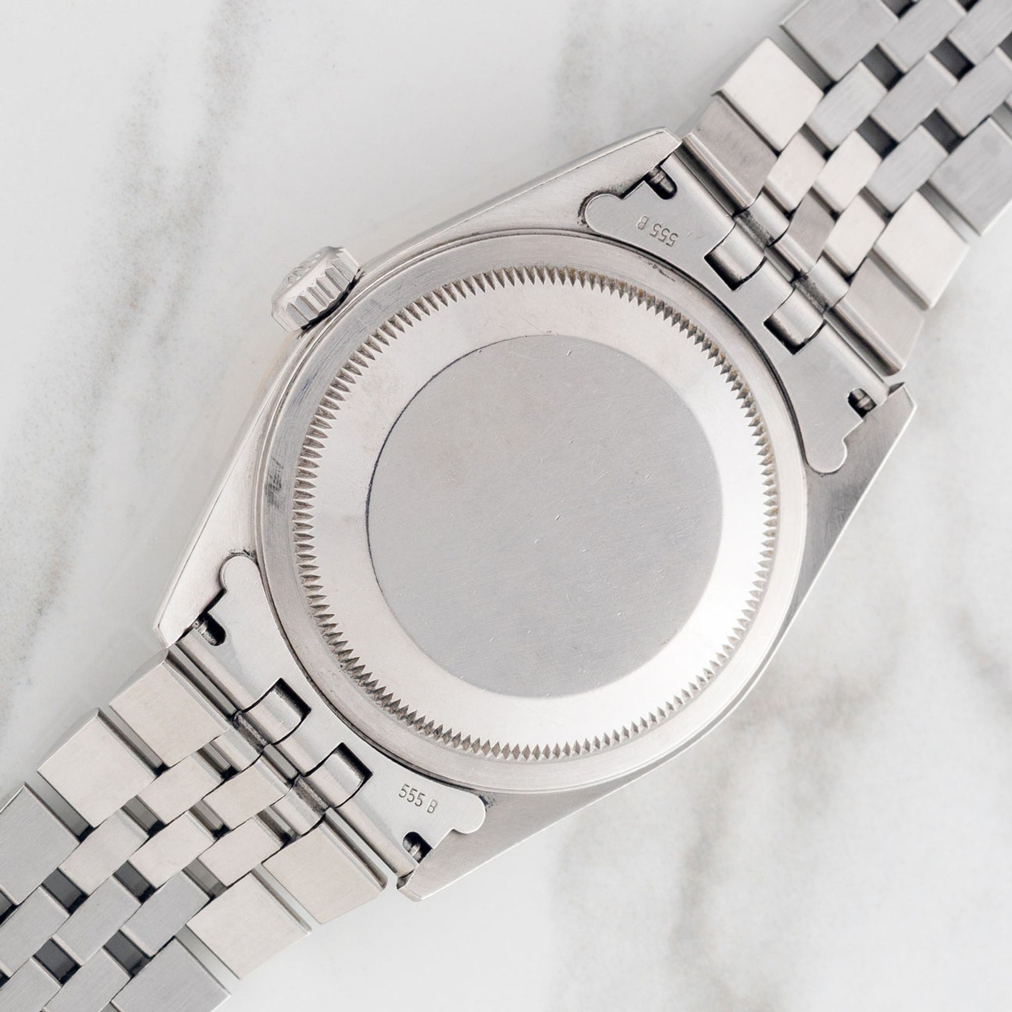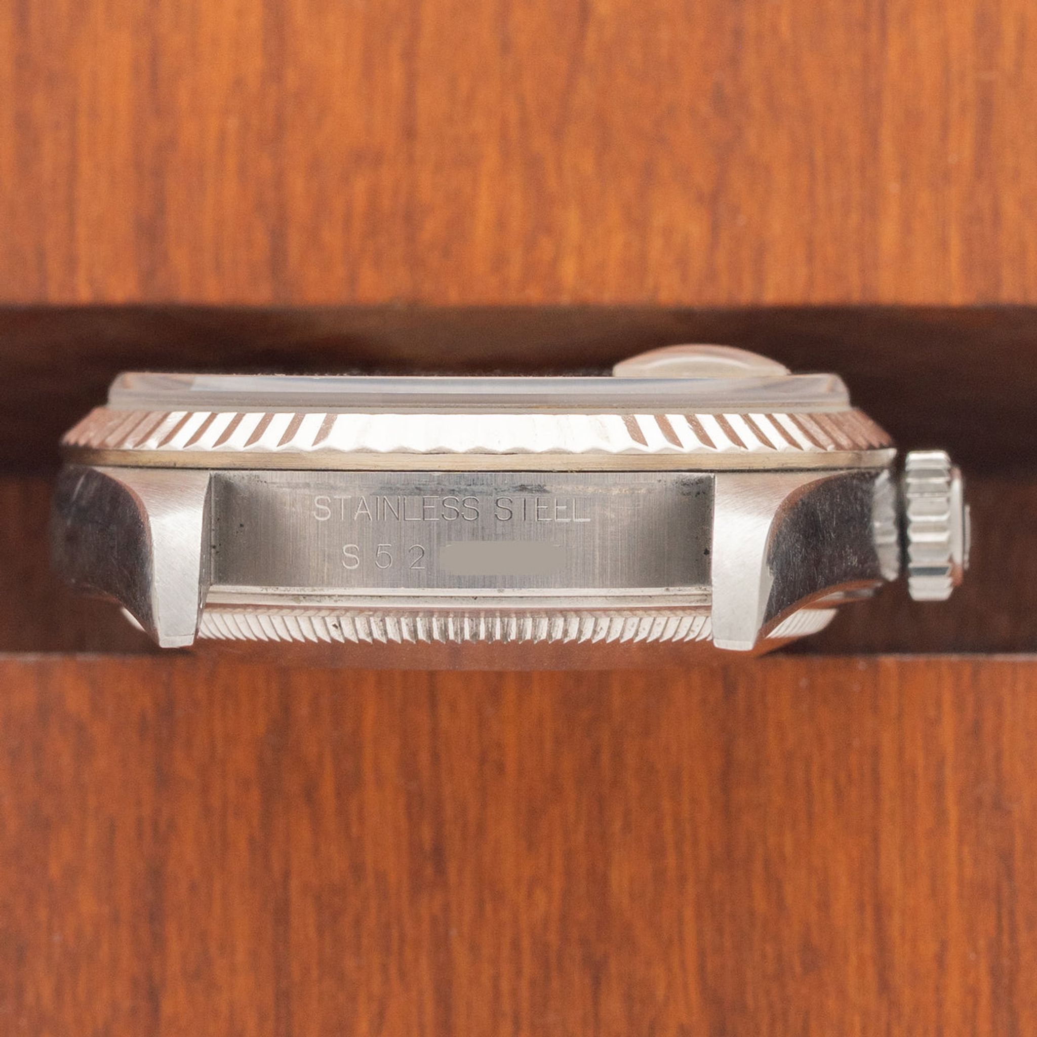 This particular S serial example, circa 1993 falls in the 5 digit reference era which benefits from the addition of a quickset date function. It boasts a spectacular "linen" dial that has "tropicalized" to a warm and perfectly even "cream" color adding both texture and warmth. Overall, this piece remains in fantastic vintage condition with a thick case, displaying sharp edges. The bracelet has medium stretch but frankly feels silky and comfortable as a result and will fit an approximate 7.25 inch wrist. A steel/white gold fluted Datejust with Jubilee bracelet is arguably the most classic and dynamic iteration of the model and its hard not to love the aging process of this dial which brings it to a cut above.