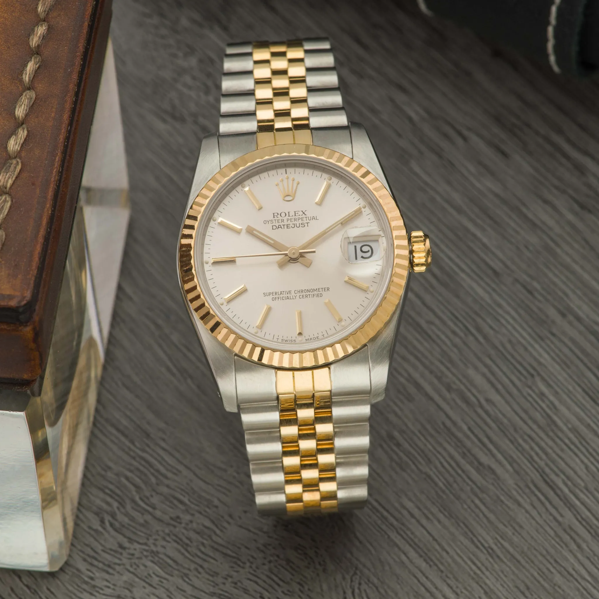 The probably most popular configuration of a Ladies Datejust is the two tone version with fluted bezel and Jubilee bracelet. Exactly this version is offered here, this time in the very uncommon 31mm size. The watch is overall in mint condition and showing only very little wear from age. The bracelet is tight and crisp, its not possible to see the 38 years of age for this watch.