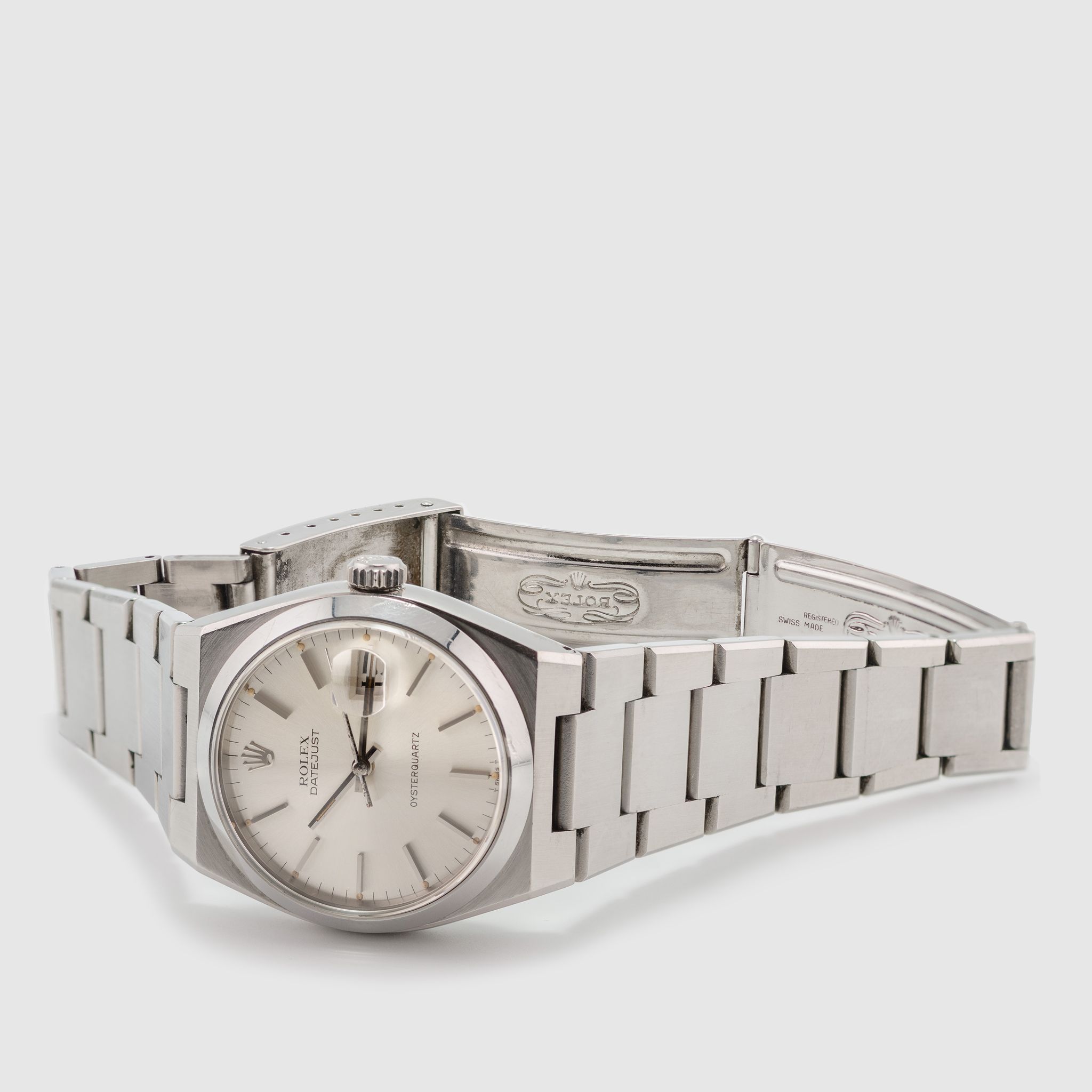 Here is a first Generation example from 1978 which notably features the single line text at 6 o clock only, holding significant rarity. The overall condition of the watch is strong with a nicely beveled case and sharp edges, clear numbers and the condition we want to see an Oysterquartz in. For a watch with almost 45 years of age it is a stunner and always a conversation piece. Pictures don't do justice.