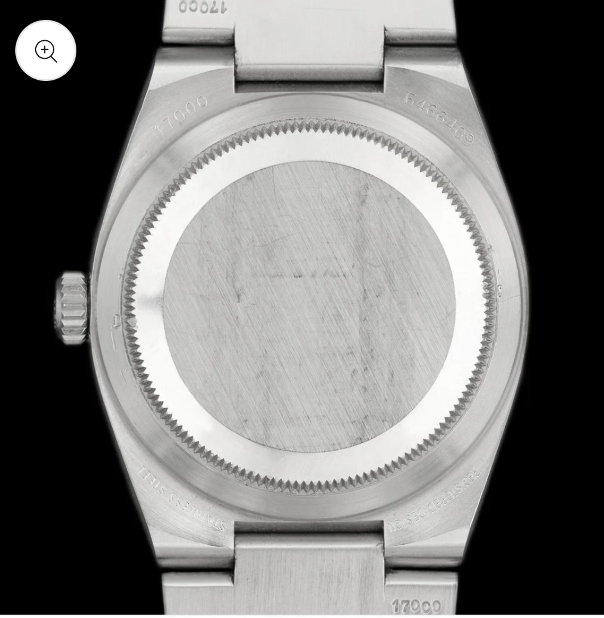 Unlike any other Rolex, the 17000 stands out with its sharp, architectural lines—often compared to the aesthetic of Gérald Genta’s work, though this design was developed internally. The watch features a stainless steel case and bracelet with a satin-brushed finish, giving it a bold, industrial edge. Its clean silver dial and applied baton markers echo the restrained elegance of the era.