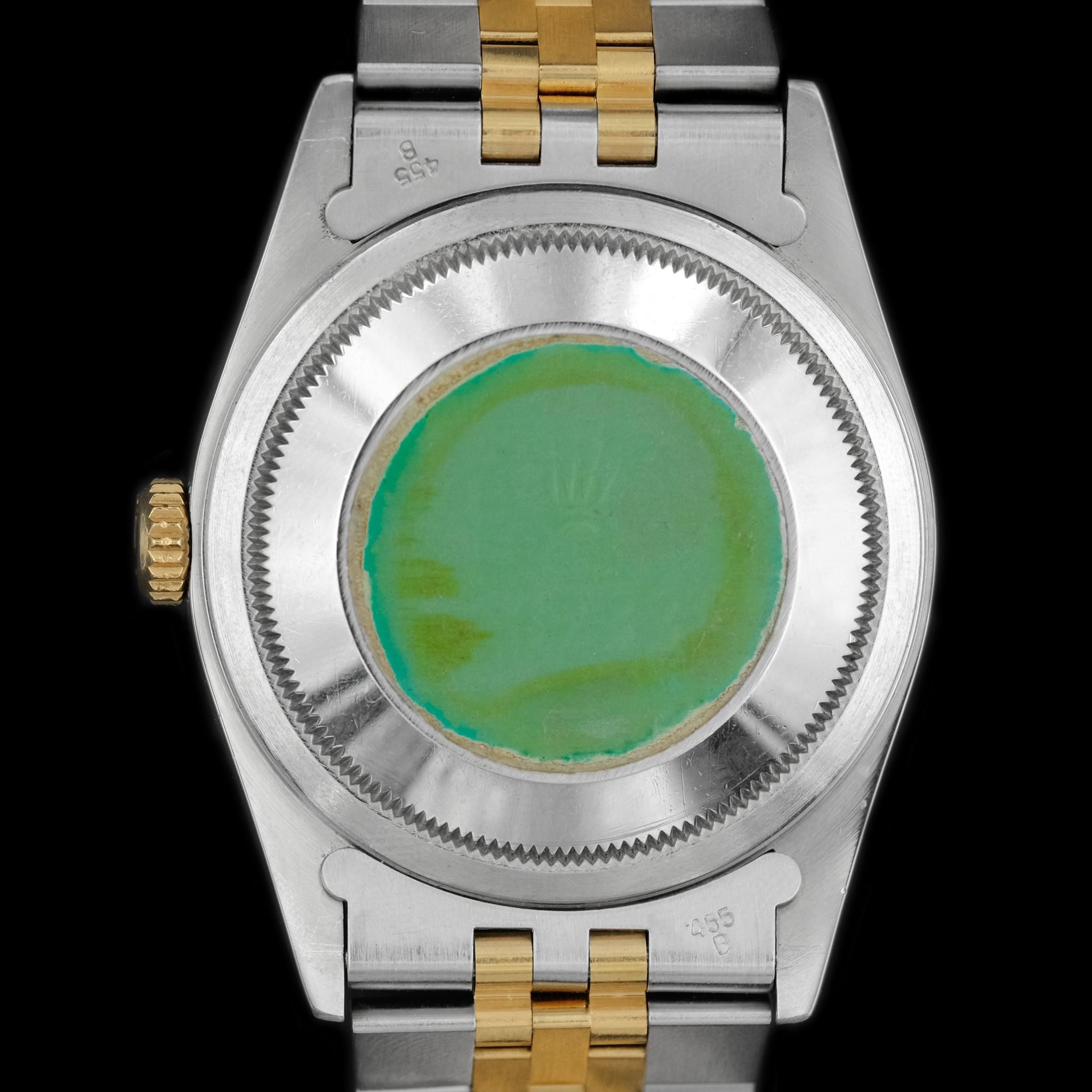 This example goes beyond rare: it remains unpolished, retaining its original factory lines and sharp lugs, with the caseback sticker a detail seldom seen more than three decades later. Even more impressively, it comes as a complete full set: original box, punched papers, both hang tags, both booklets, guaranty papers, calendar, and even the passport holder. It’s a true time capsule and a standout among vintage Datejusts—not just for its condition, but for its untouched authenticity and ultra-rare dial.
