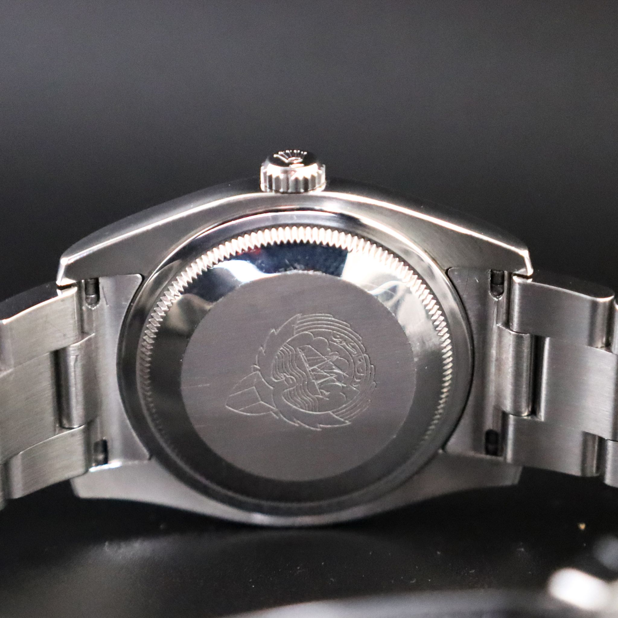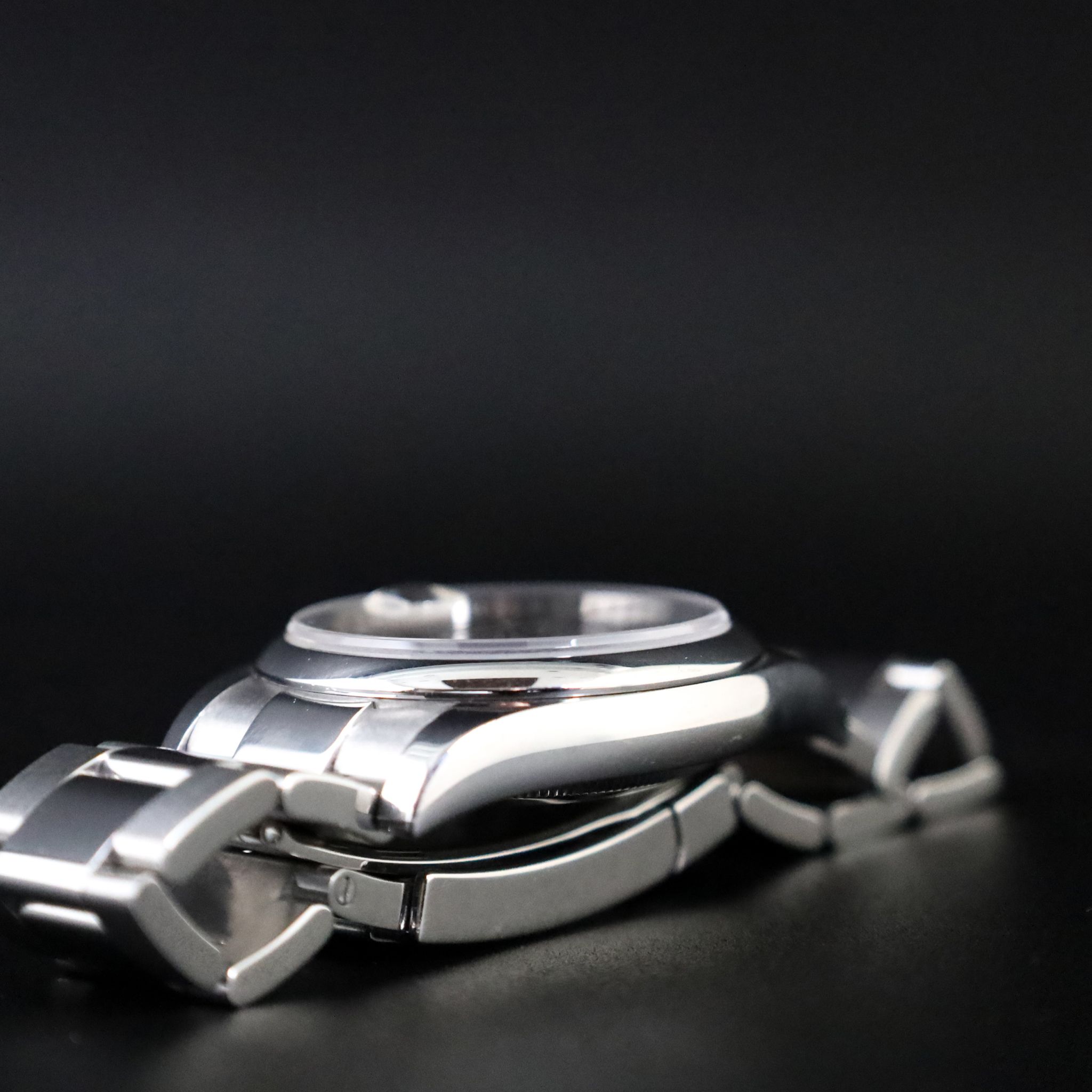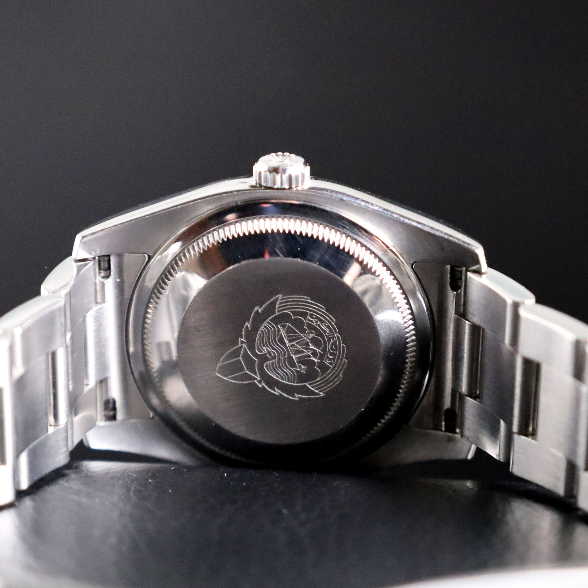 Condition: This example comes as watch only in good pre-owned condition. It is no ordinary 116200 however! This is a very special Datejust that was a special order by the State of Kuwait, supplied by Bucherer in Geneva. The watch also bears an engraving of the emblem of the State of Kuwait on the caseback – what a great find! The watch is a 36mm steel date just with smooth bezel. The watch features a rare no lume black dial with applied Arabic numerals and no lume hands. The watch remains in really outstanding condition and comes on a solid link Oyster bracelet, reference 72200, with solid endlinks (SEL).