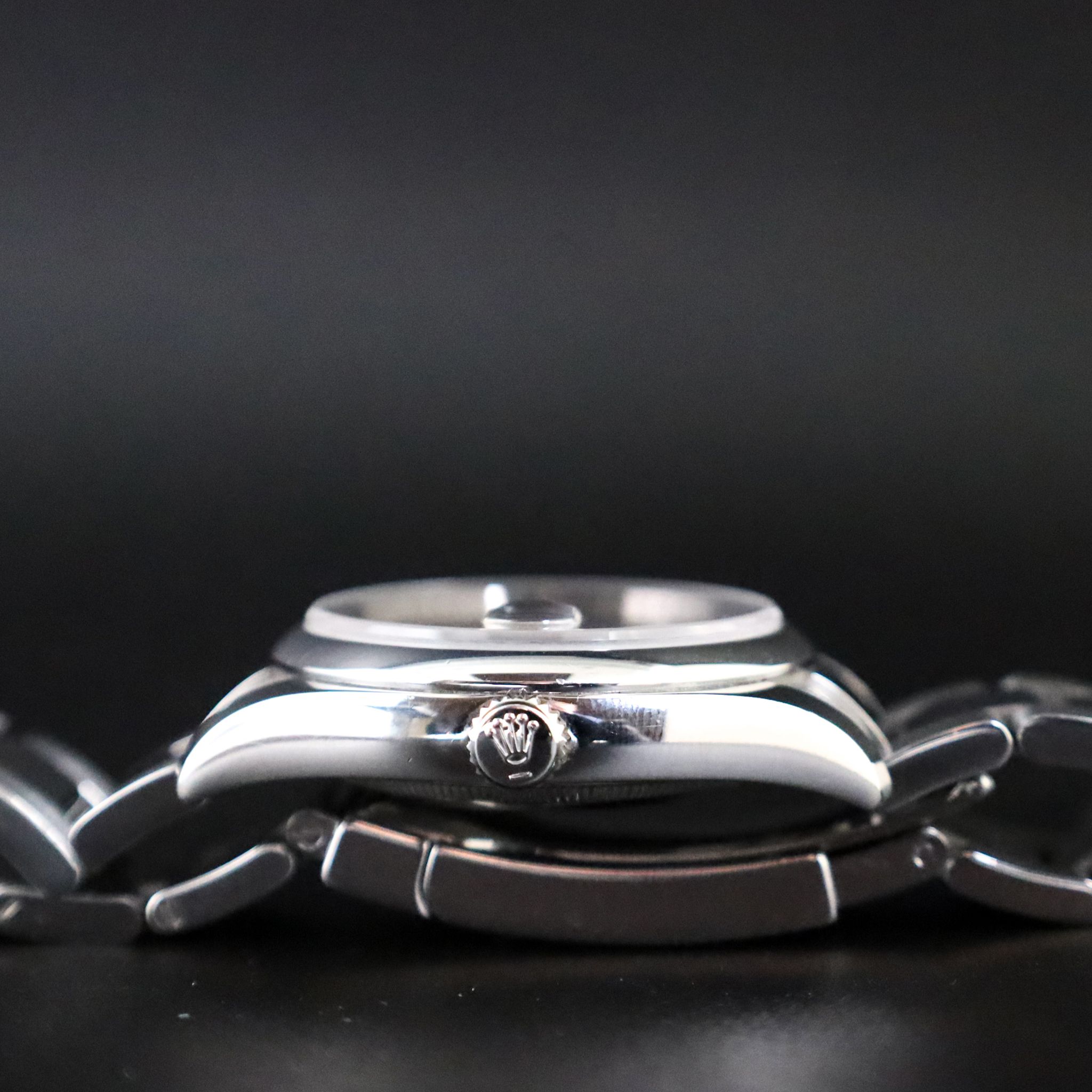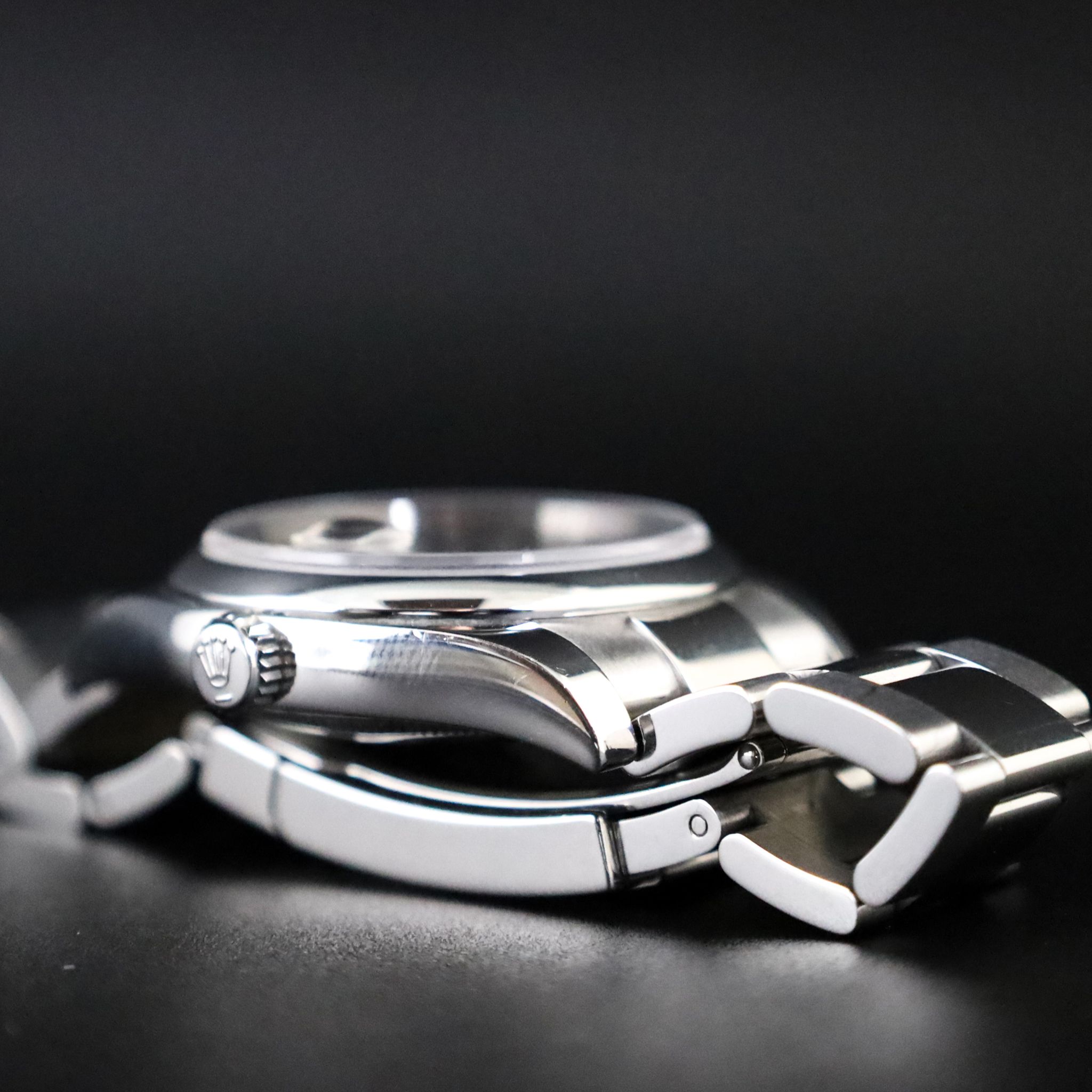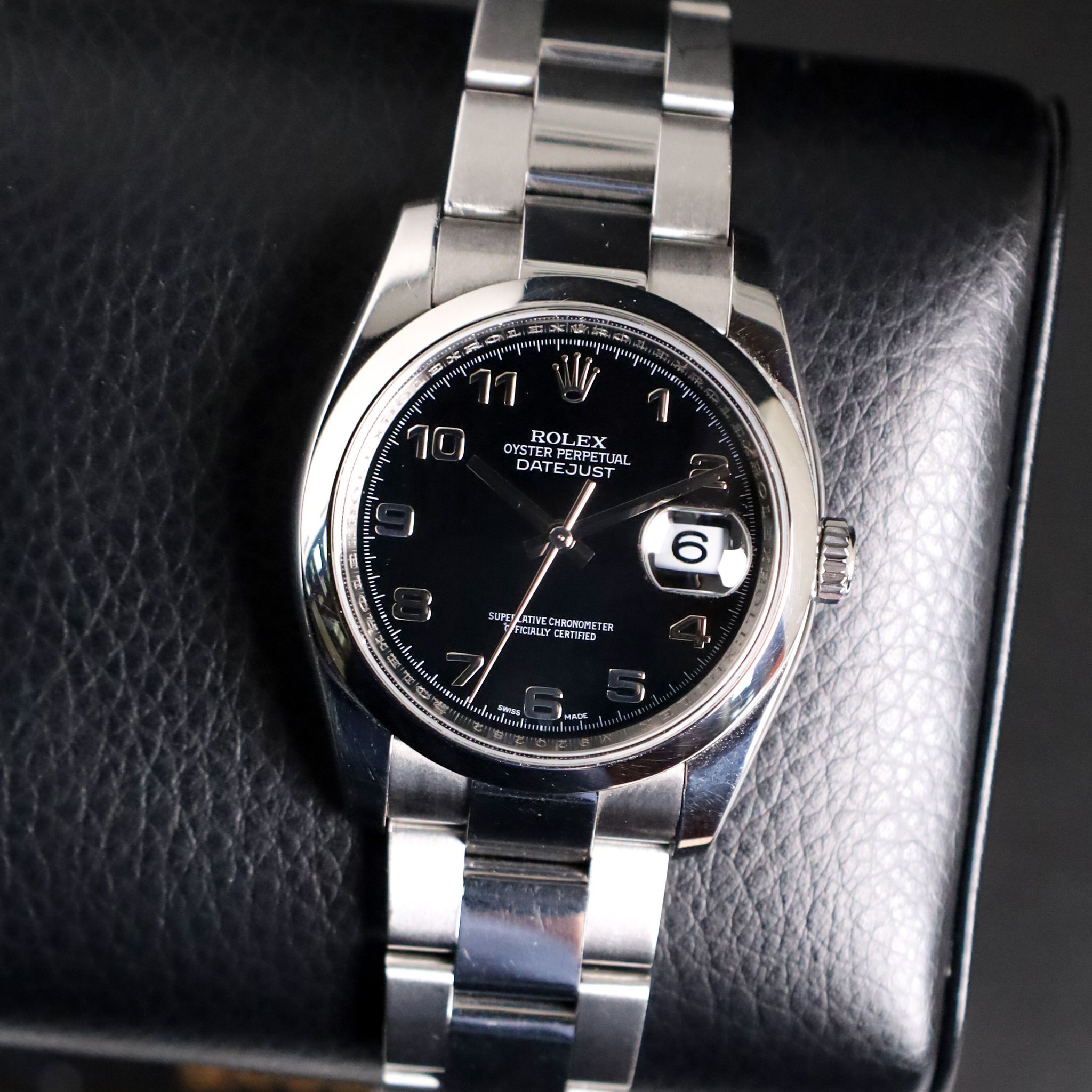 Condition: This example comes as watch only in good pre-owned condition. It is no ordinary 116200 however! This is a very special Datejust that was a special order by the State of Kuwait, supplied by Bucherer in Geneva. The watch also bears an engraving of the emblem of the State of Kuwait on the caseback – what a great find! The watch is a 36mm steel date just with smooth bezel. The watch features a rare no lume black dial with applied Arabic numerals and no lume hands. The watch remains in really outstanding condition and comes on a solid link Oyster bracelet, reference 72200, with solid endlinks (SEL).
