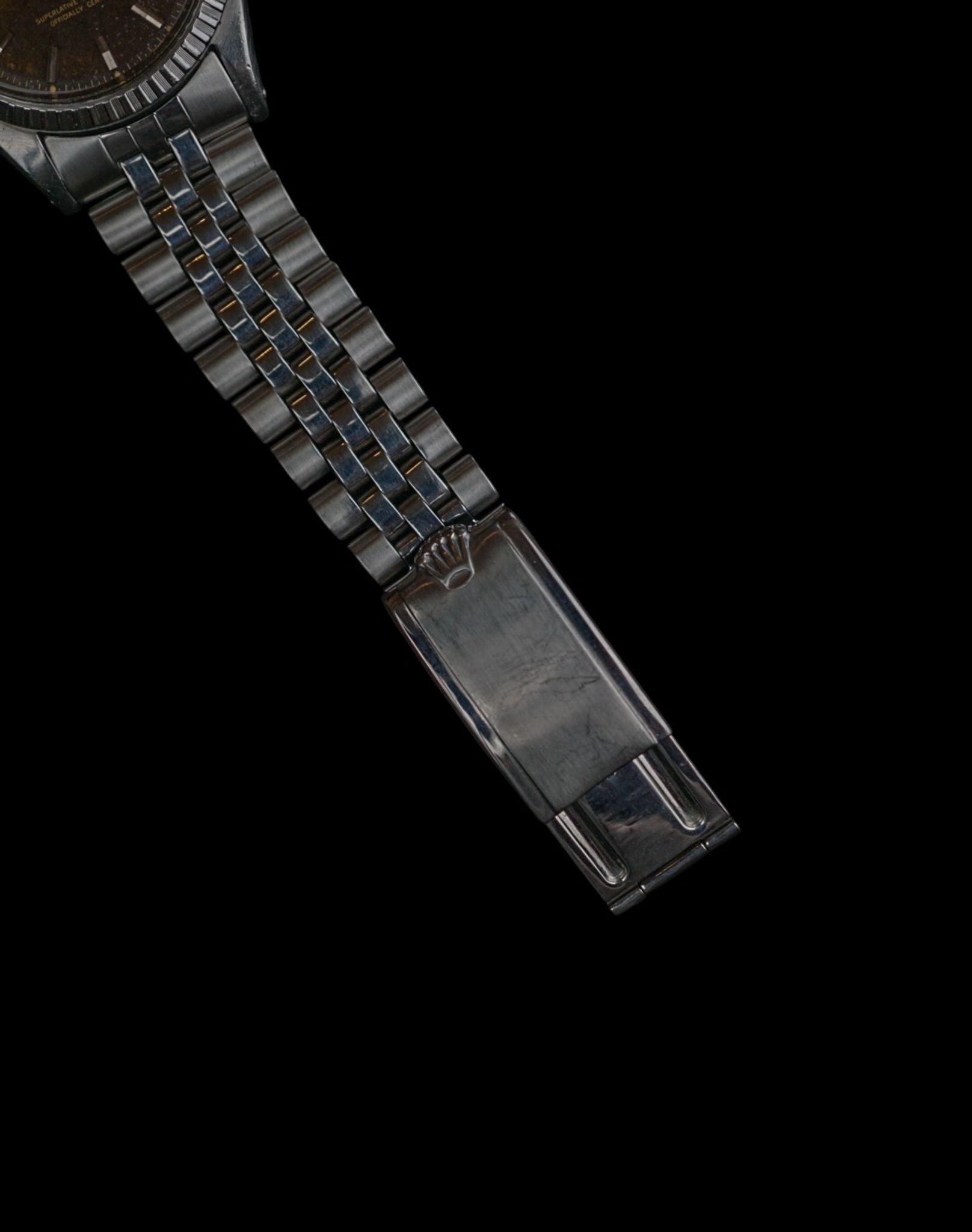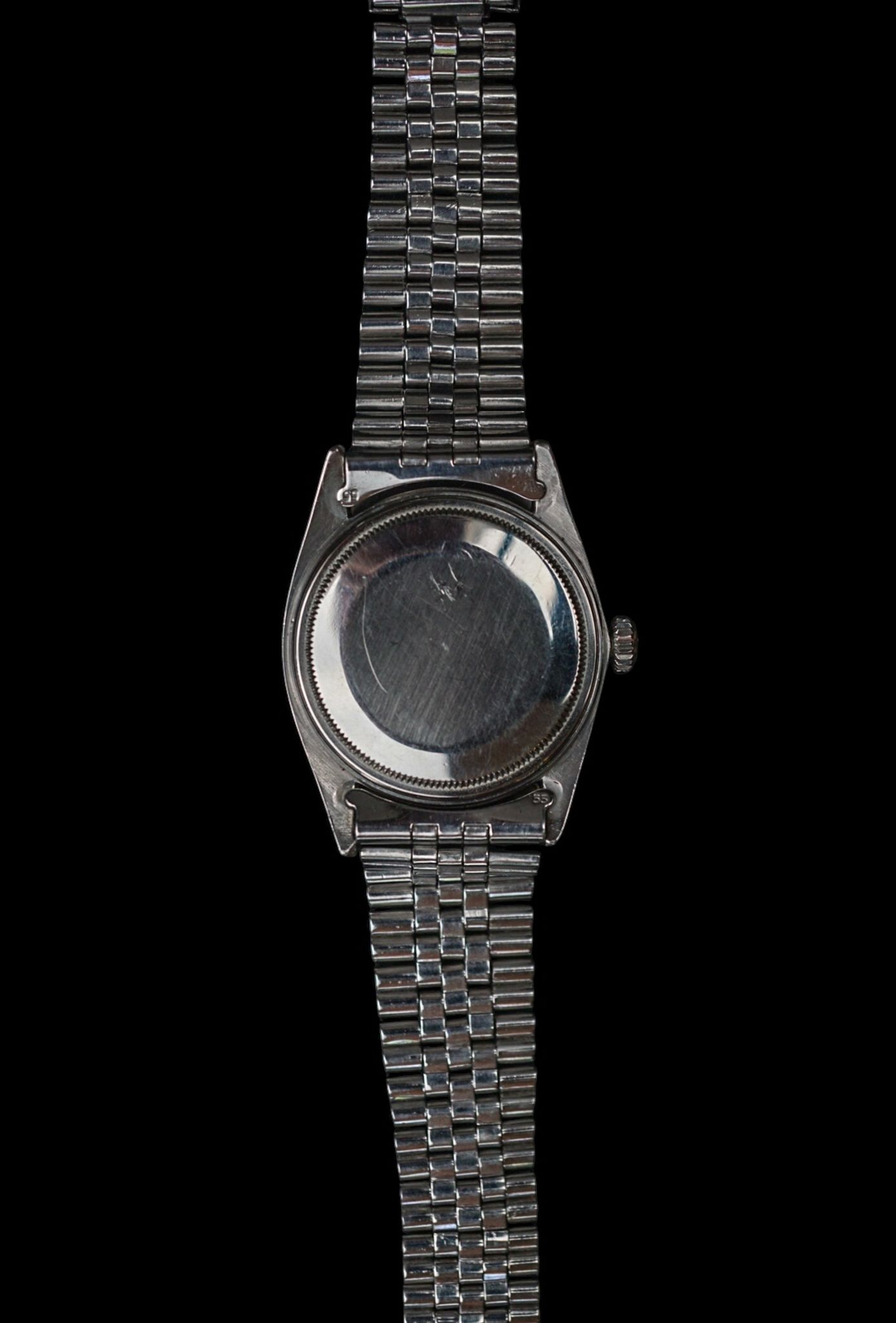 The case has been previously polished but remains strong and retains sharp edges. The bracelet is also in excellent condition and fits up to an 8-inch wrist. The clasp code is dated to 1967.