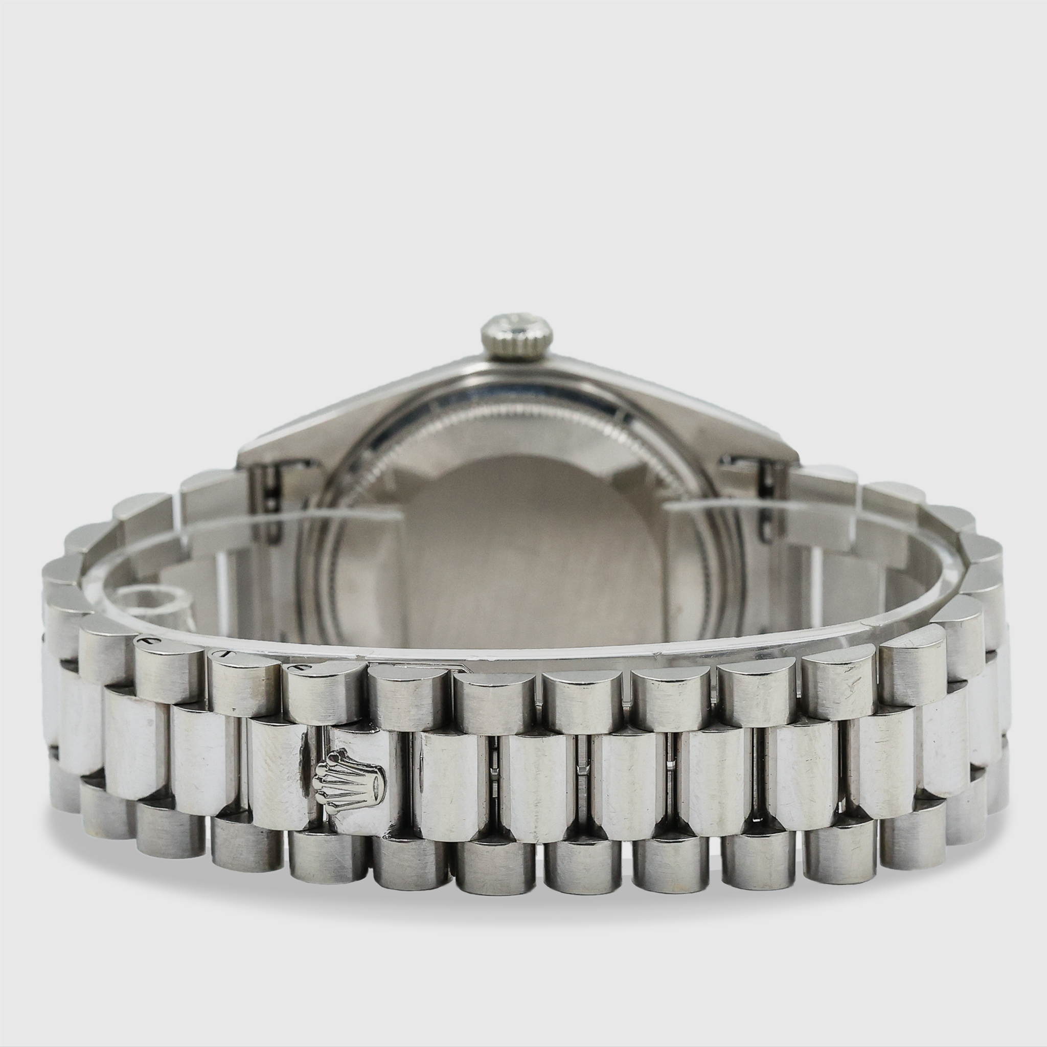 Bracelet: Excellent matching white gold President bracelet showing only minor stretch from age. The links are very sharp and crisp, 23 in total