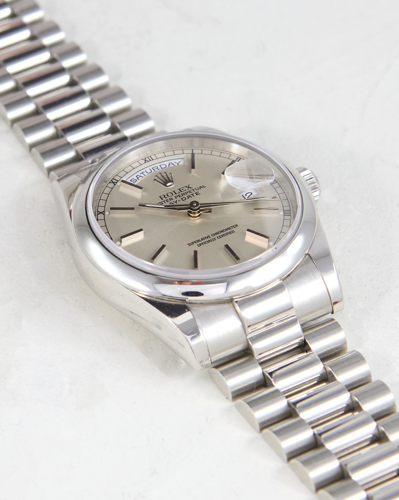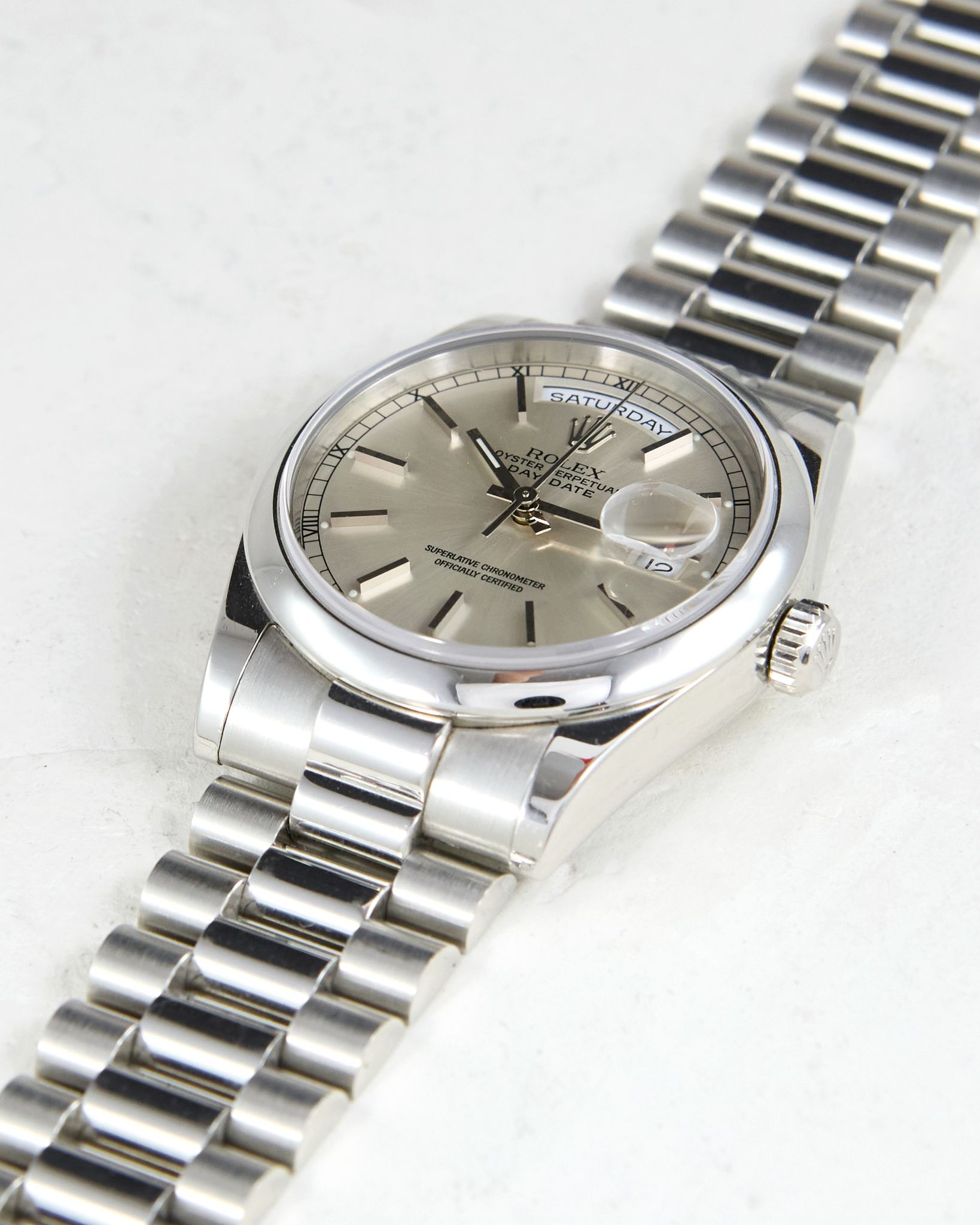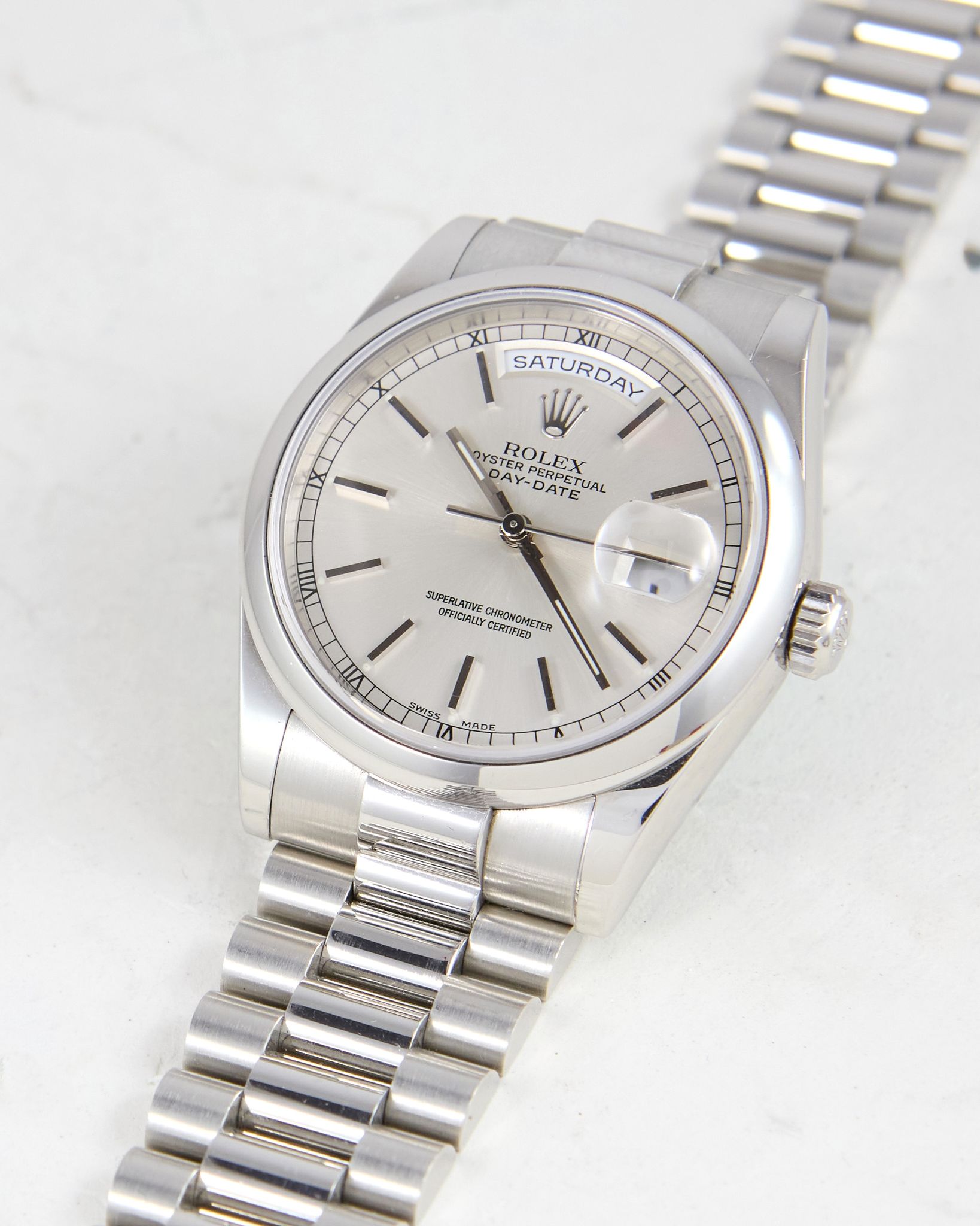 Rolex - Platinum Rolex Day-Date 118206 Smooth Bezel Silver Dial
