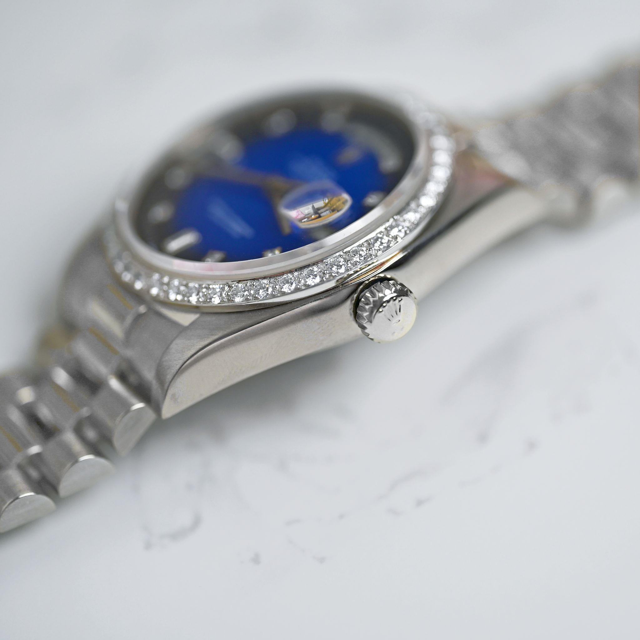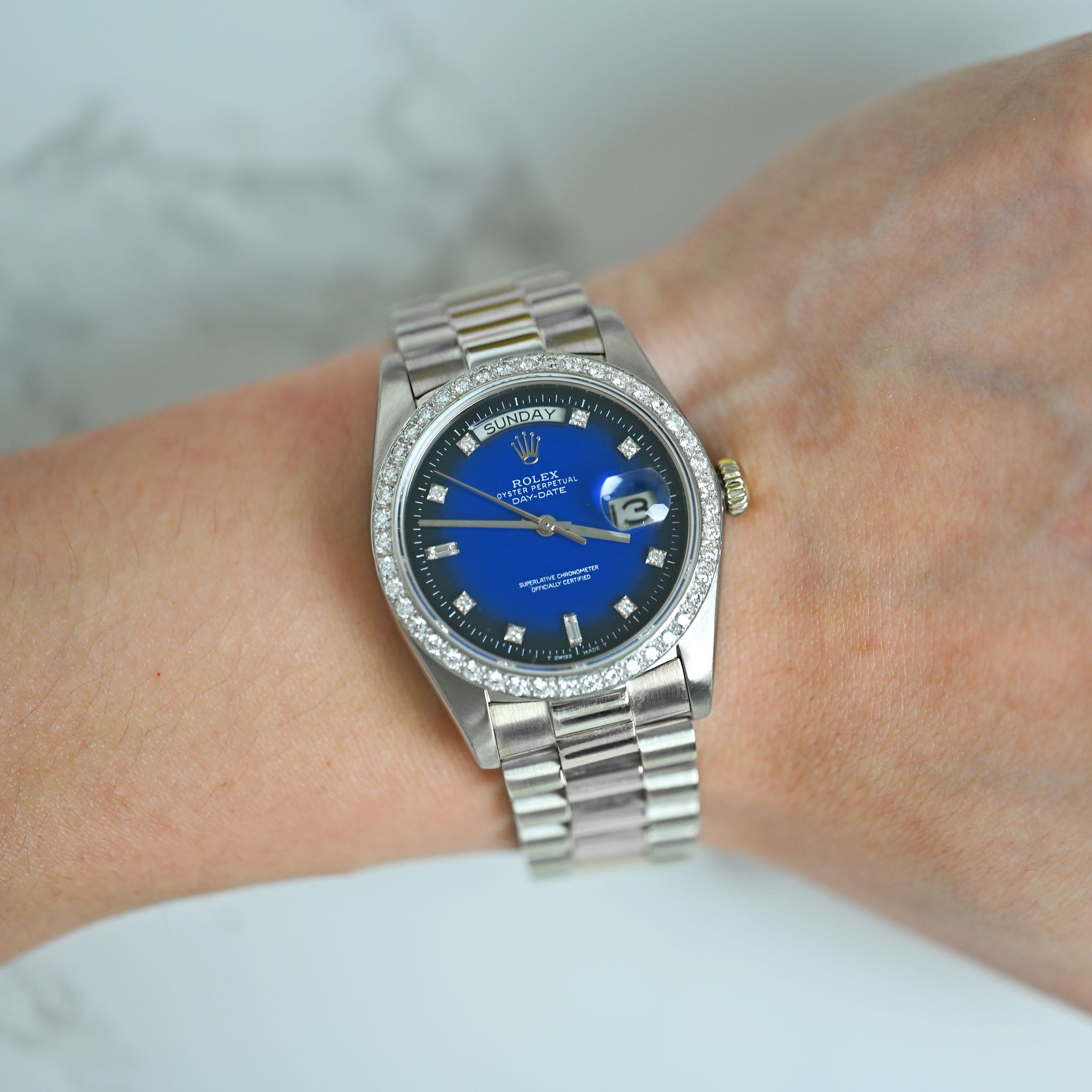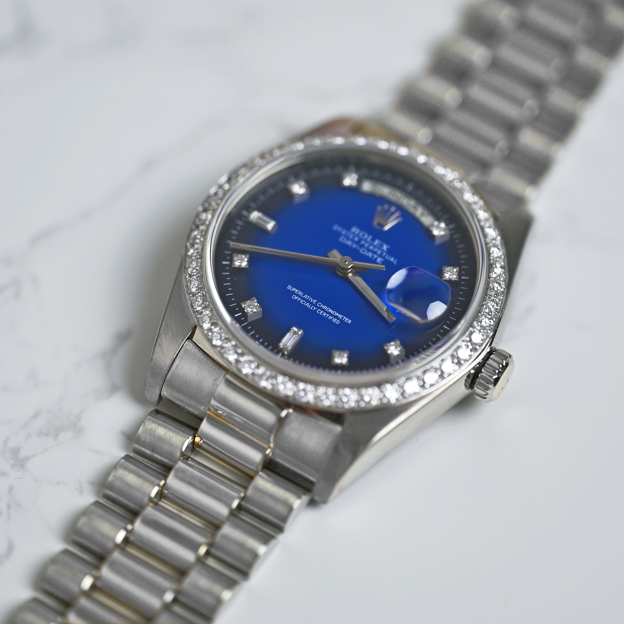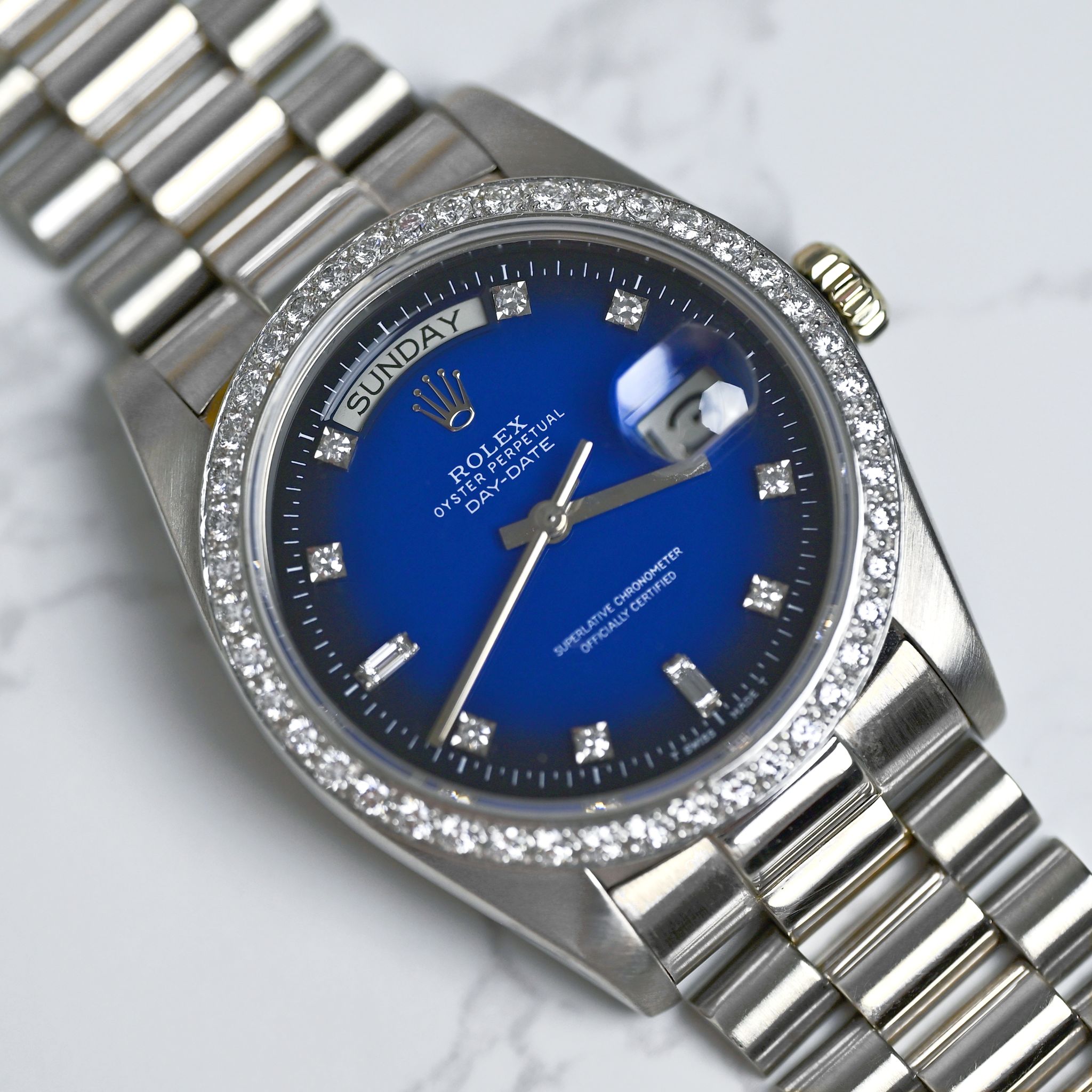 Rolex - Rolex Day-Date 18K White Gold Ombre Vignette Blue Dial Factory Diamonds 18049
