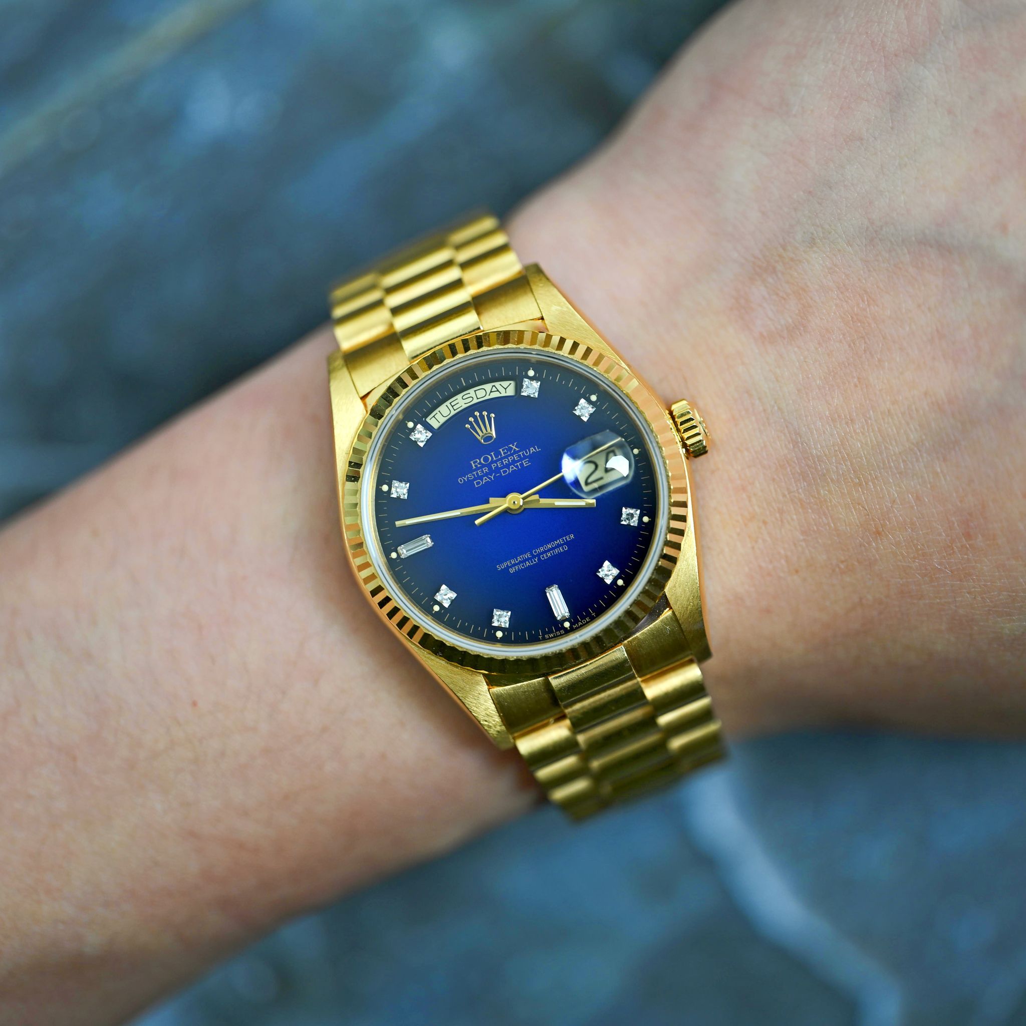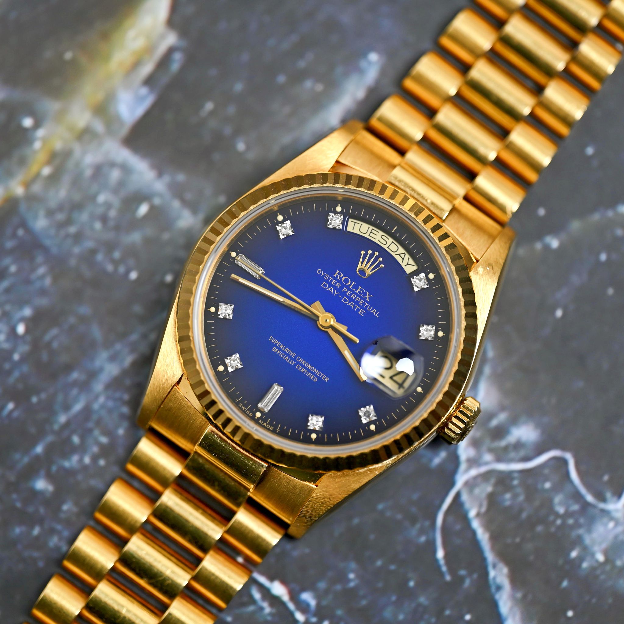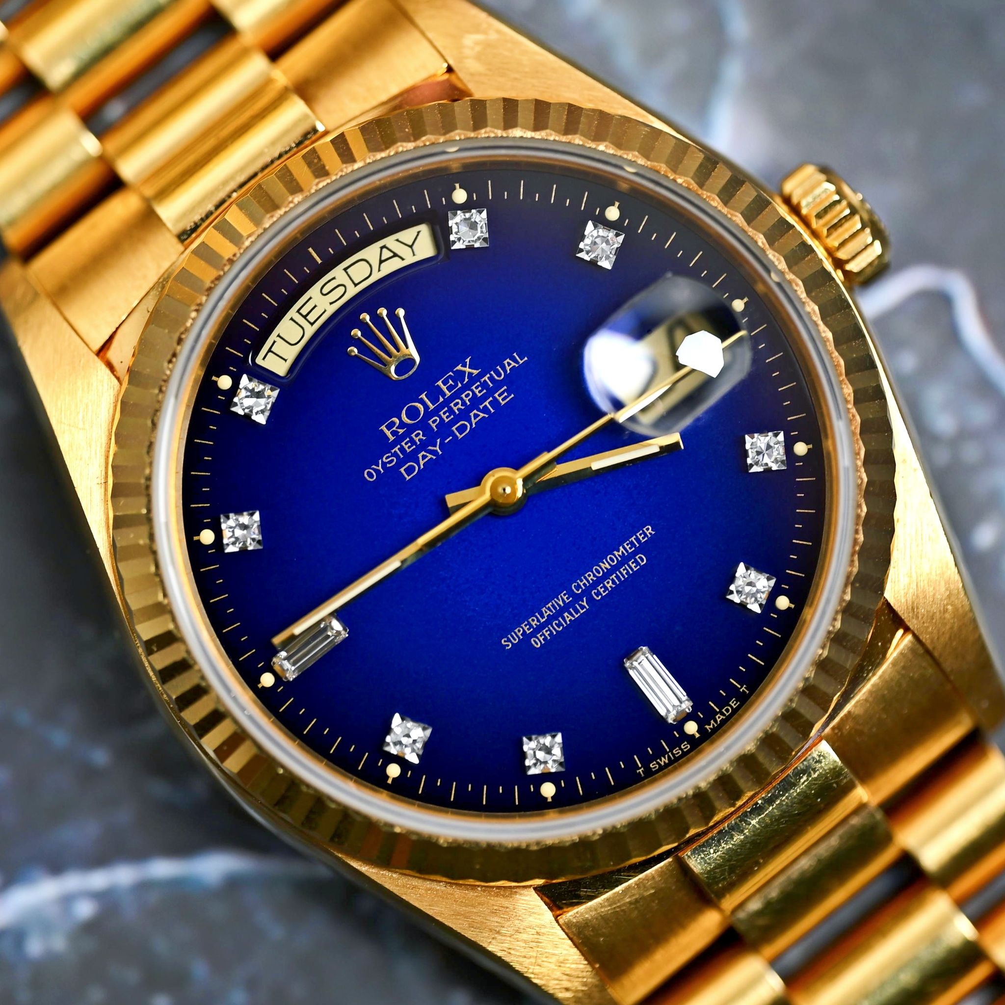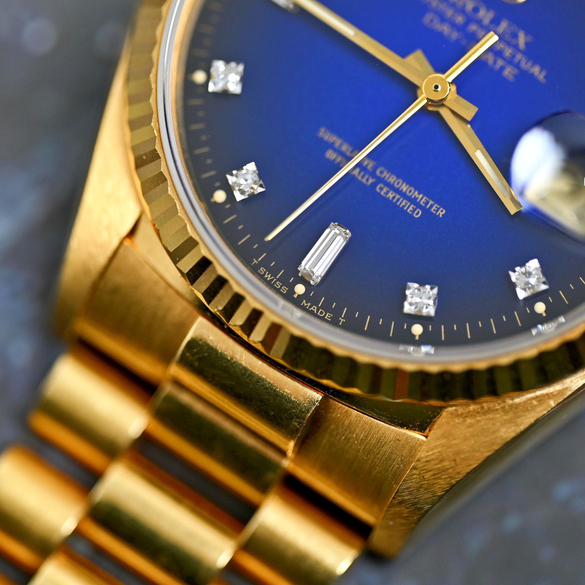 Rolex - Rolex Day-Date 18K YG Ombré Blue Dial w/ Diamond Indexes 18038