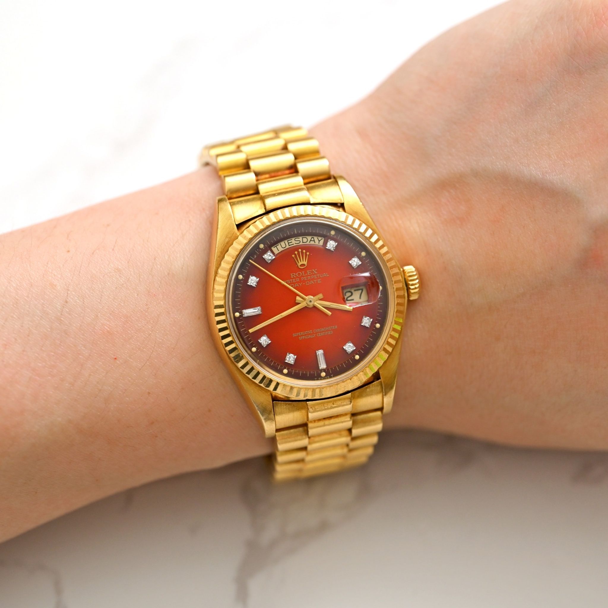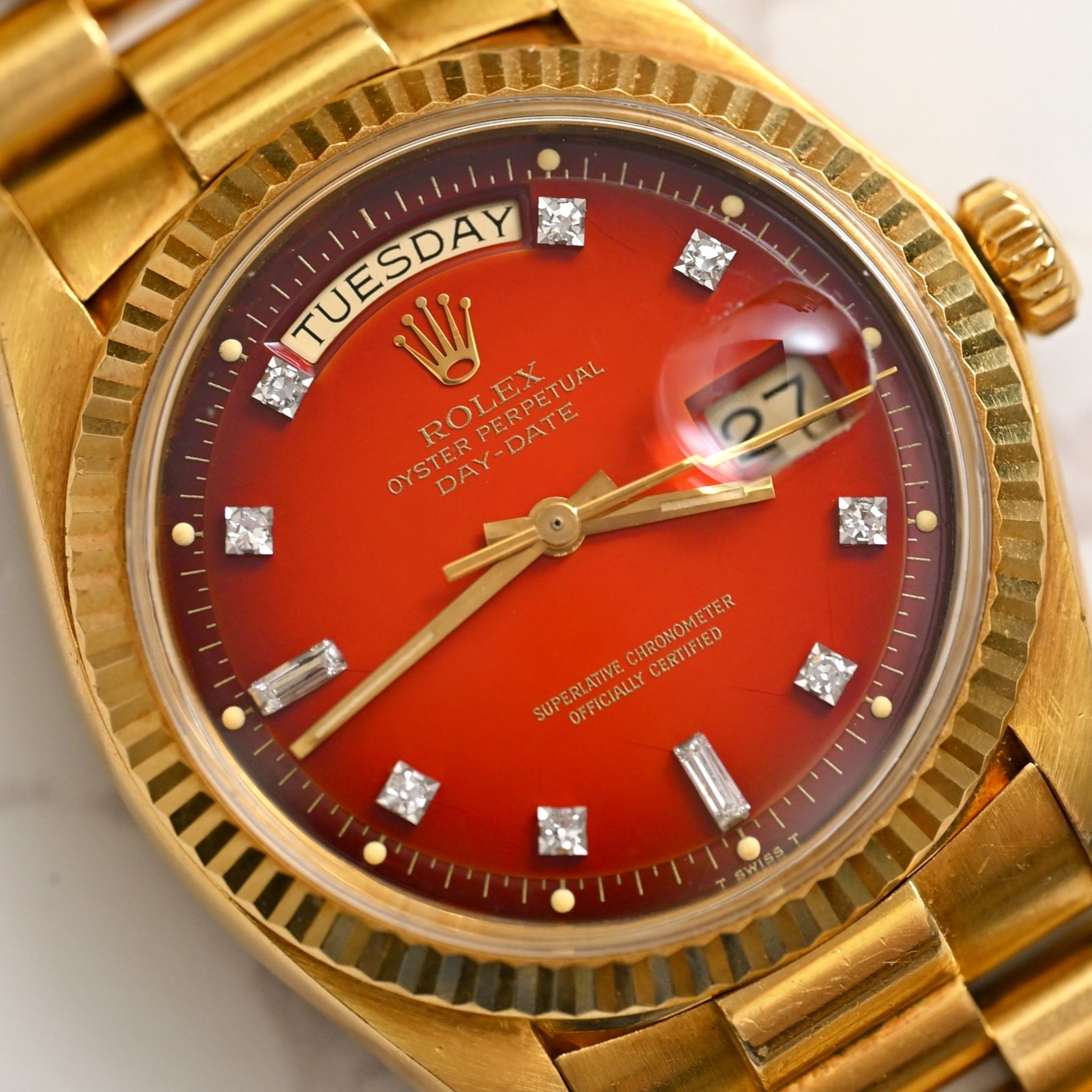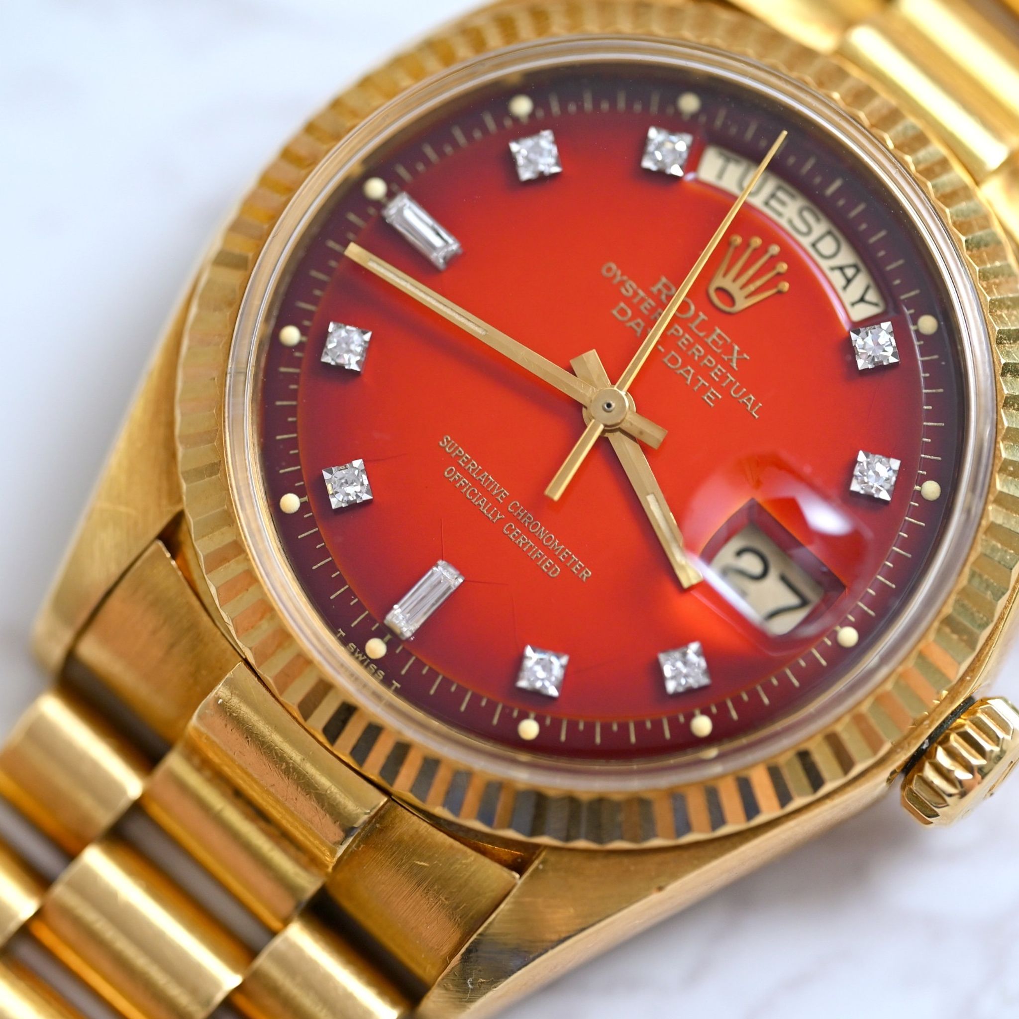 Rolex - Rolex Day-Date 18K YG Ombré Red Dial w/ Diamond Indexes 1803