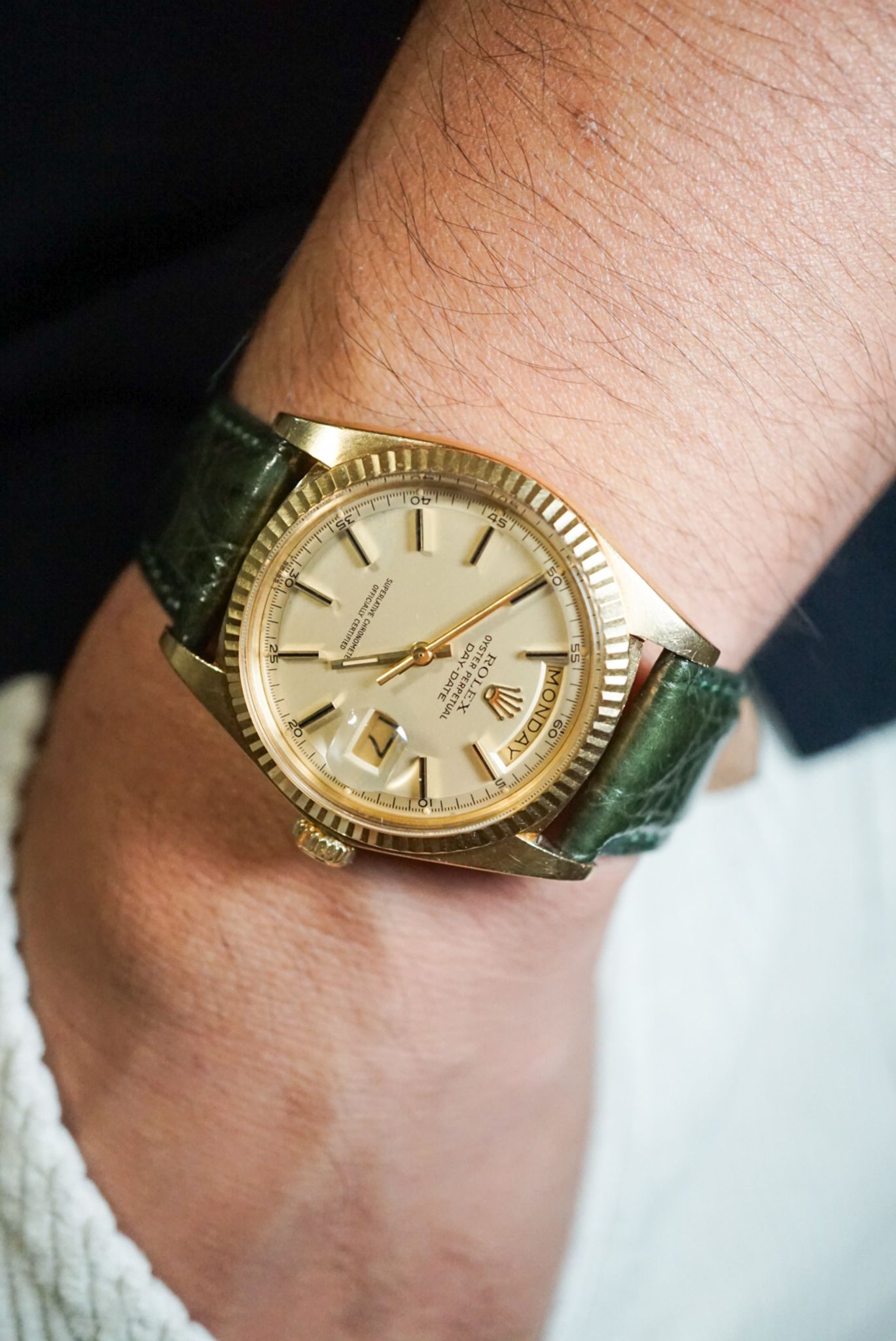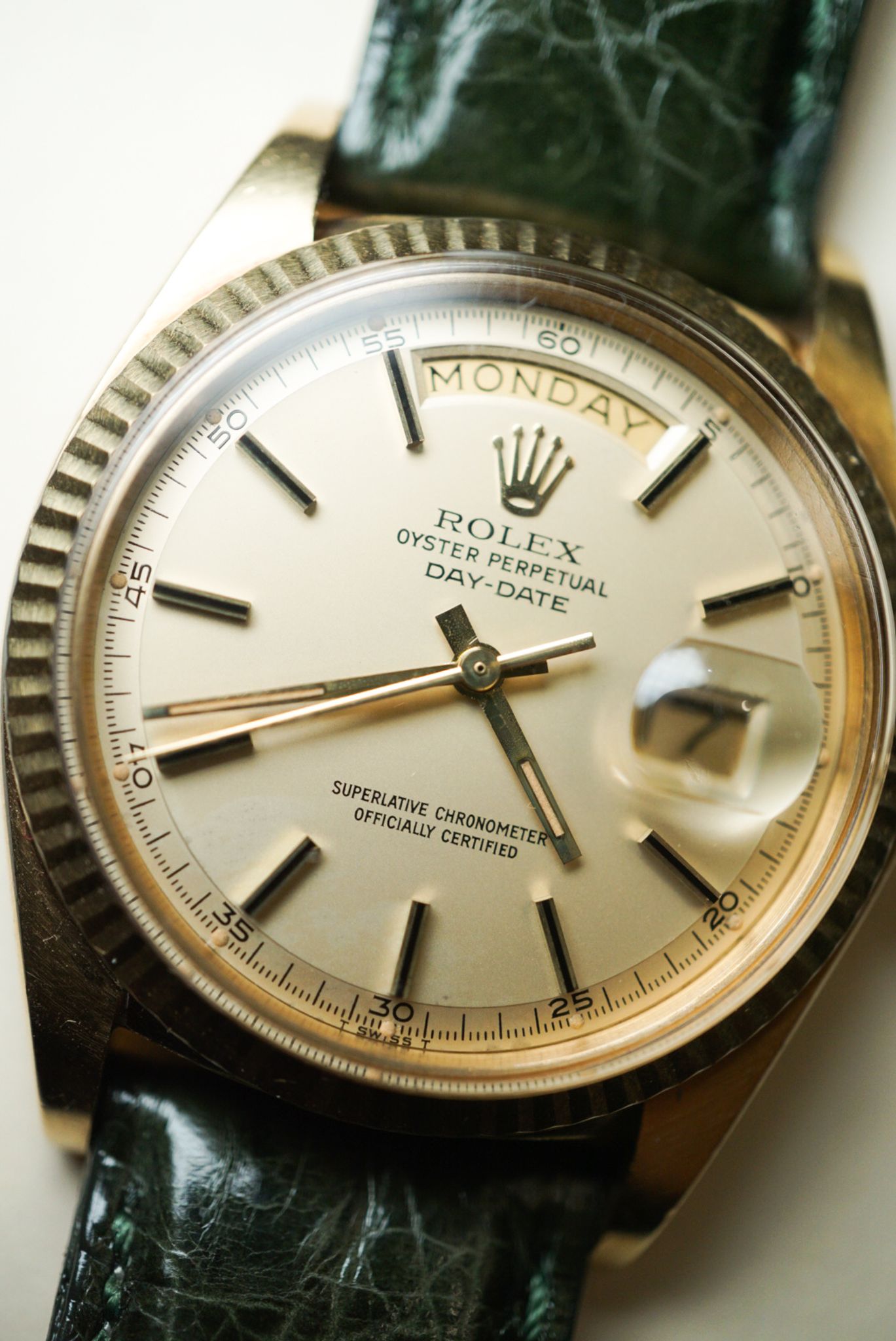 Gorgeous Rolex Day-Date ref. 1803 — The four-digit Day-Date represents the golden era of Rolex design; this example is a perfect example. Featuring the iconic champagne pie-pan dial with its subtle faceted edges, it captures the depth of 4 digit era. Now available!! ✨