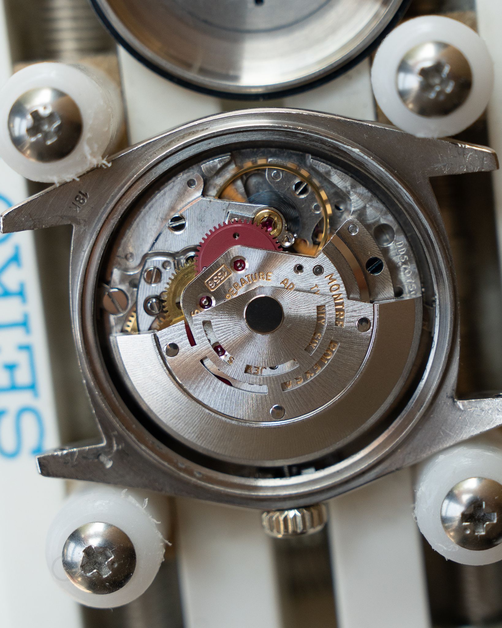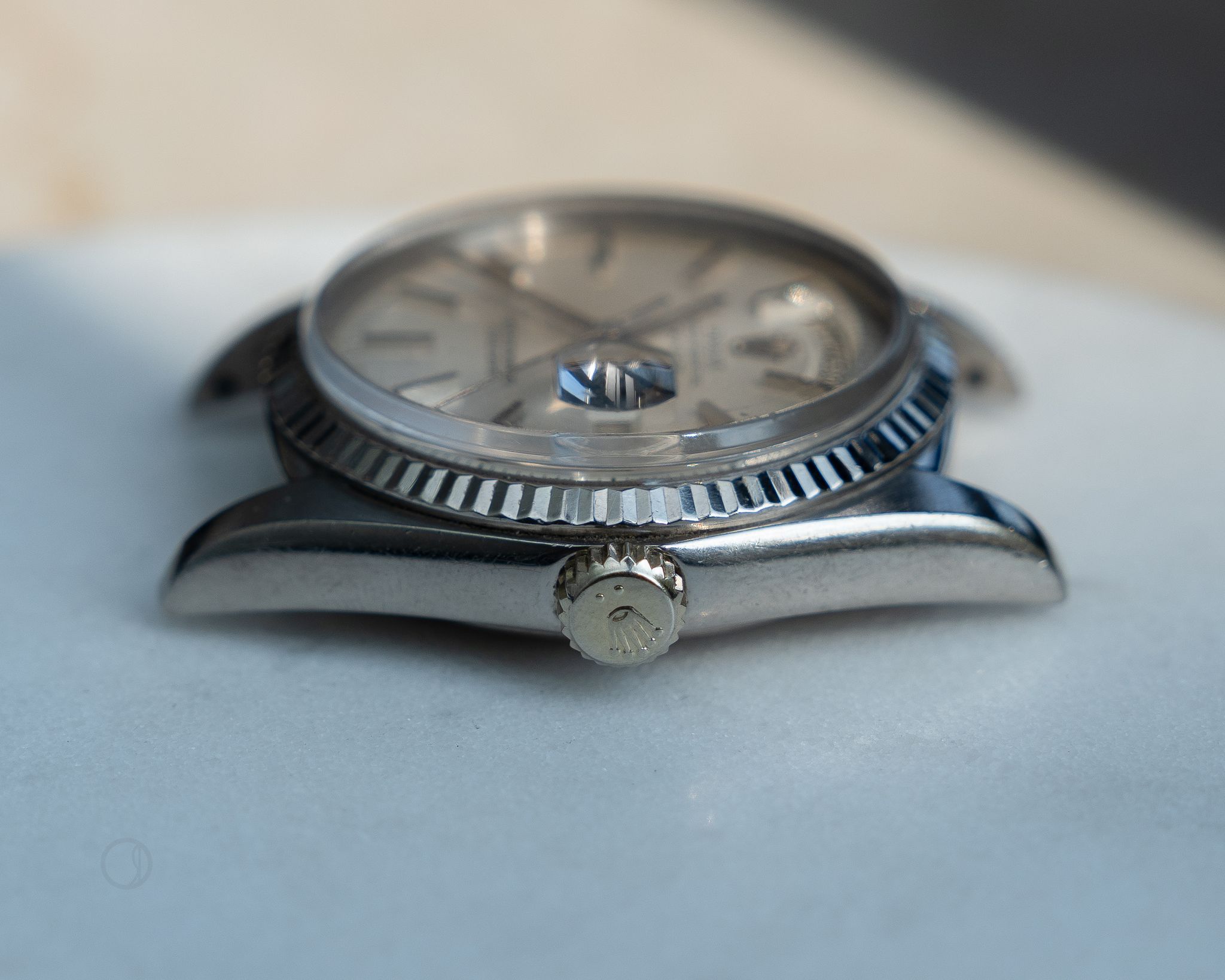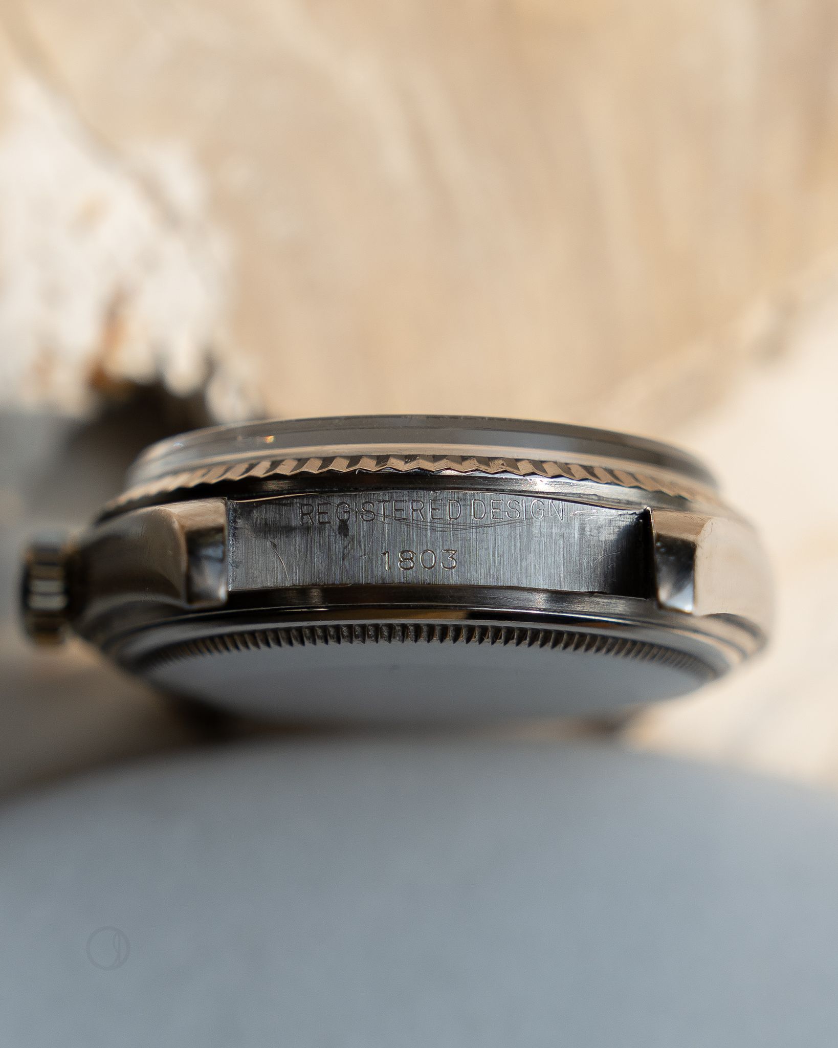 Adding to its appeal, the original fluted white gold bezel shows matching light wear consistent with the case, which itself is very well preserved. While the watch was lightly polished in the past, it still retains thick, sharp lugs and well-defined hallmarks both on the case and inside the caseback. The white gold Rolex crown is also period correct and is in good shape.