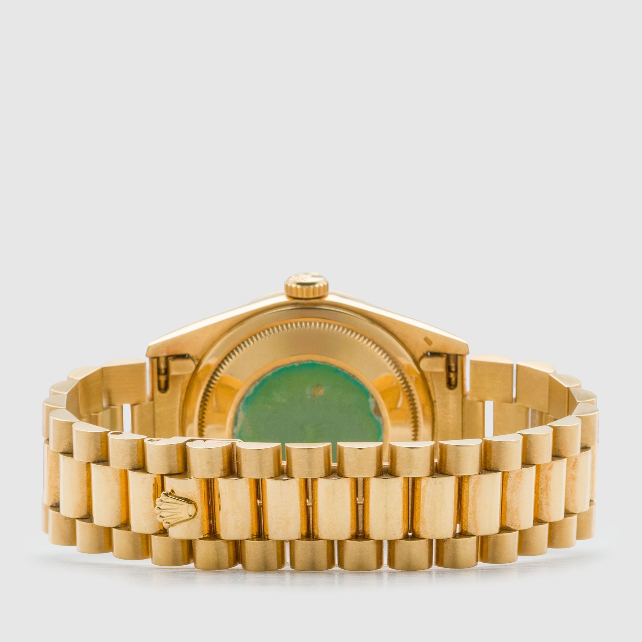 Another point to mention here that, as you may see, the dial has baton hour markers as opposed to Diamond markers. The gem free Stella dials attract more collectors as it lets them appreciate the dial without any distraction. We believe that the number of Stella dials set with diamonds is much higher than with baton indexes – why? Common sense, the Day Date is the most exclusive watch in the Rolex line up and most special dials are
