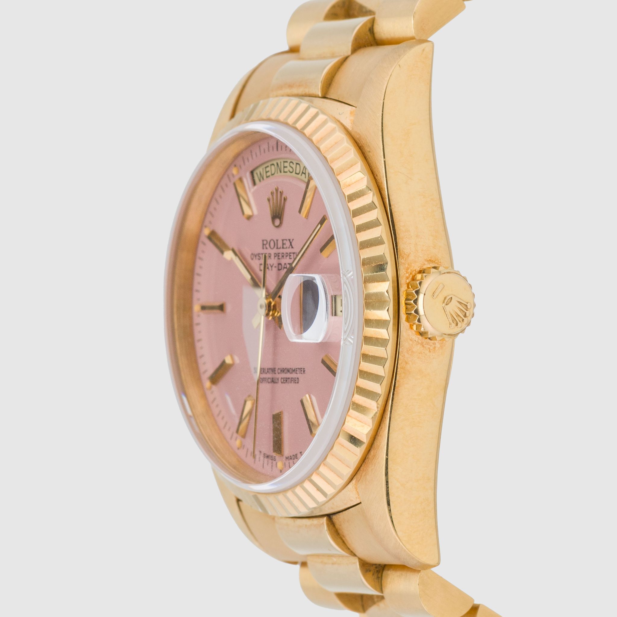 To round up the watch, the reference 18238 stands for a yellow gold Day Date with double quickset movement and fluted bezel. The case remains sharp with well defined lugs and clear numbers. Overall a very sharp, crisp and attractive watch.