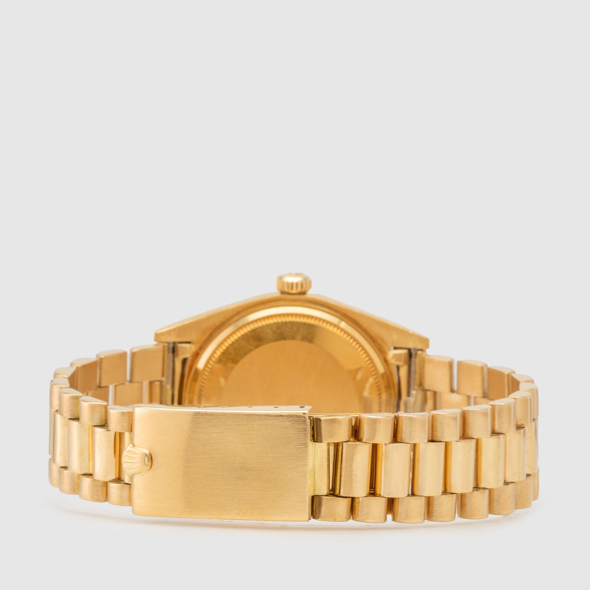 This super cool 'Tangerine' Stella dial Day Date is the perfect Summer watch. The combination of the gold with the Tangerine color makes it pop and the watch cannot go unnoticed. The thick lacquer, that is especially known on the 4 digit references gives the color another boost, it look rich and strong, unlike the later flat Stella dials.