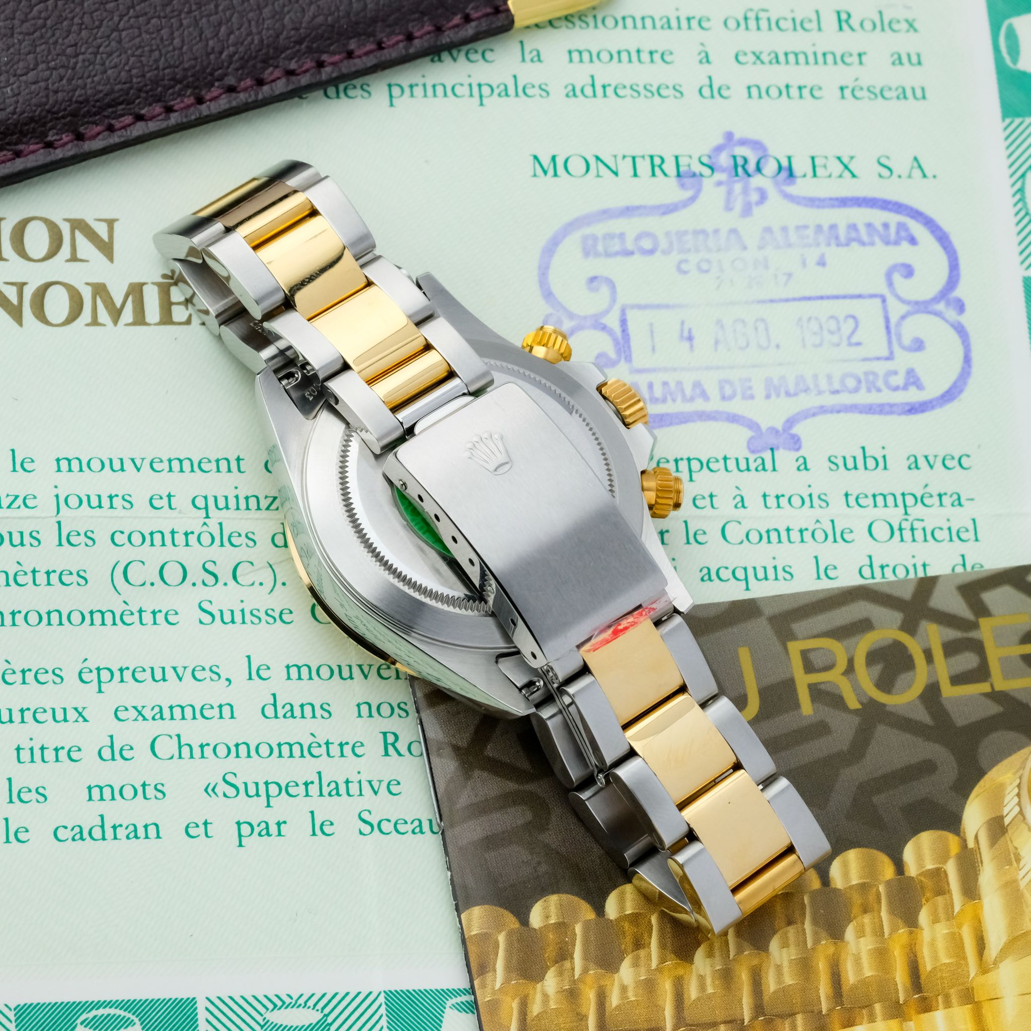 The Rolex Daytona Ref. 16523 marks a pivotal moment in the evolution of the brand’s most iconic chronograph. Produced from the late 1980s through the early 2000s, this reference belongs to the celebrated “Zenith era,” powered by the legendary El Primero-based Rolex Caliber 4030.