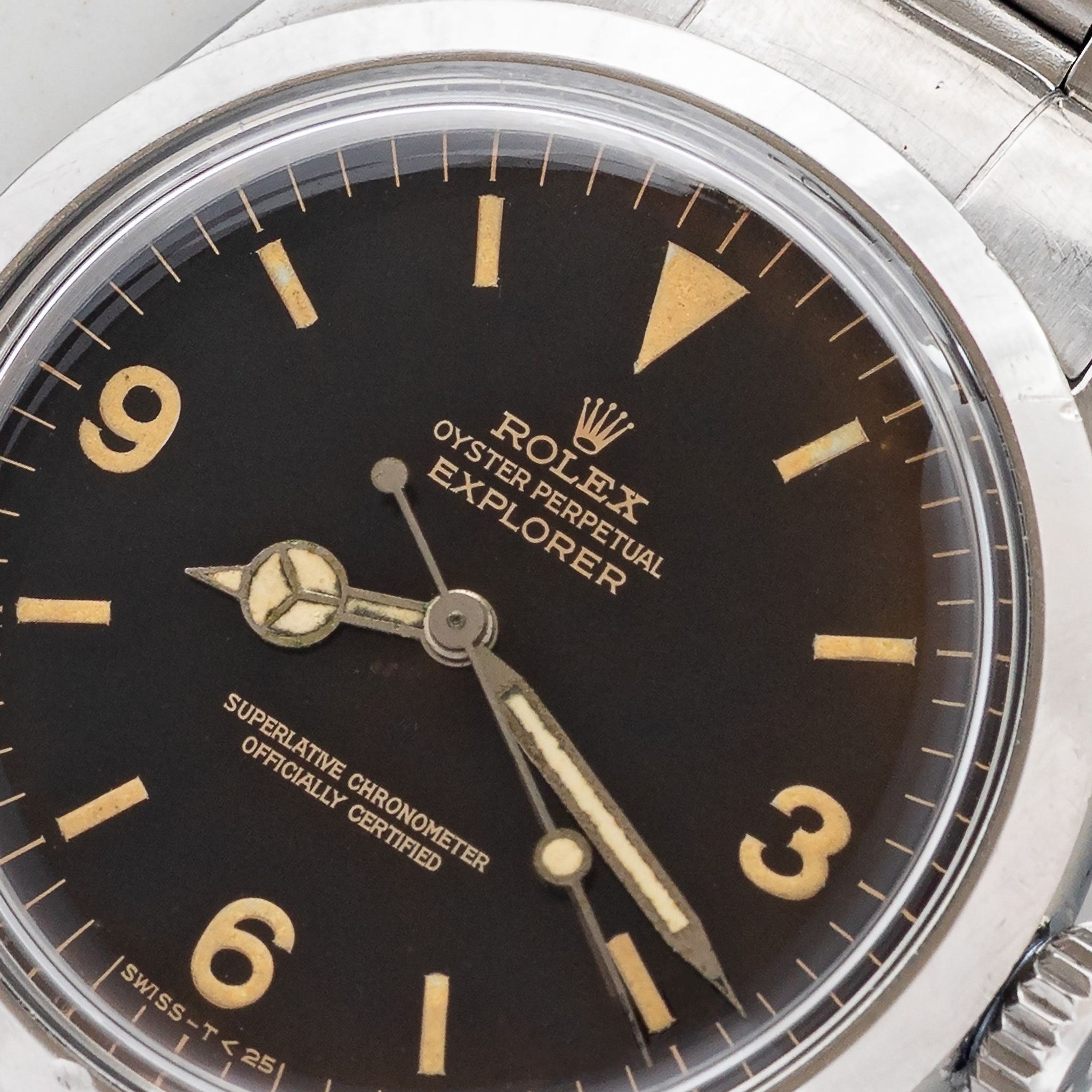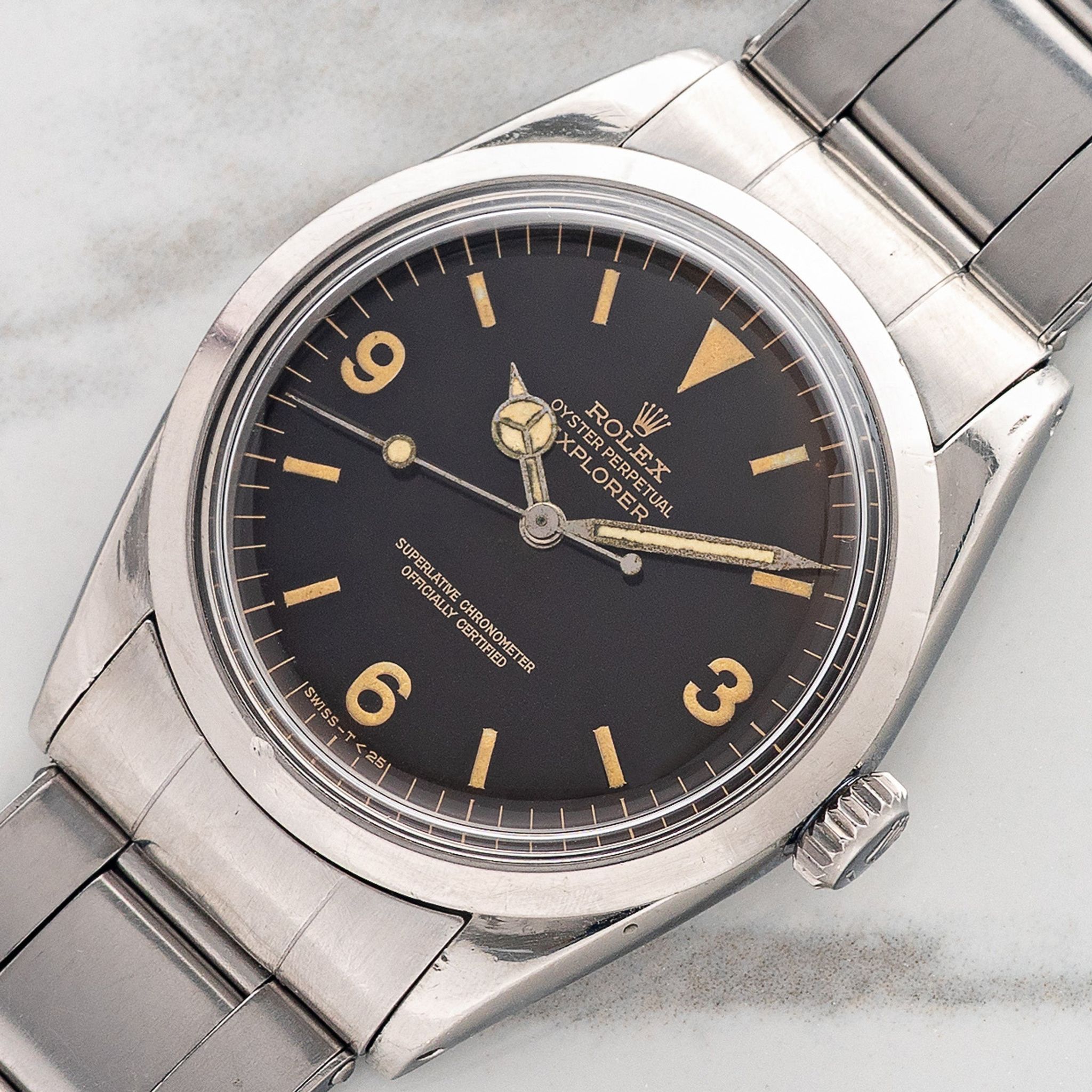 The Rolex Explorer was first introduced in 1953 and is notable for its association with adventure. The design emphasizes durability, reliability, and legibility in extreme conditions. It features a beautifully simple and balanced dial, luminous hour markers, and a robust stainless steel case. The watch is also equipped with Rolex's patented Oyster case technology, which provides exceptional water resistance and protection from dust. The Explorer has been worn on notable expeditions and adventures and has become a symbol of Rolex's commitment to quality and reliability in harsh environments, and has earned a top spot in the list of Rolex's iconic models. The ref. 1016 was the longest running in the model line ('60-'89) and is coveted by collectors today for its pure design. Of all vintage Rolex, it might just be their most beautiful no-frills creation.