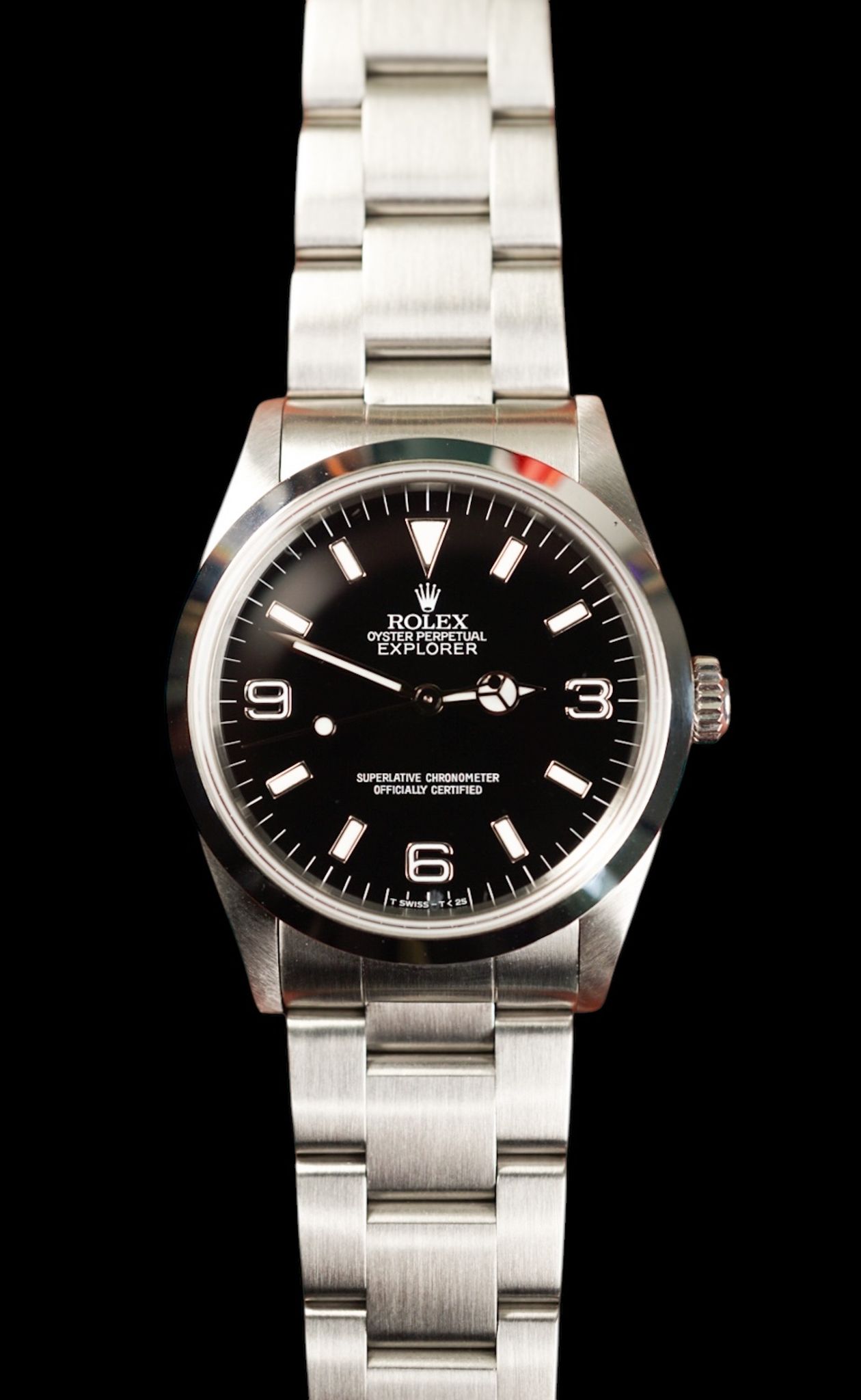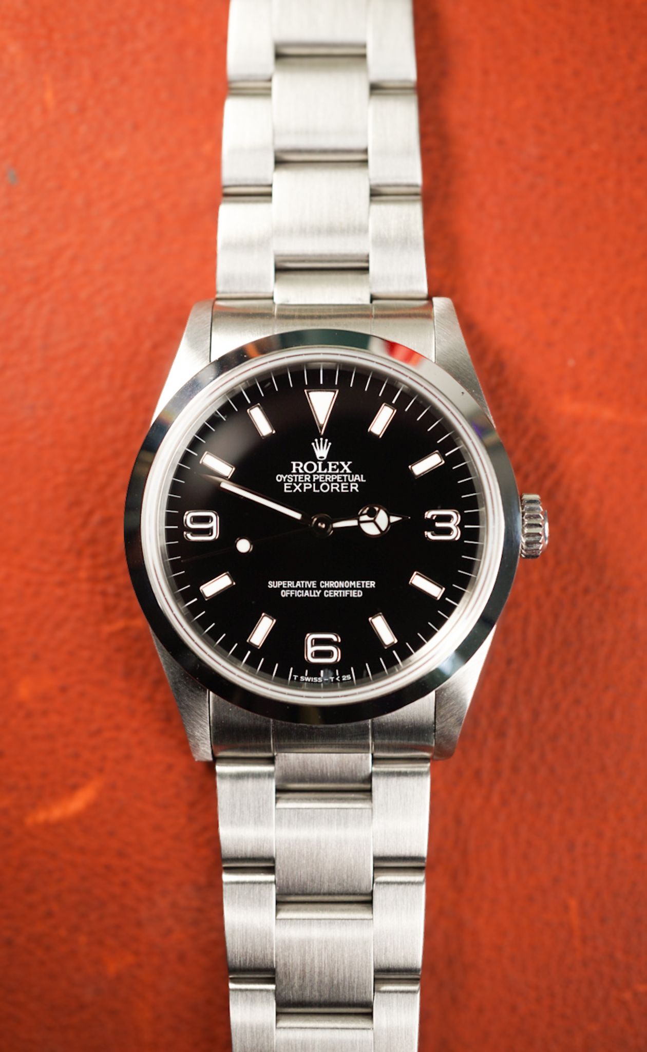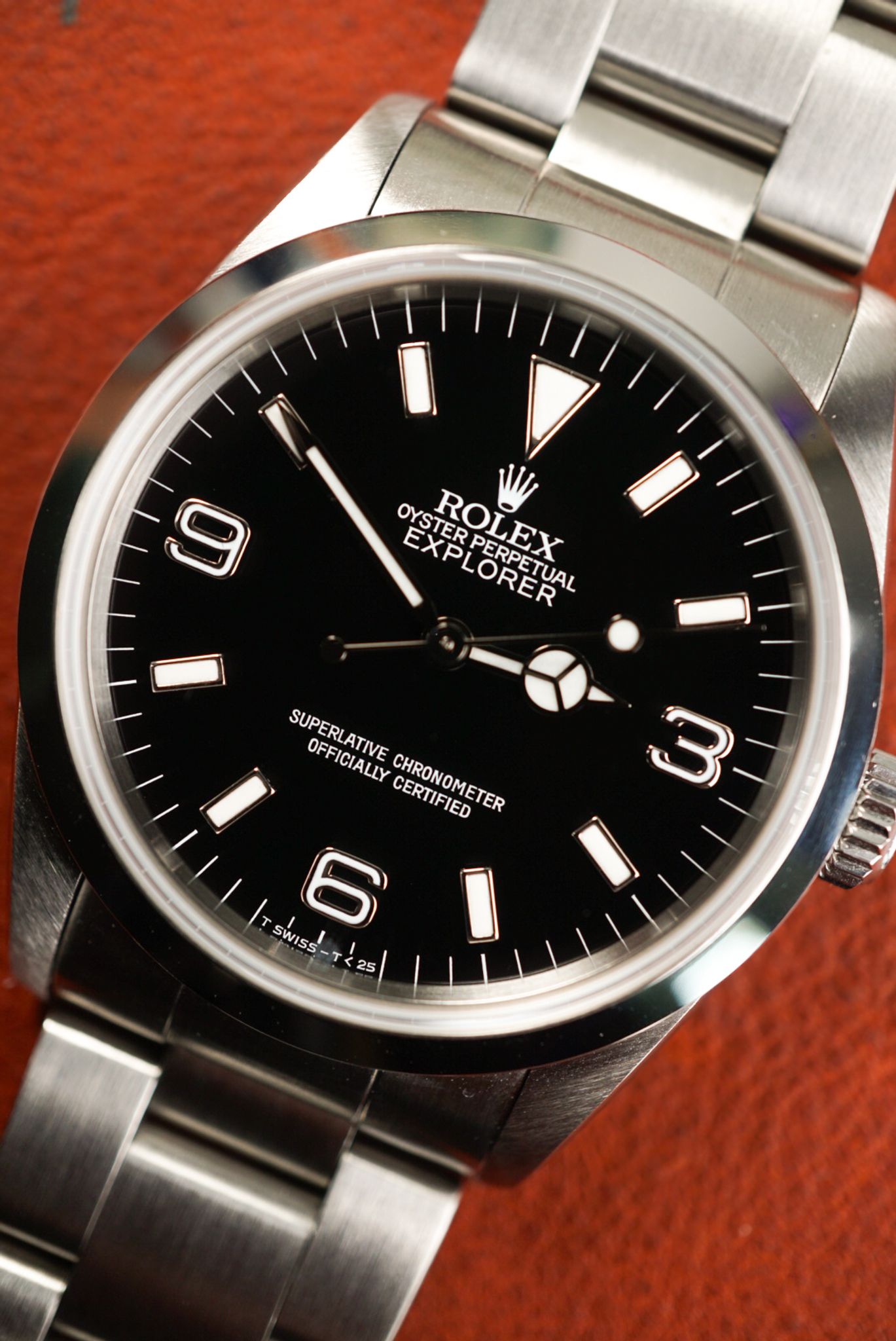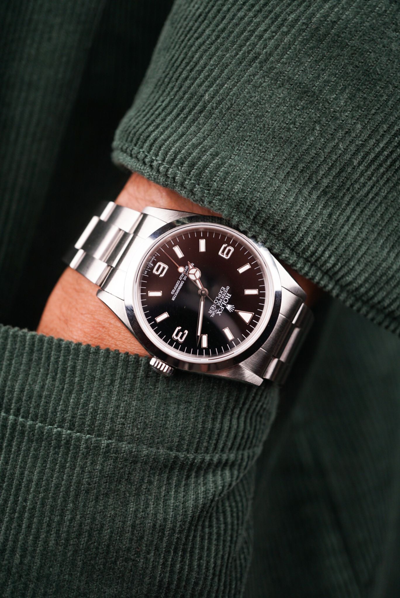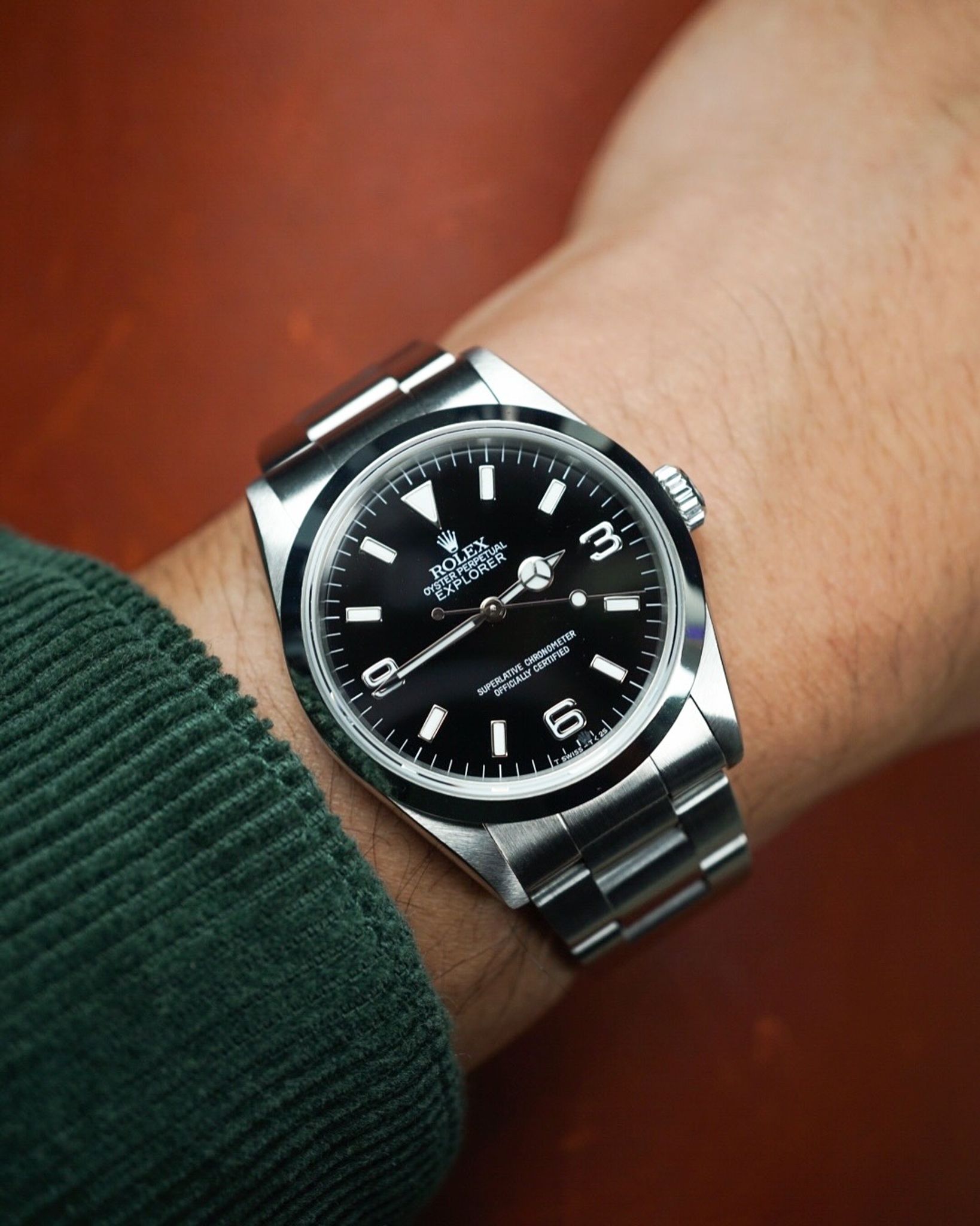 Many consider this model a top contender for a one-watch collection — and I would agree. It offers the best of both worlds: a slim, almost casual aesthetic paired with a rugged, field-ready case and dial configuration. The bold lume-filled hour markers and hands enhance its versatility, making it equally suited to a strap, NATO, or the classic Oyster bracelet. Timeless in design, this particular example fits seamlessly into the neo-vintage category with an updated sapphire crystal but retaining a tritium dial and 36mm case.