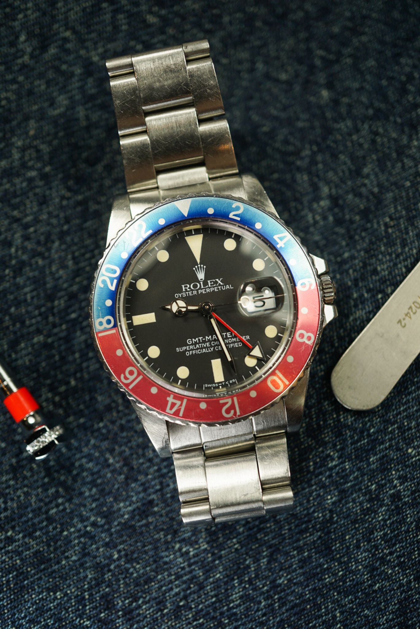 Top condition on this Rolex 16750 from 1984. Normally, I tend to lean toward four-digit Rolex references as a collector and seller, since I find the dials on those pieces more appealing. However, being a transitional GMT, this 16750 stands out — it features a gorgeous tritium matte dial paired with the upgraded movement.
