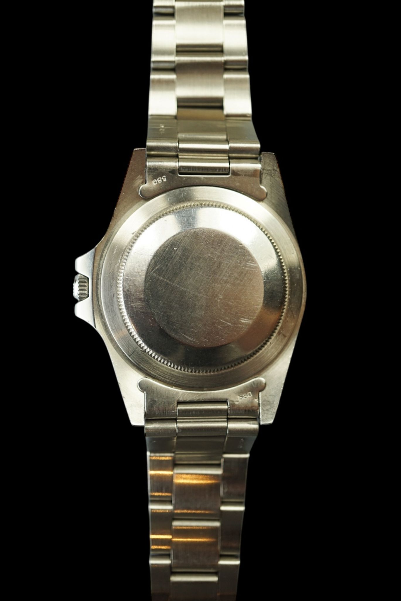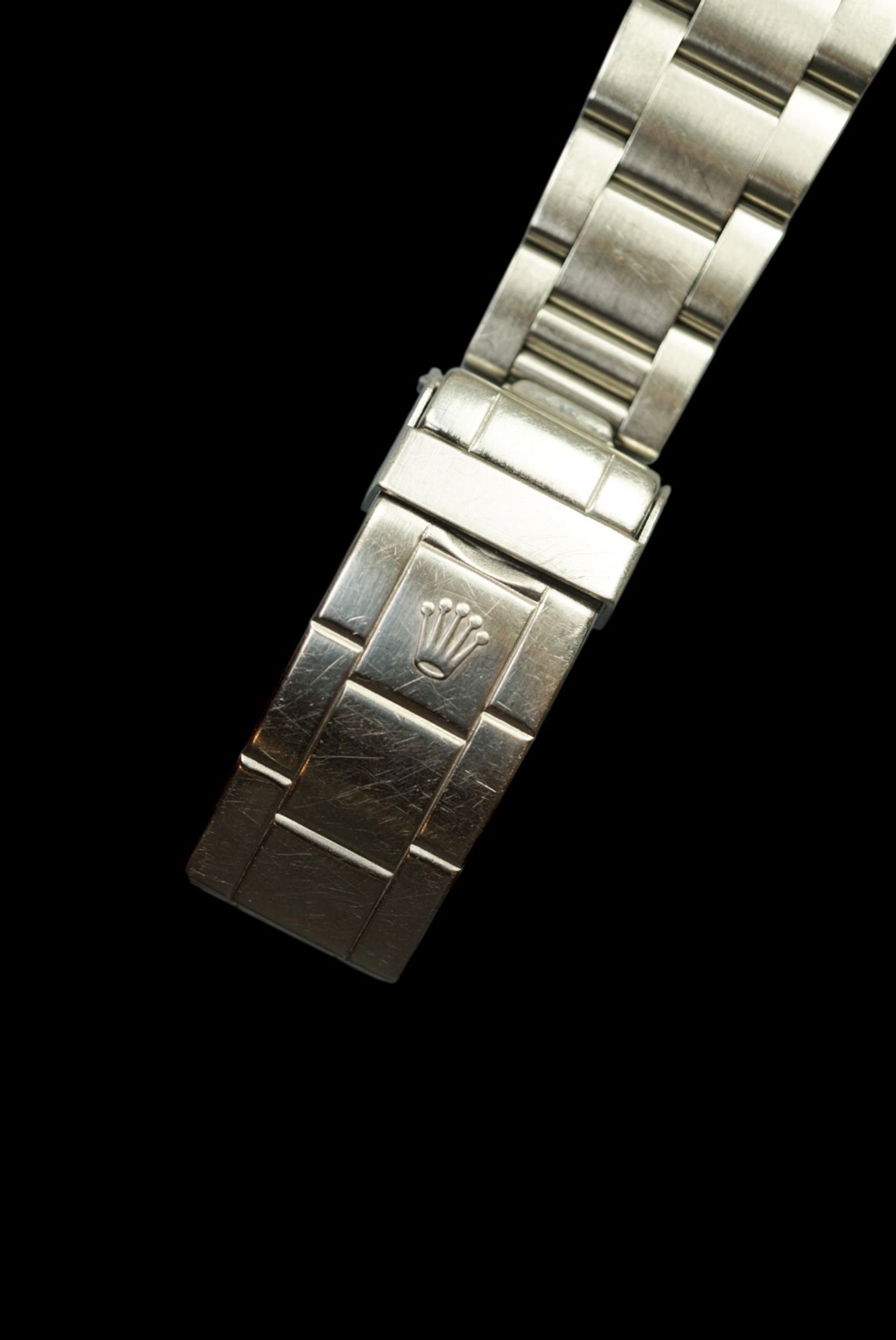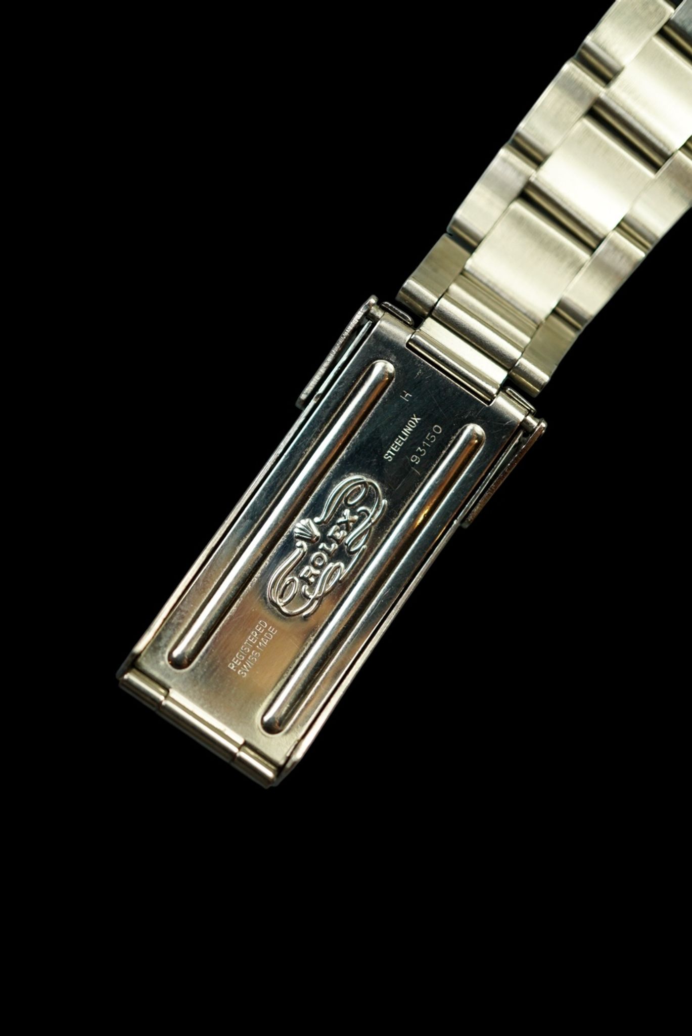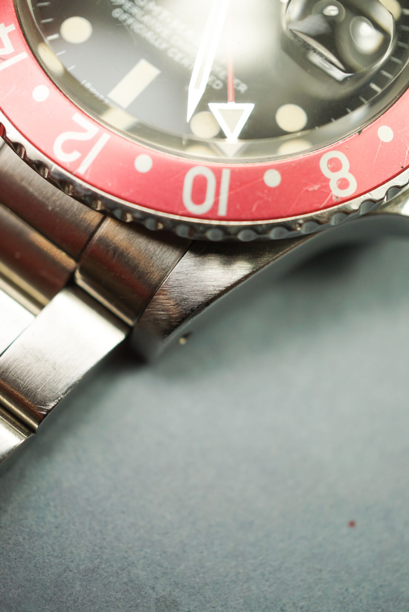 The stainless steel case shows no evidence of previous polishing and retains its thick lugs with visible chamfers. It comes fitted with an Oyster 93150 bracelet with 580 end links. This bracelet includes a diver’s extension and double-lock clasp, a feature more commonly seen on Submariners but also available as an option when purchasing the GMT-Master during the 1980s. The bracelet remains unpolished and has a matching clasp code. The red-back pepsi insert has aged gracefully and is great condition with normal wear.
