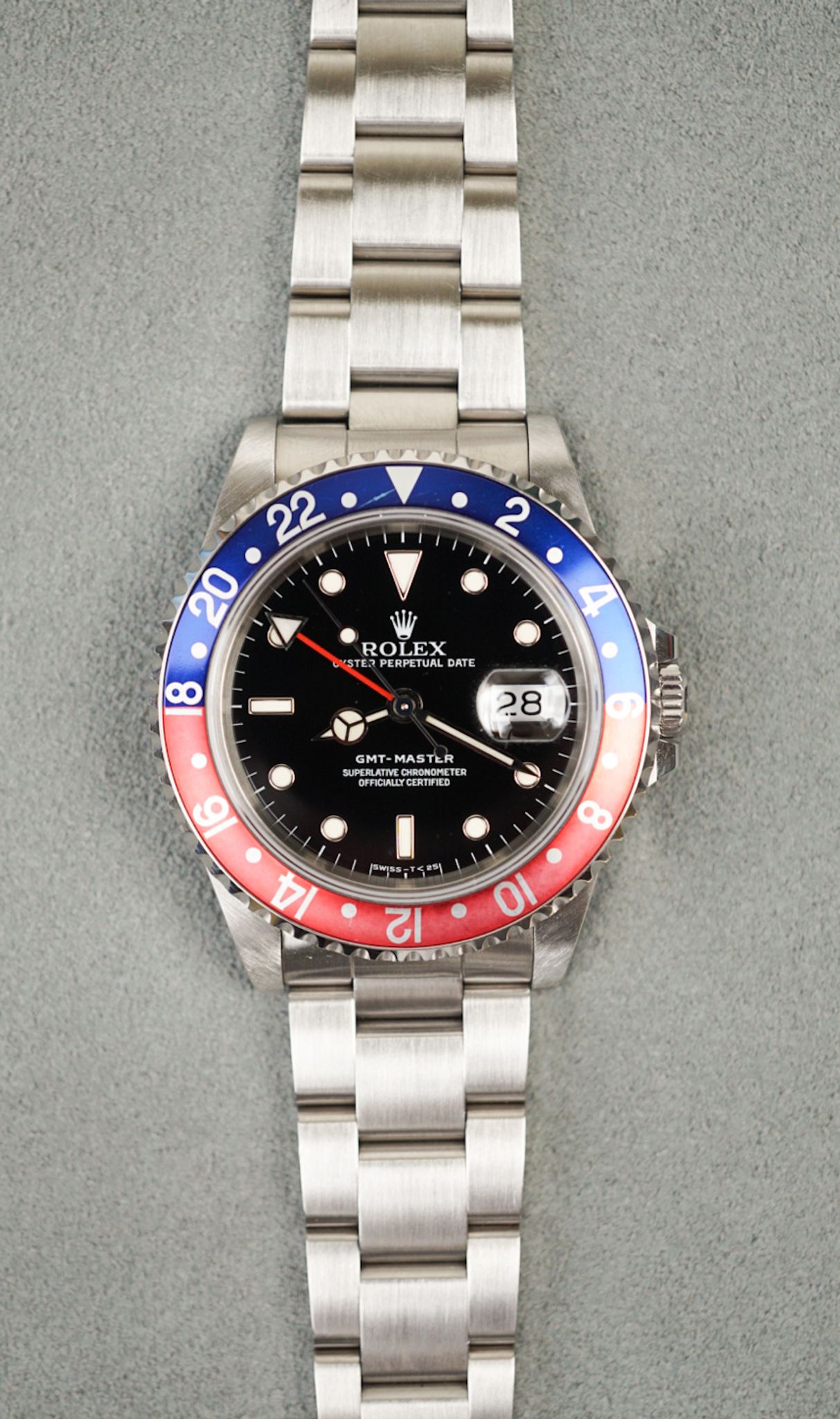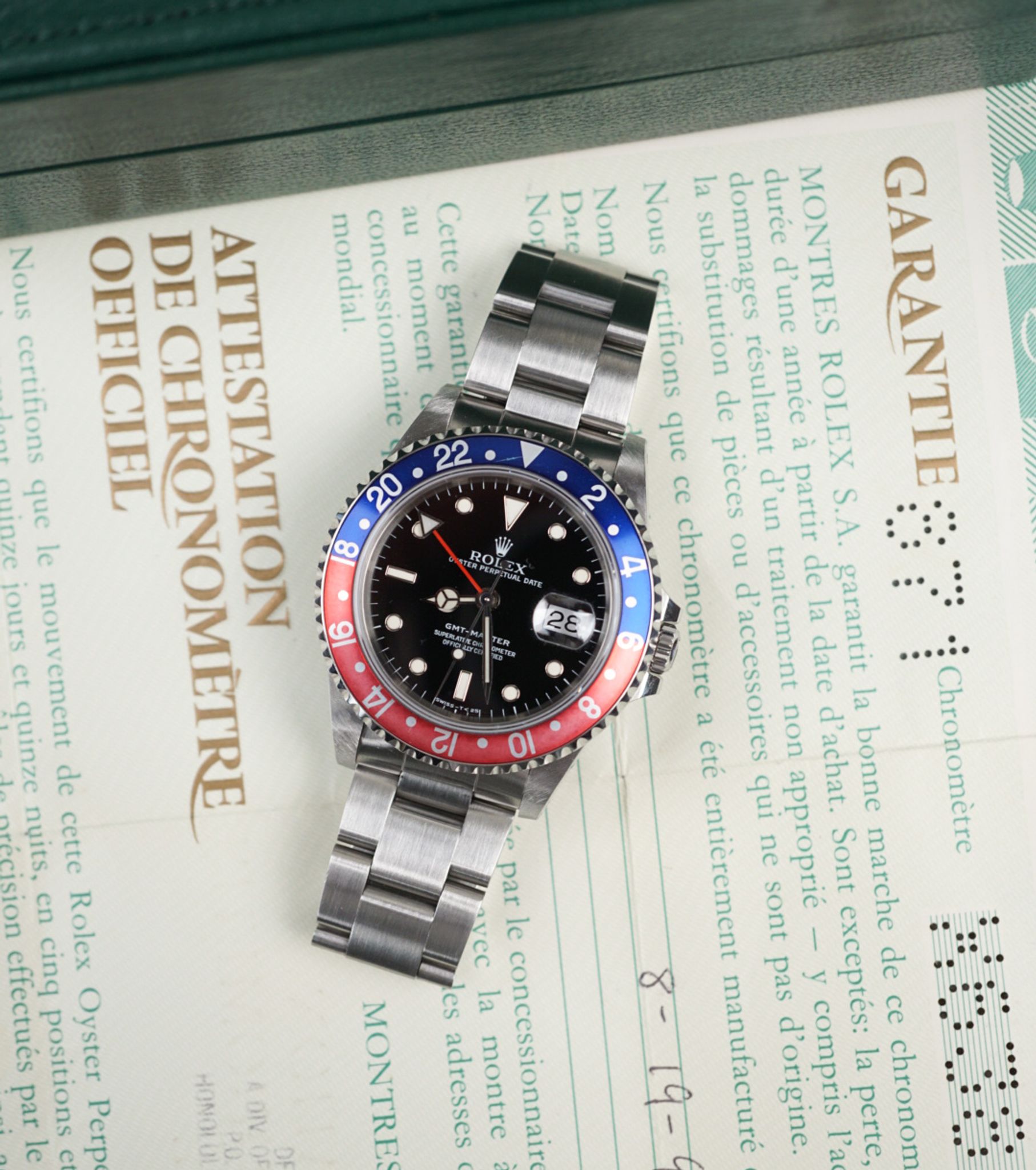 Lovely Rolex GMT-Master 16700 — this reference offers great value in today’s market. It features a vintage look while offering modern touches like an upgraded movement and sapphire crystal, yet retains the classic aluminum bezel insert and tritium hour markers and hands. This grants the opportunity to wear and enjoy it daily. This one comes with its box and punched papers from Hawaii.