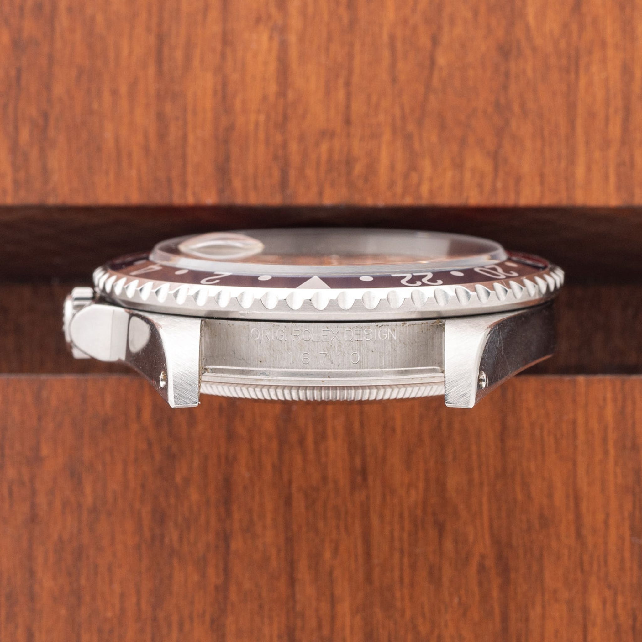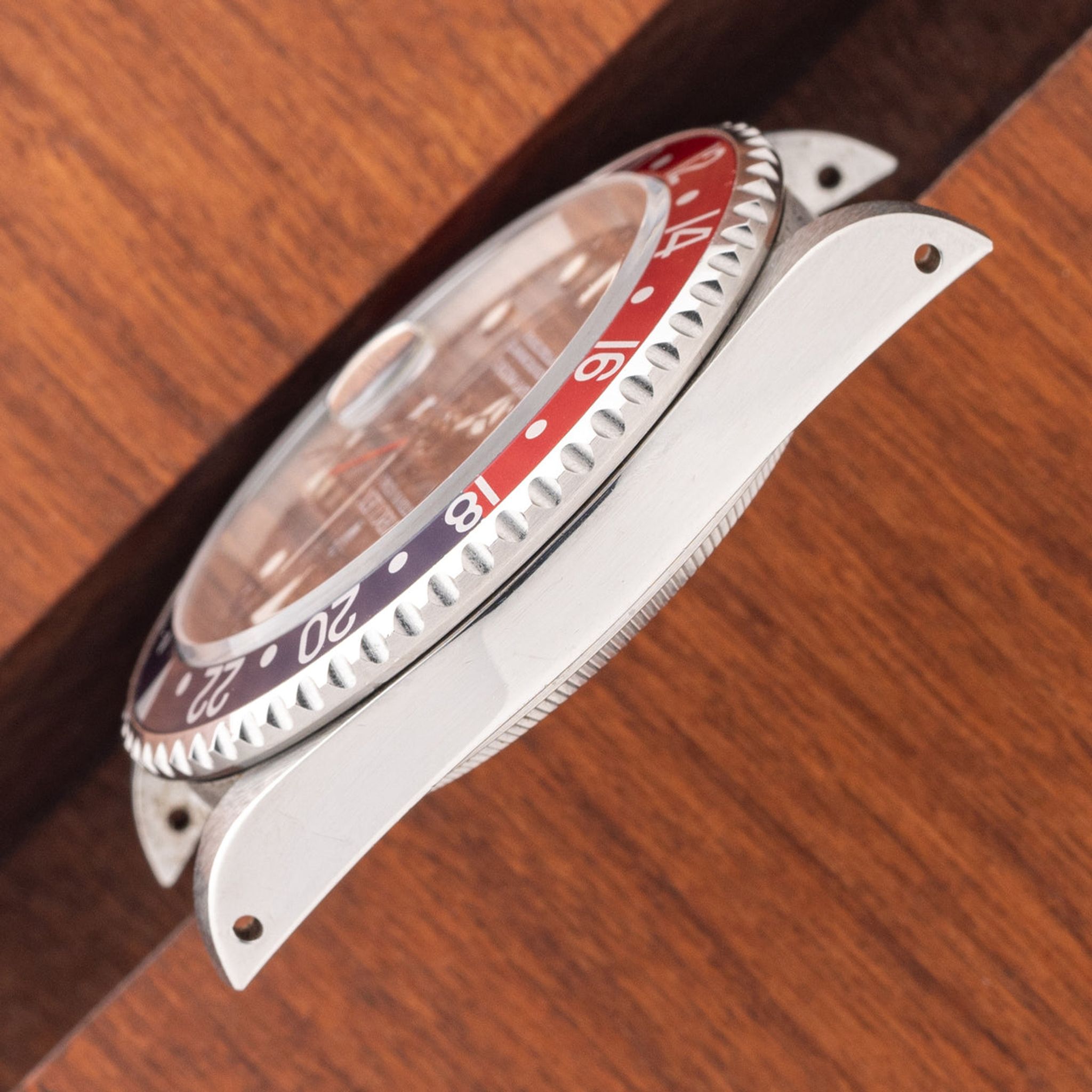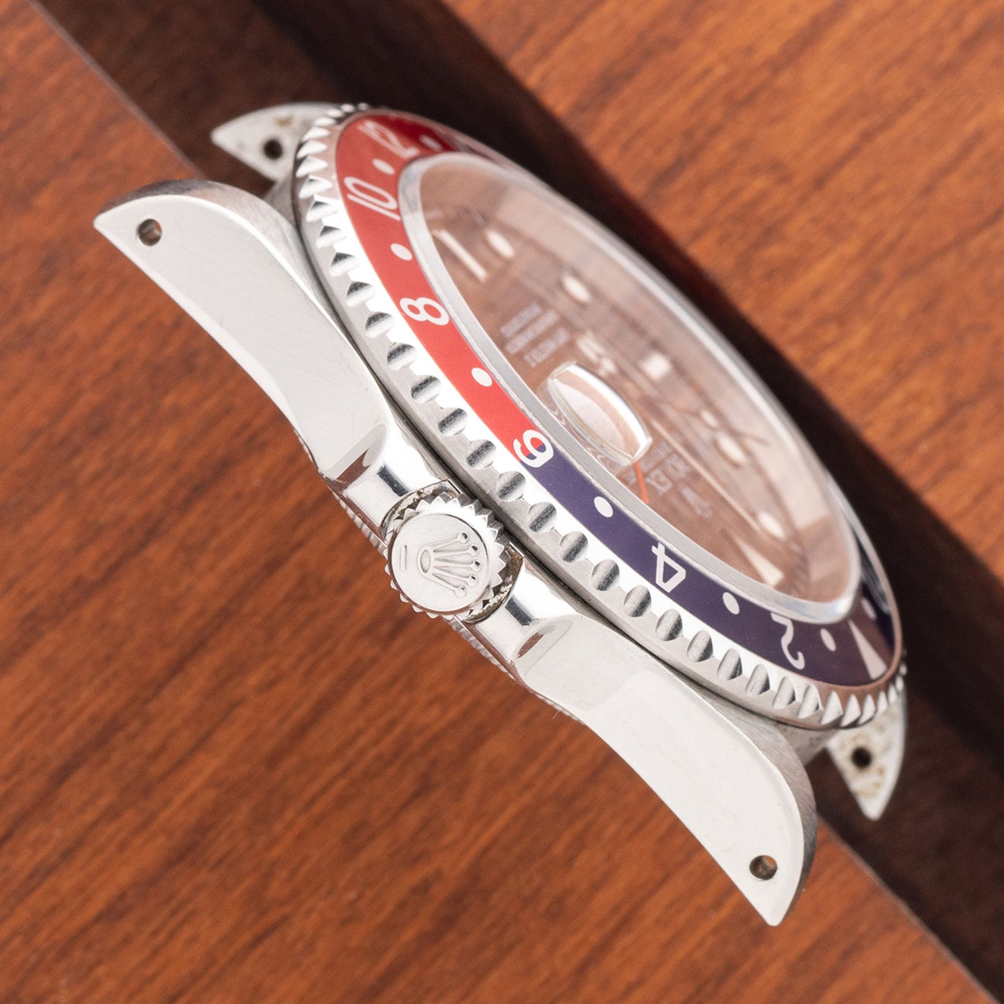 Introduced in 1954, the now cult classic Rolex GMT was initially designed as a pilots and travelers watch with its roots tied to Pan Am. The first examples featured a "Pepsi" bezel insert which provided ease of use for deciphering day/night in an alternate time-zone and remains in production to this day. Over the decades, various iterations of the GMT have been released from the "Root Beer" to the blue "Batman." Today, the GMT is as practical as it is popular with collectors, offering great beauty in it's vintage and neo-vintage examples which have taken on their own unique character over the decades.