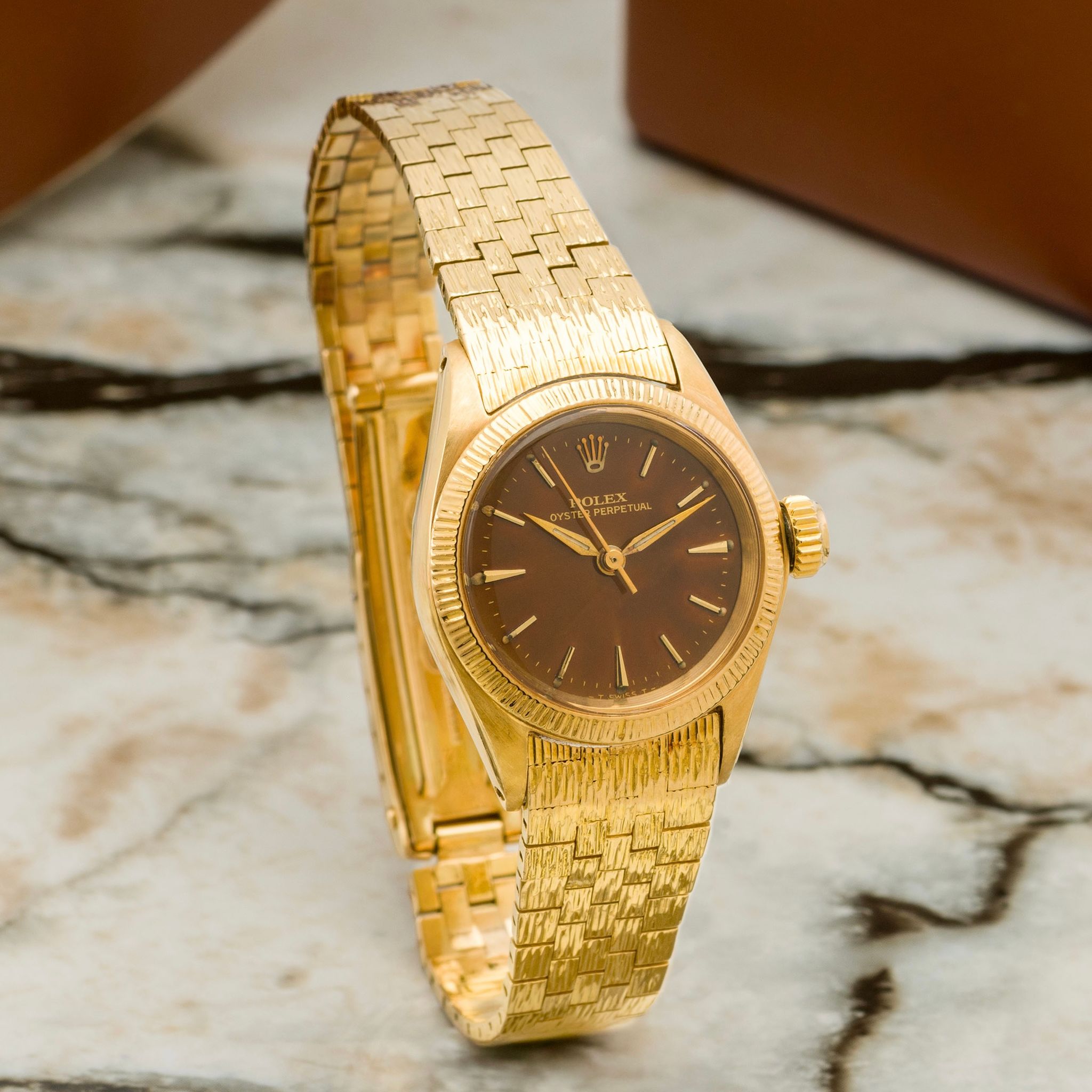 Rolex - Rolex Lady Oyster Perpetual 18k YG Brown Glossy Dial Ref. 6617, 1965