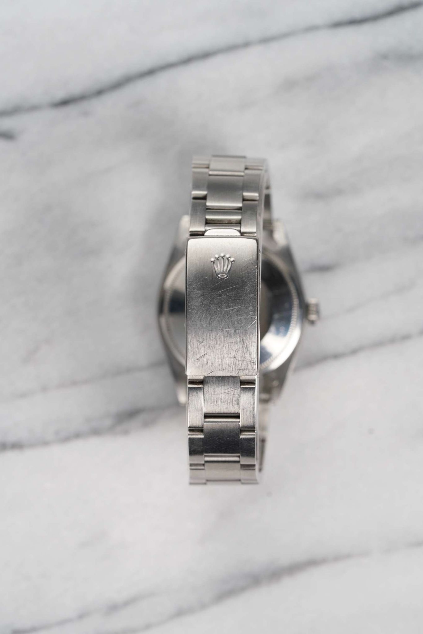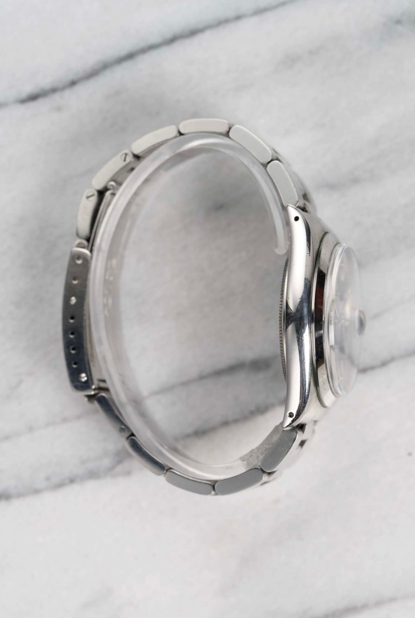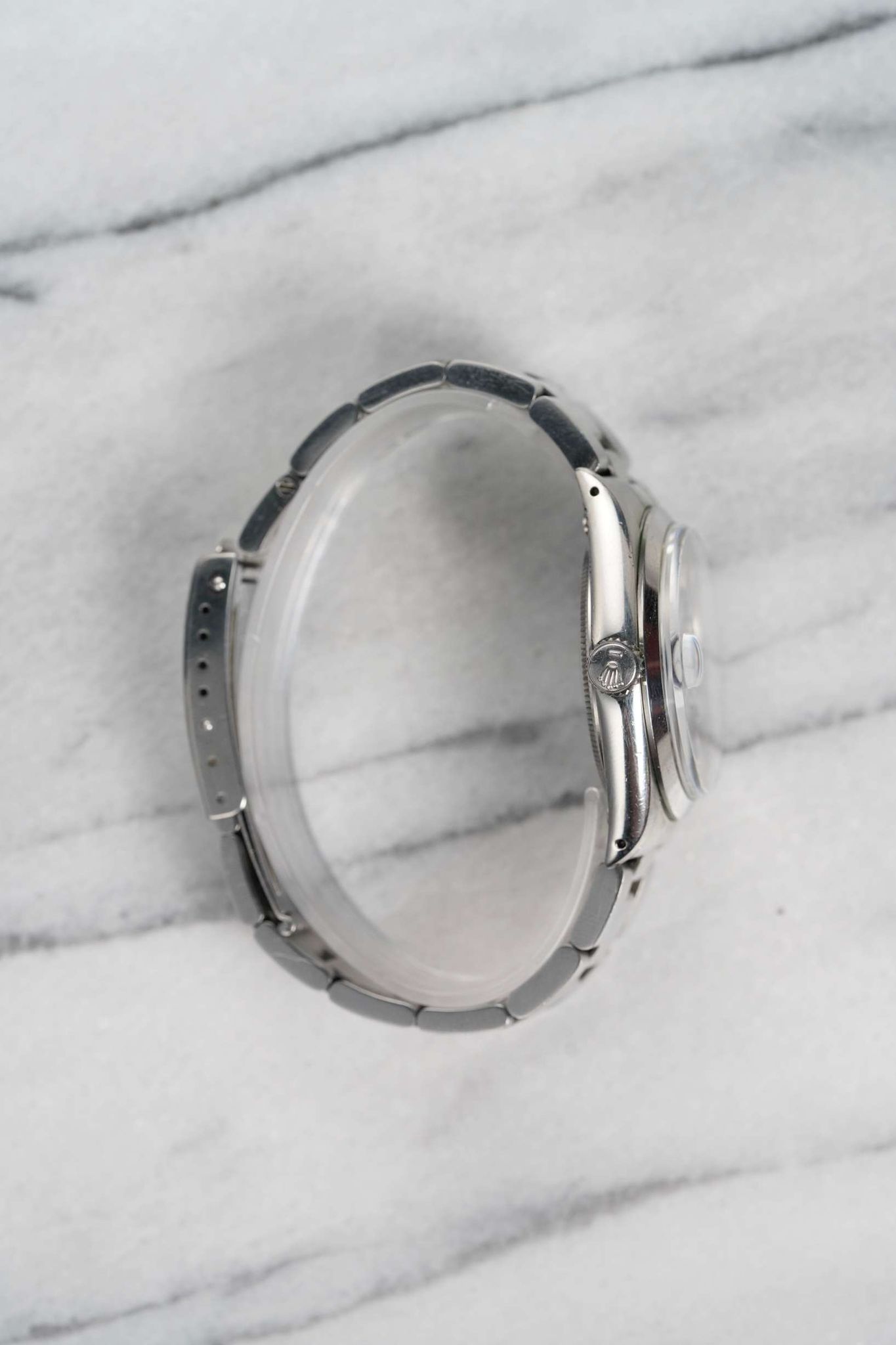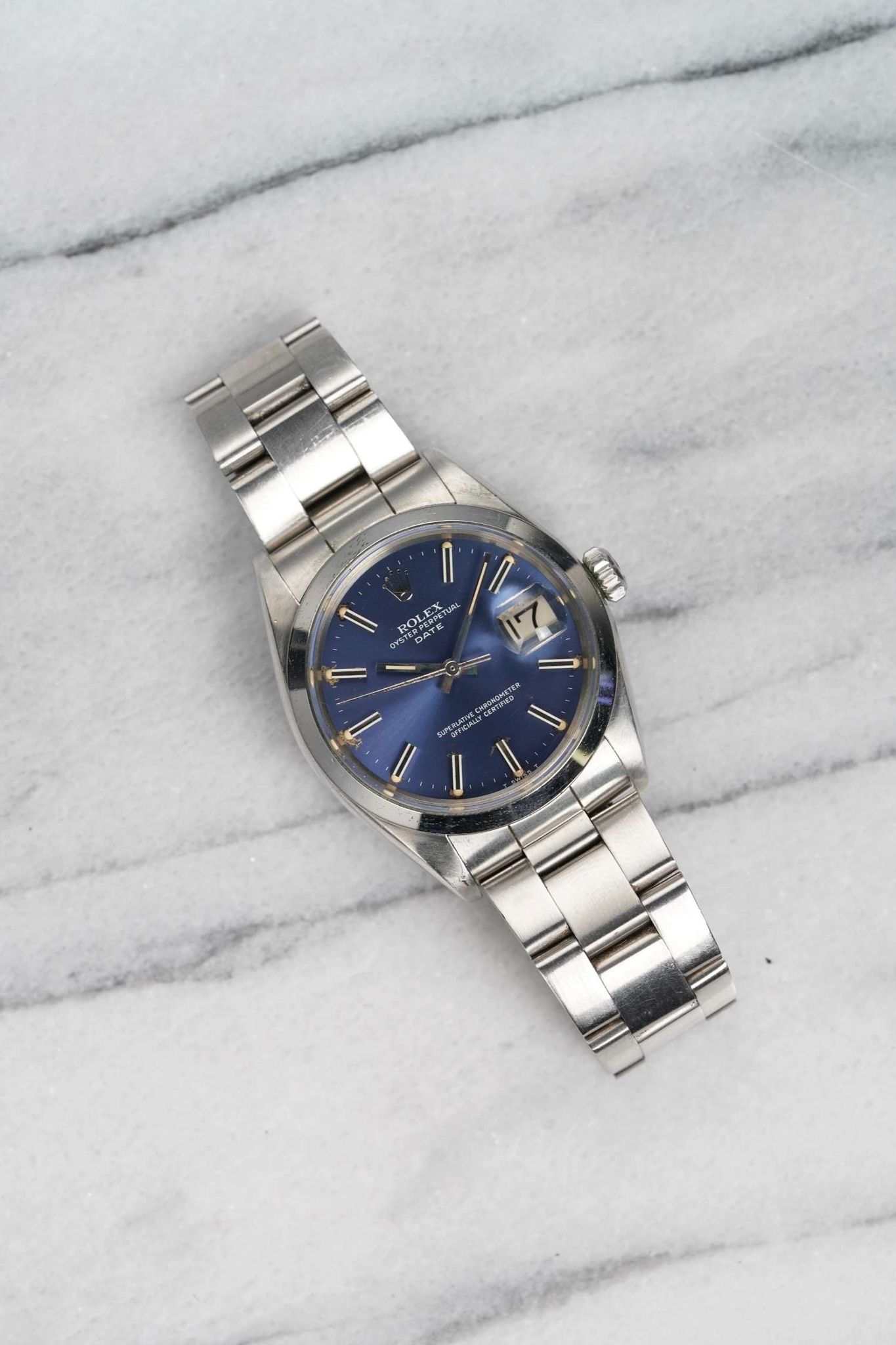Here's a vintage Rolex Oyster Perpetual reference 1500 automatic with a blue dial from the 1970s. 34mm stainless steel case with smooth bezel and drilled lugs. Fitted on its heavy oyster bracelet, sized to fit up to a 7.25 inch wrist. Time and non-quickset date function at 3 o’clock. Original dial, case, movement, and crown. Fully functional and keeping time.