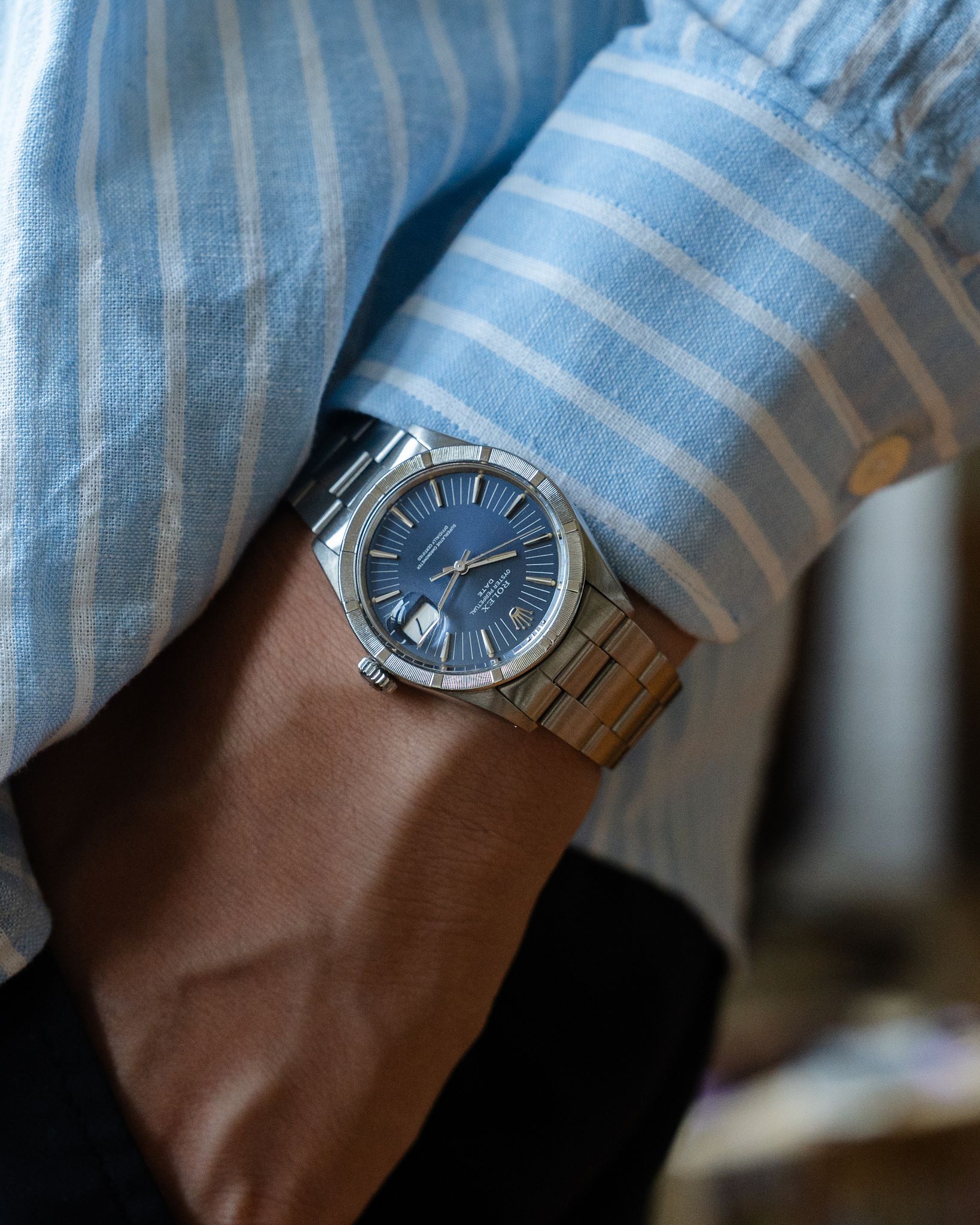 Rolex - Rolex Oyster Perpetual Date ref 1501 blue radial dial, 1971