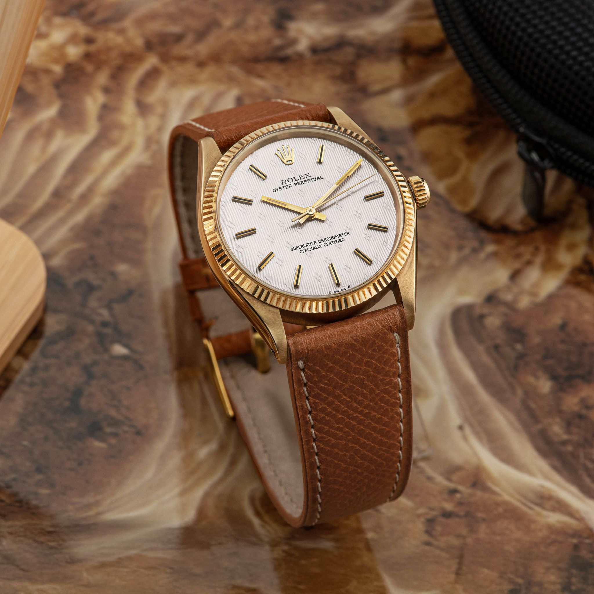 This Oyster Perpetual is a testament to the craftsmanship behind these Guilloché dials in this era. No stone was left unturned by Rolex to create the absolute extraordinary for their clients. We strongly believe that this Oyster Perpetual was not offered on a shelf in a Rolex boutique but a custom order for a discerning client who probably decided to safe keep it in the condition he had bought it in. Having this said we would love to know what kind of person had this had ordered this marvelous watch. We will probably never know but what we do know is that he had an exquisite taste for the finer things in life, details tell stories.