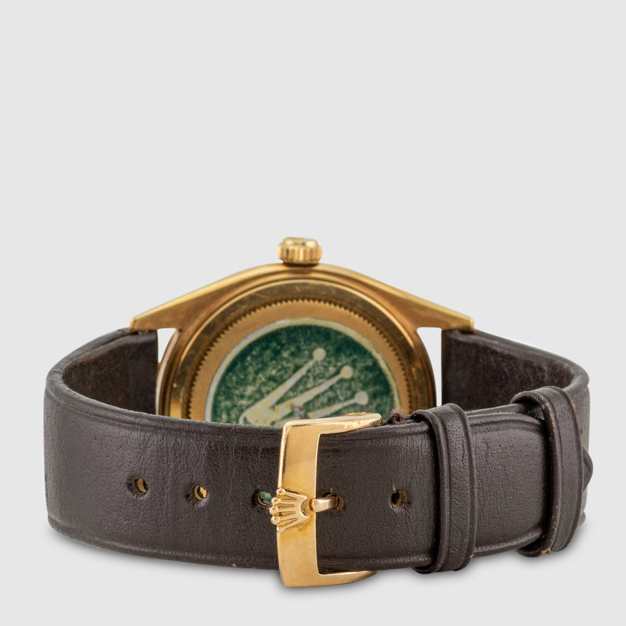 Bracelet/Strap: Original Rolex dark brown calf strap that seems to have nbot been used much, original Rolex period correct 14K Gold pin buckle.